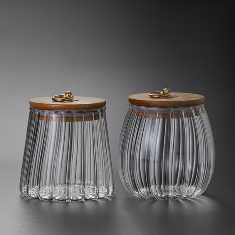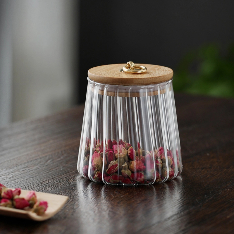 日式家用密封玻璃茶叶罐 零售储存收纳盒 花茶糖罐 竹盖玻璃瓶