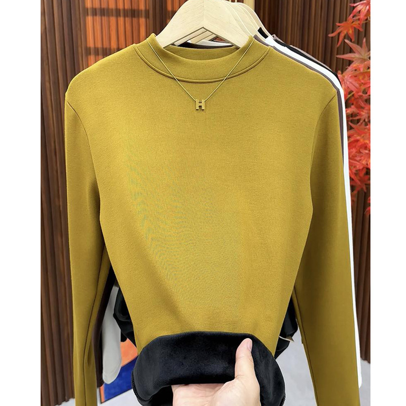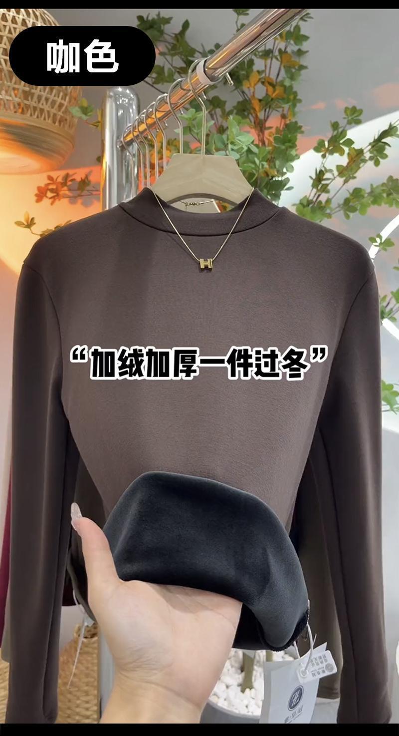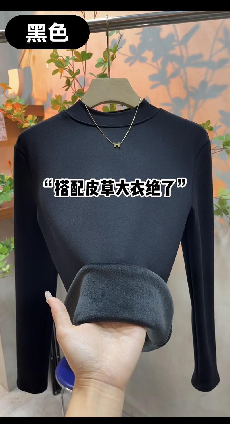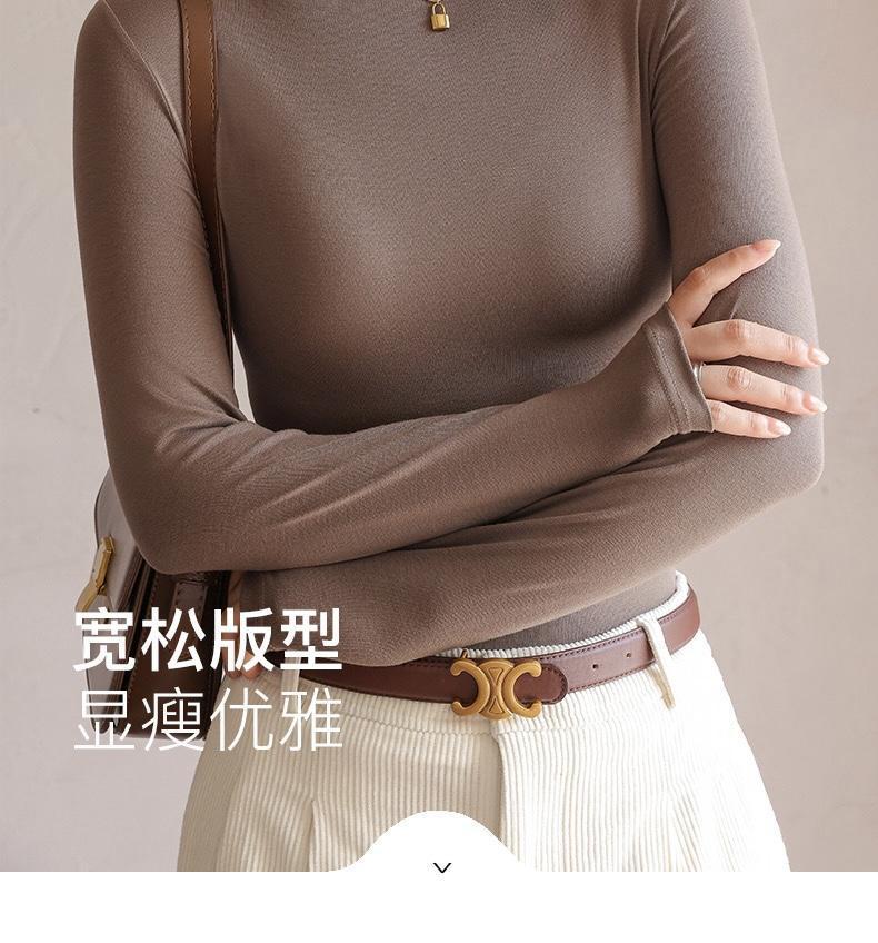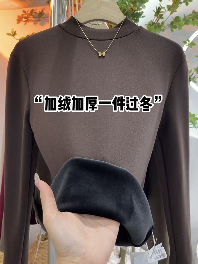 银狐绒加绒加厚莫代尔半高领打底衫女士内搭长袖紧身秋冬中领上衣