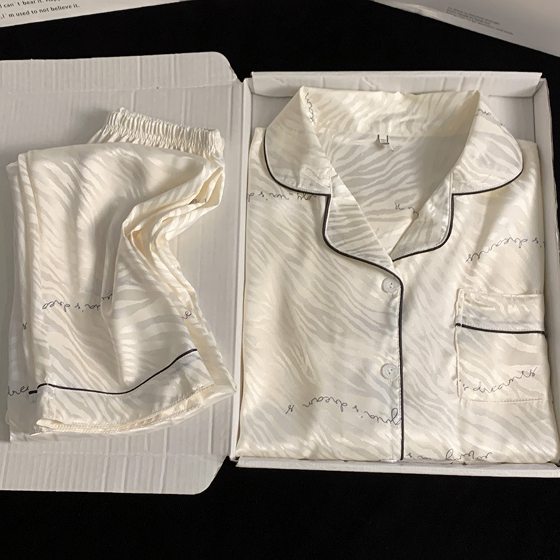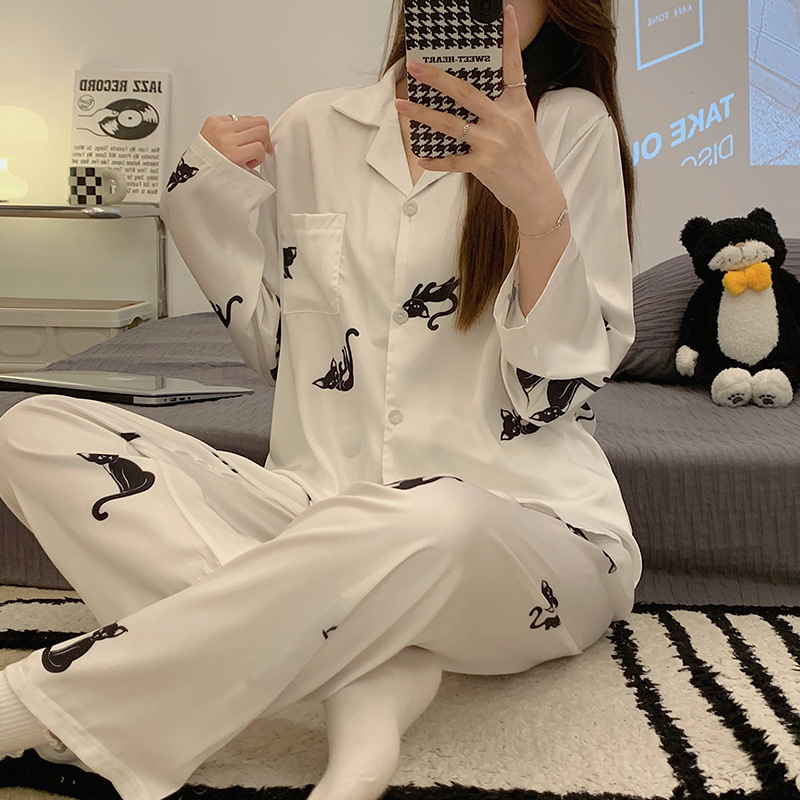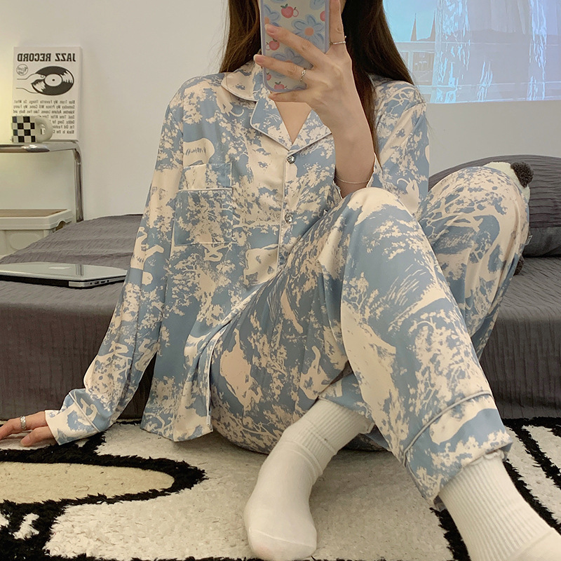 睡衣女款春秋冰丝长袖长裤开衫翻领网红爆款可外穿家居服厂家批发