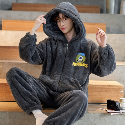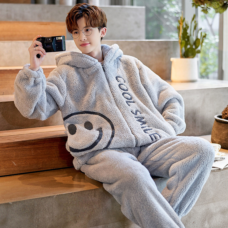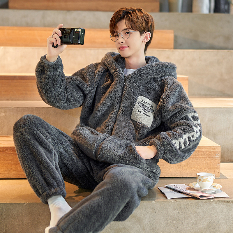 珊瑚绒睡衣男孩秋冬季加厚加绒青少年中大童初中生大码法兰绒套装