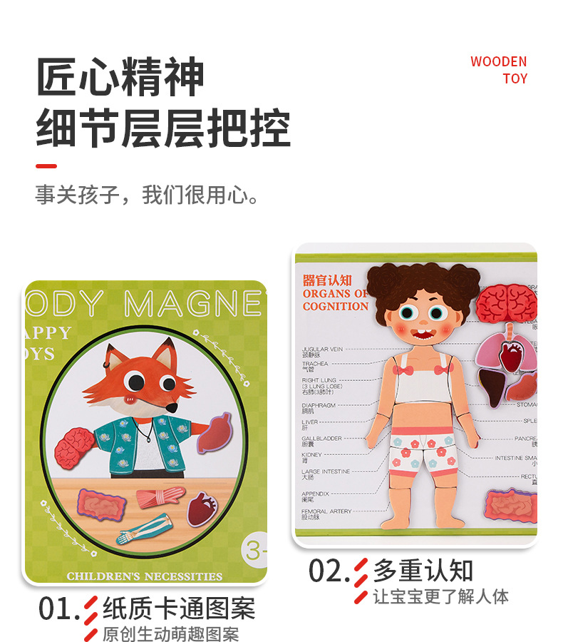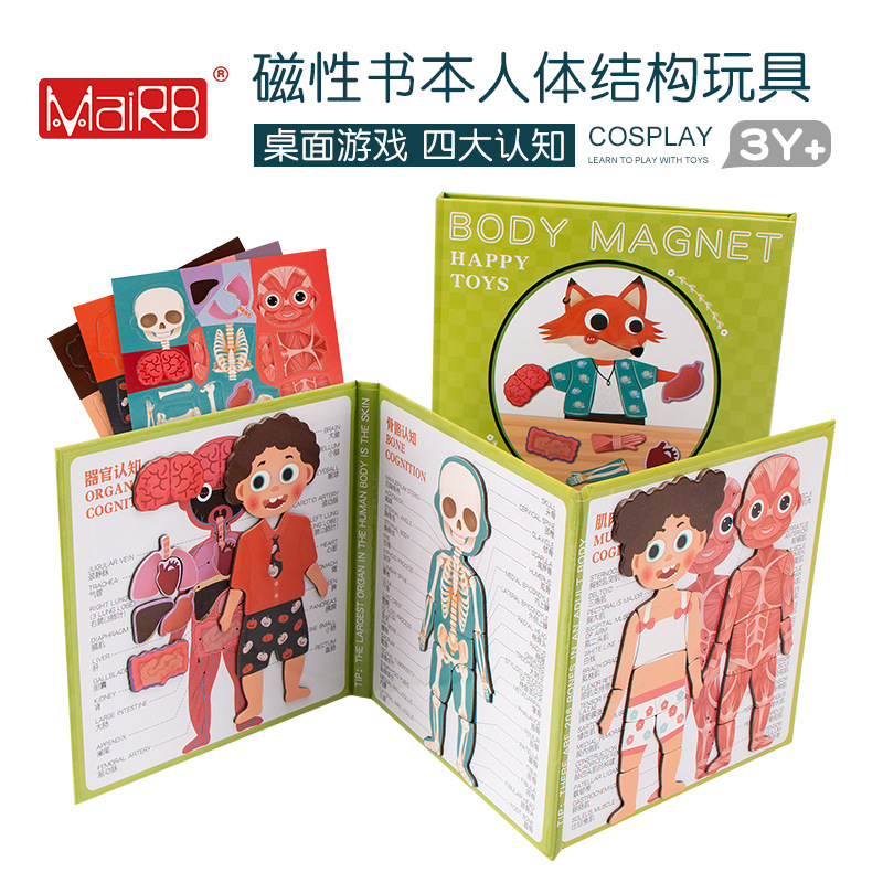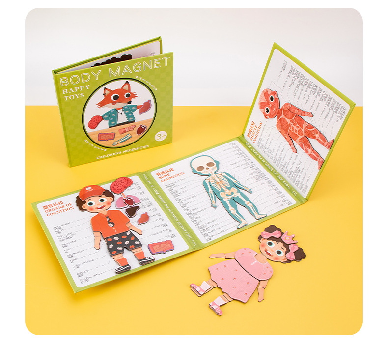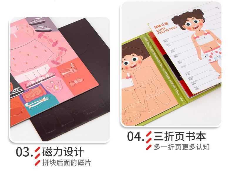 优润趣味书本蒙氏教育玩具书儿童磁性玩具人偶可拆拼组装厂家批发