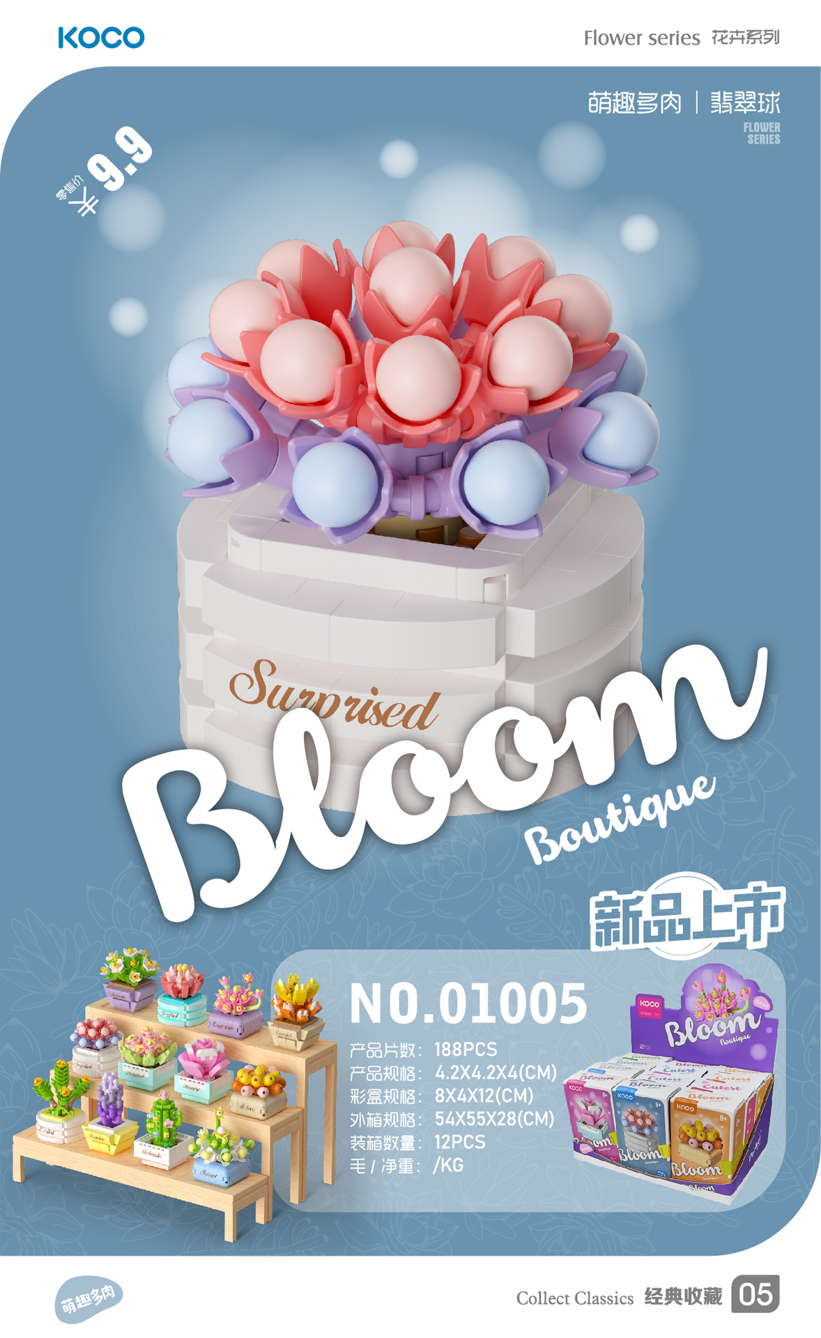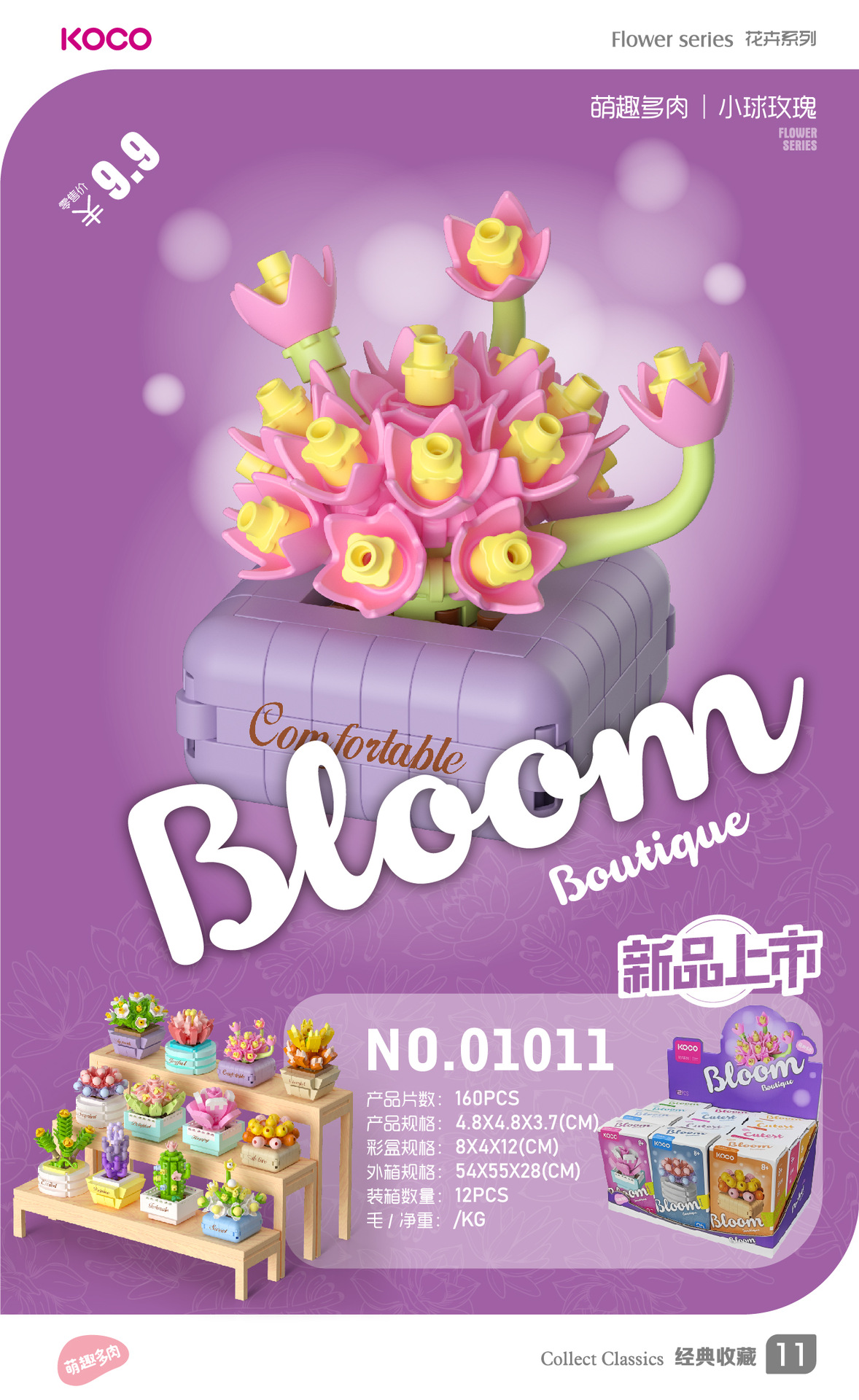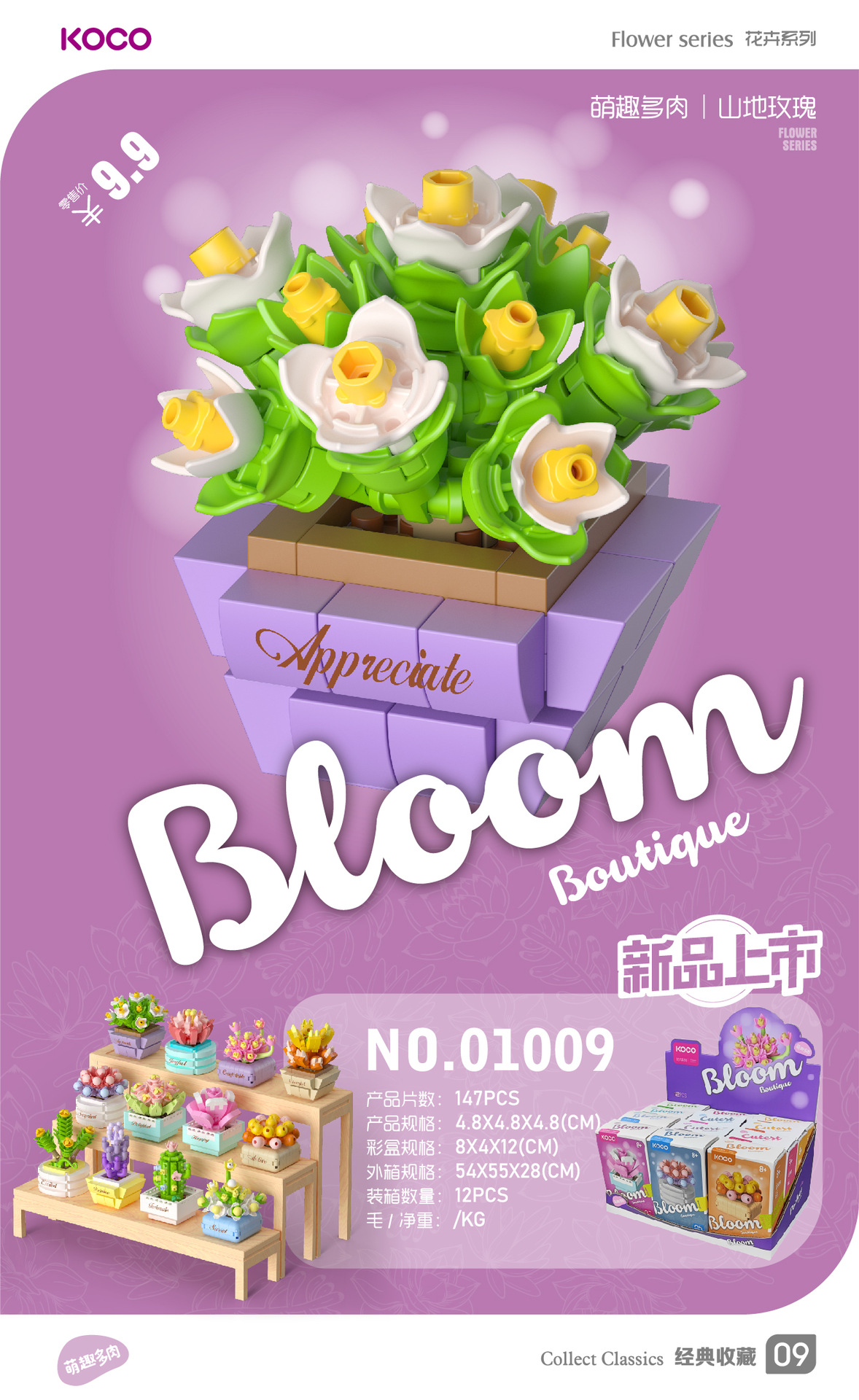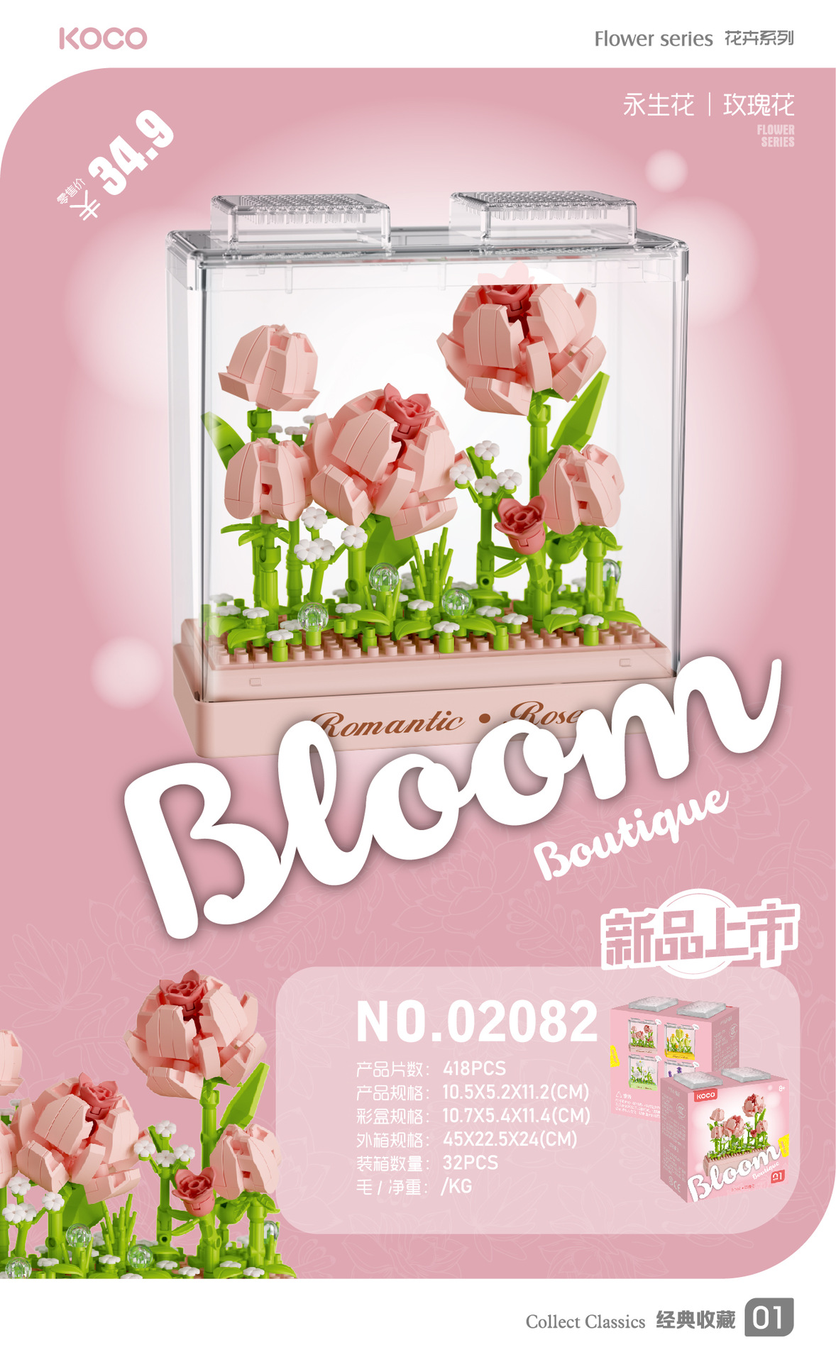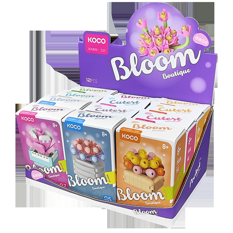 儿童益智小颗粒拼插积木花仿真玫瑰花玉兰花兼容某高积木模型玩具
