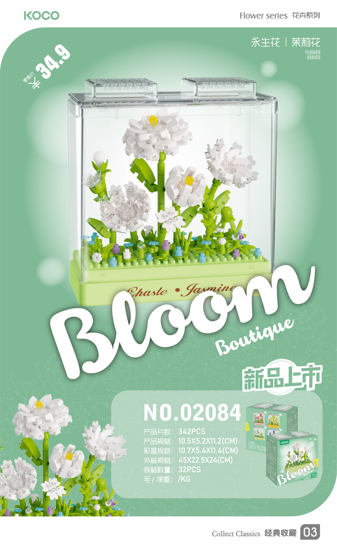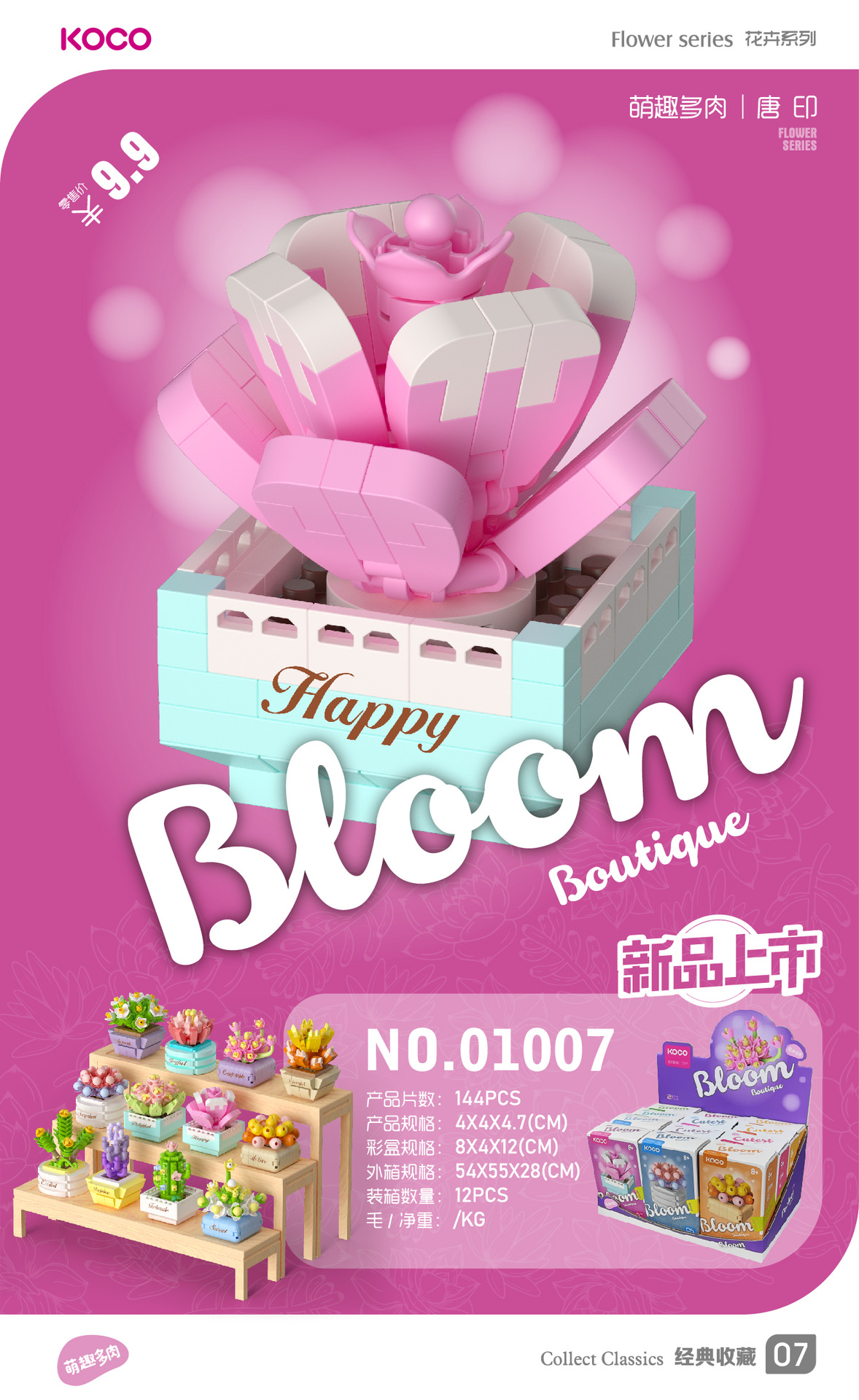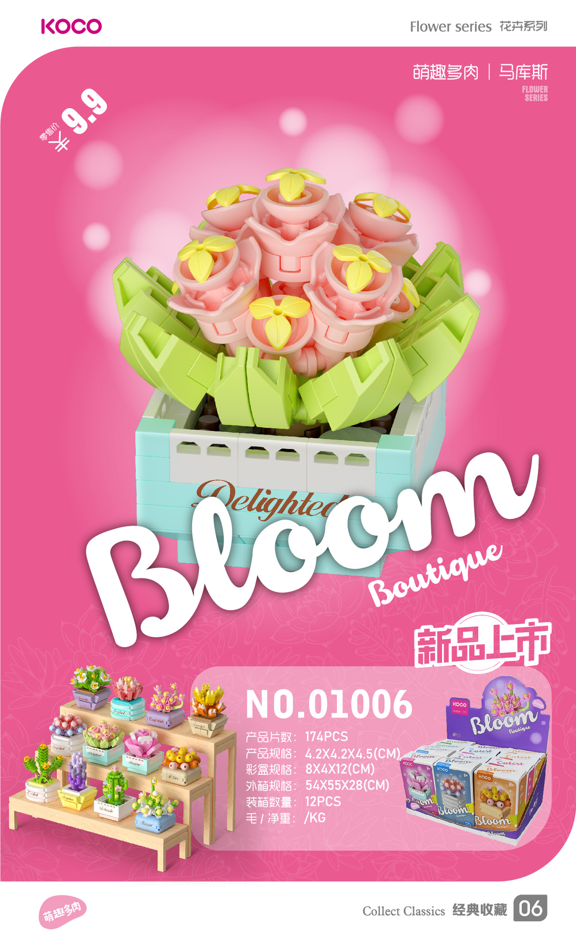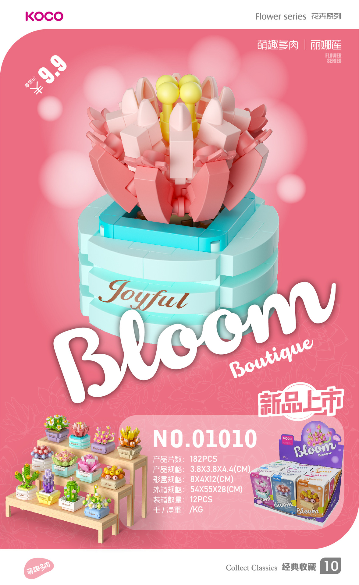儿童益智小颗粒拼插积木花仿真玫瑰花玉兰花兼容某高积木模型玩具