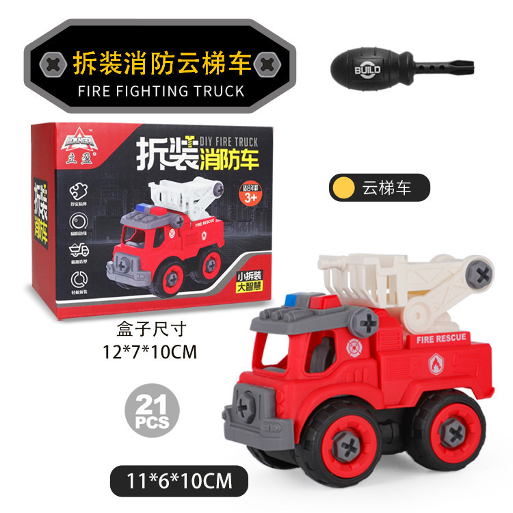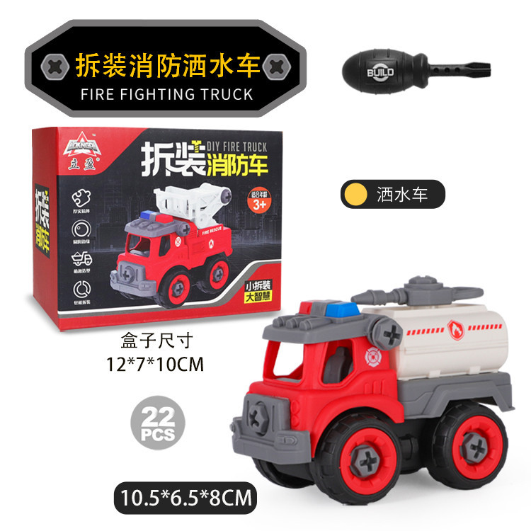 儿童DIY可拆卸组装工程车环卫车 男孩消防车挖掘机螺丝刀拆装玩具