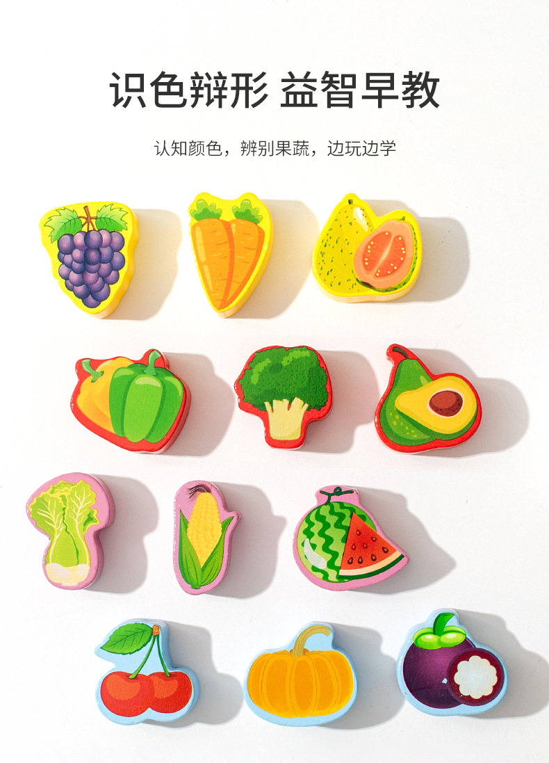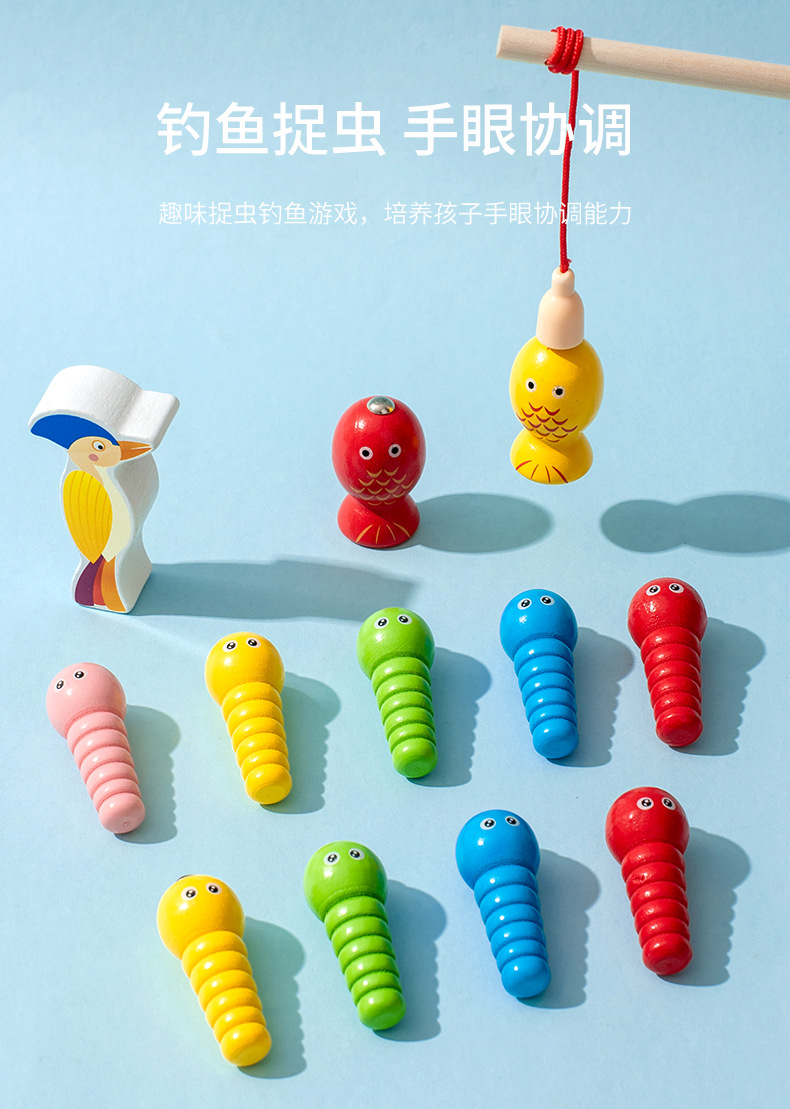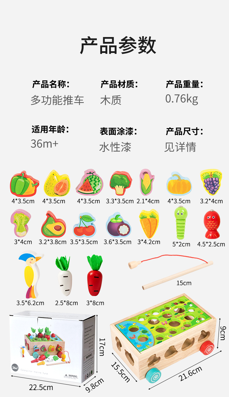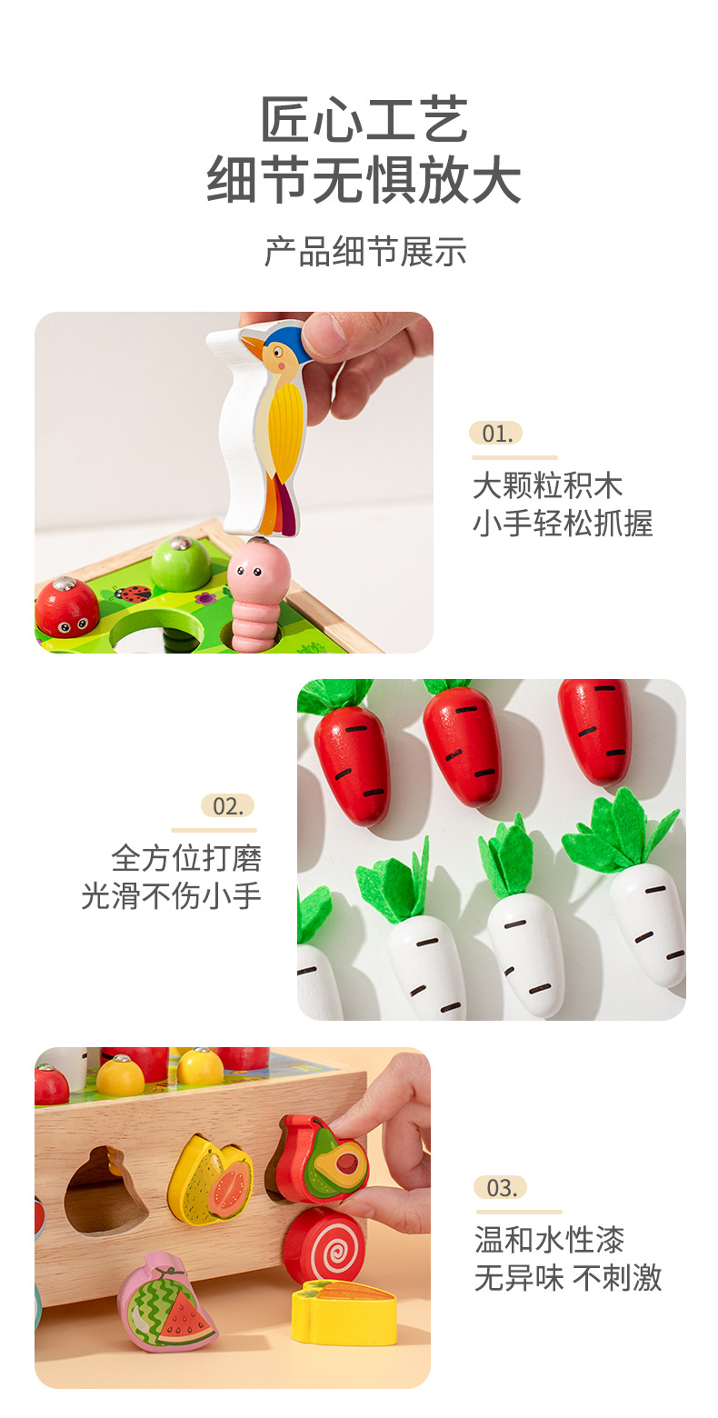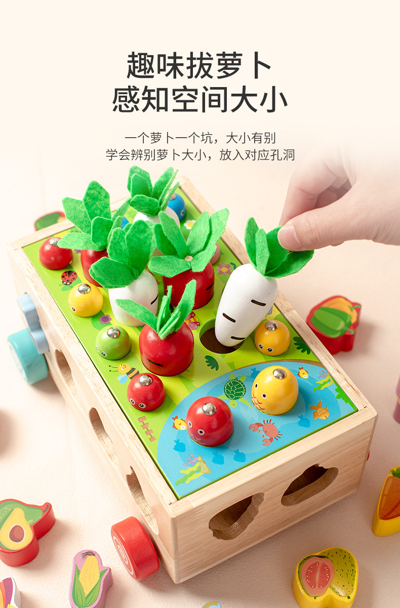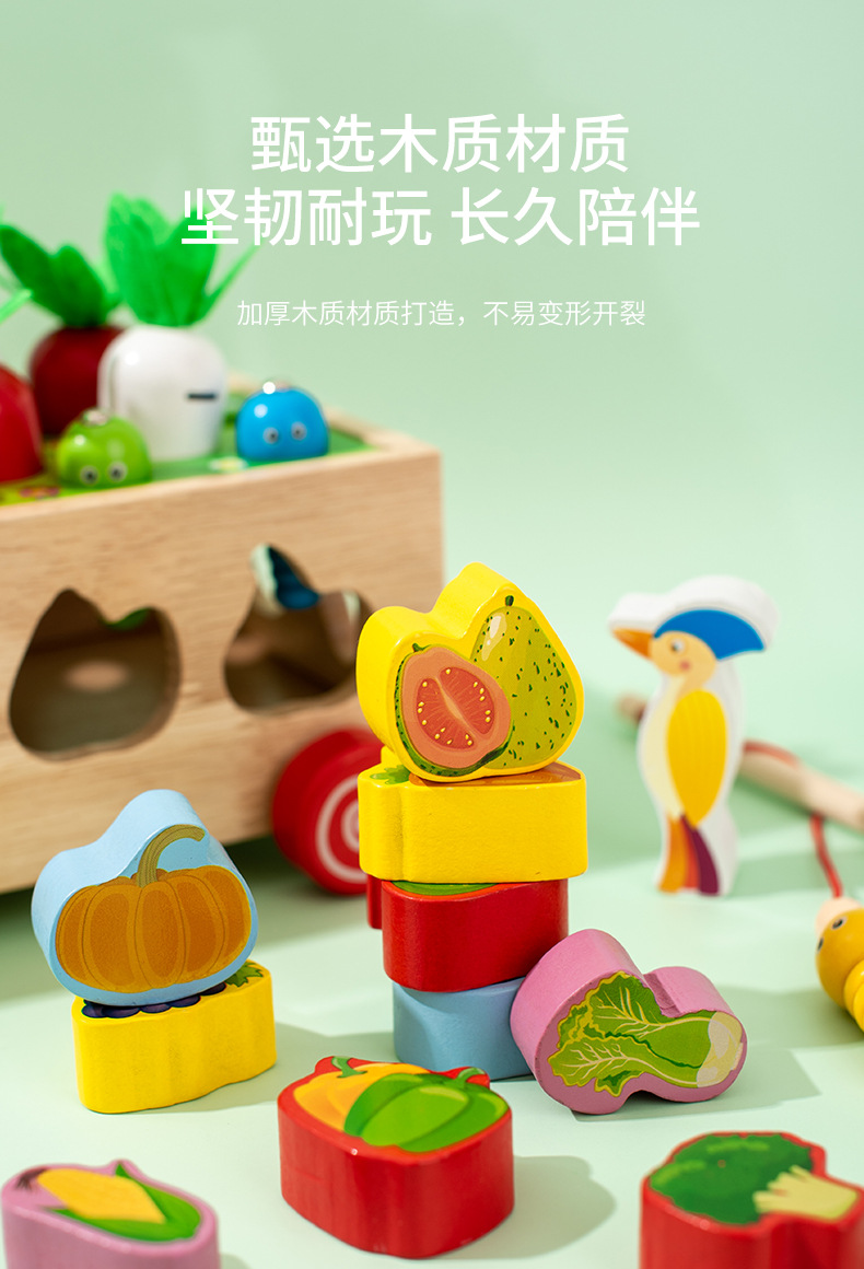 跨境木制儿童智力车形状积木配对趣味钓鱼拔萝卜拆装早教益智玩具