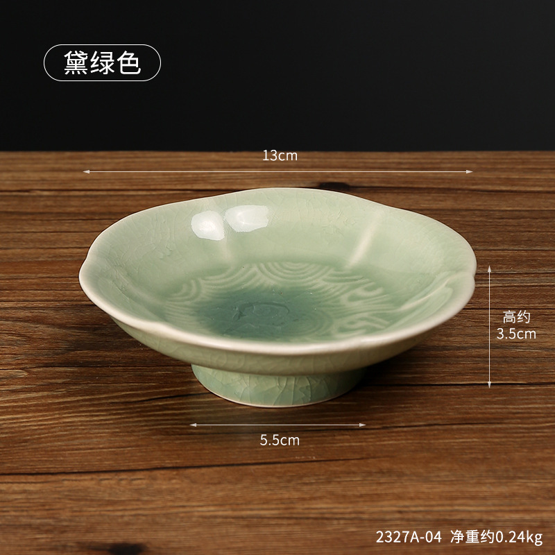 中式六瓣茶点盘陶瓷冰片纹水果糕点坚果盘高脚托盘茶馆招待陶瓷盘