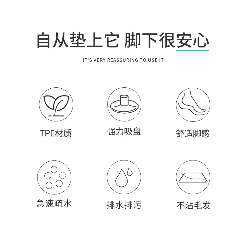 新款简约TPE浴缸浴室防滑垫 卫生间洗澡淋浴房吸盘地垫厕所脚踏垫