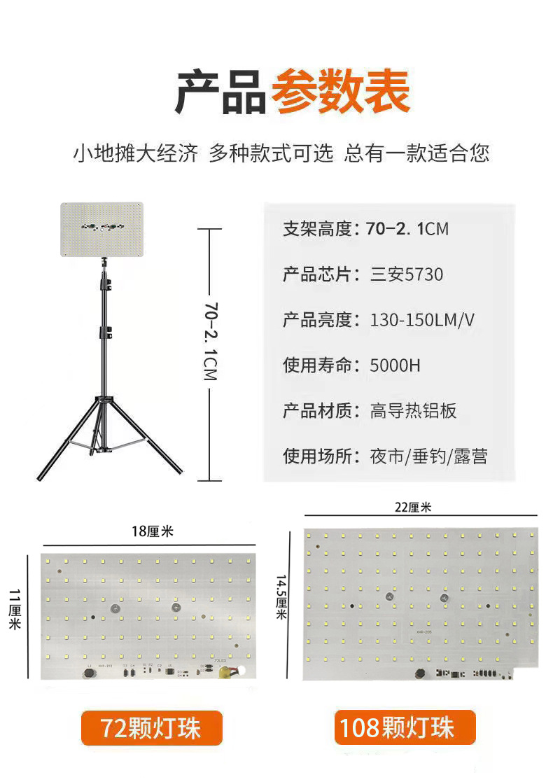 12V摆摊夜市灯接电瓶电瓶车三轮车灯户外防水超亮LED地摊灯48V60V