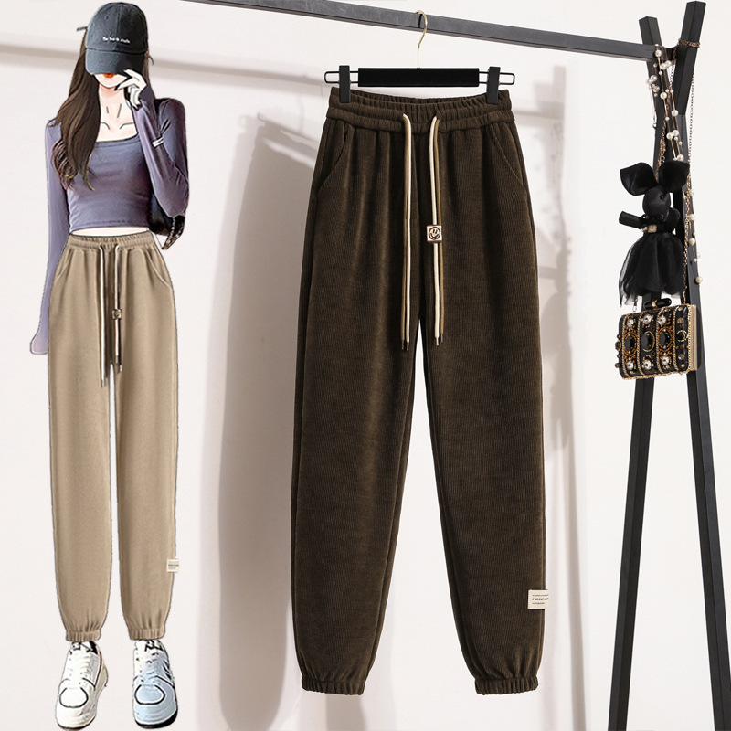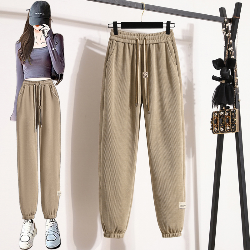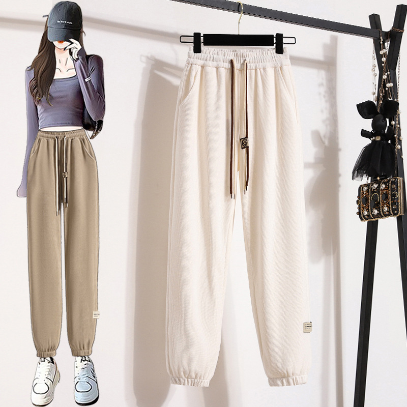 运动裤女春秋2023新款宽松束脚裤夏季薄款高腰显瘦小个子休闲卫裤