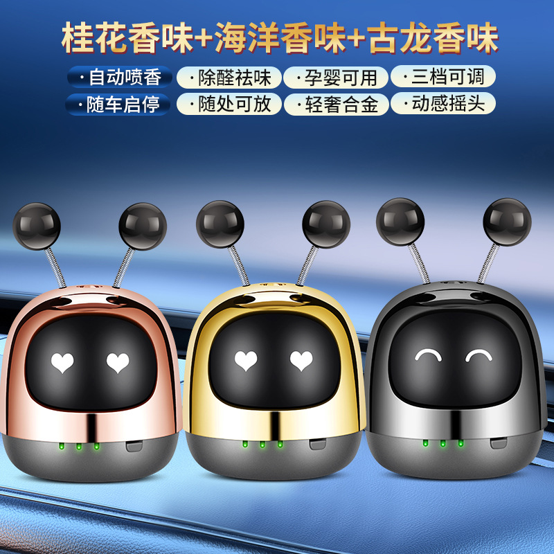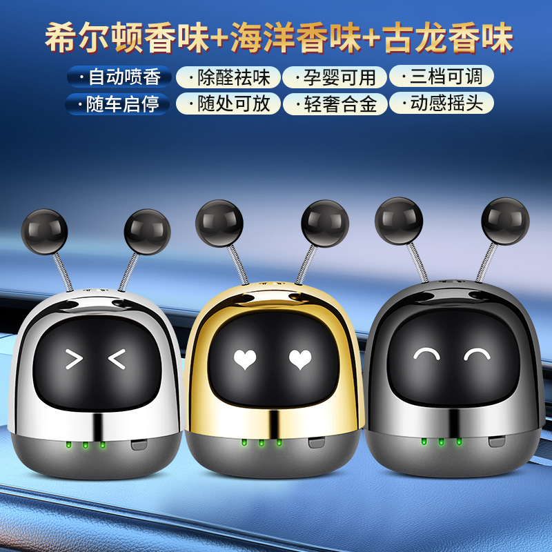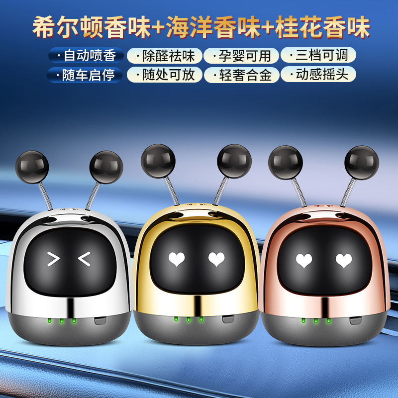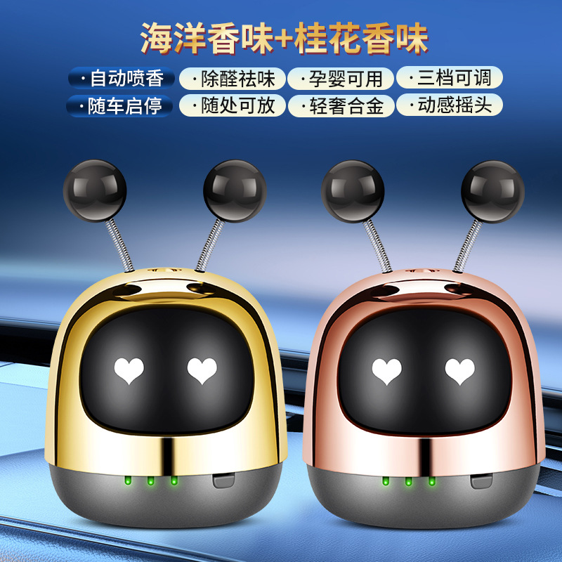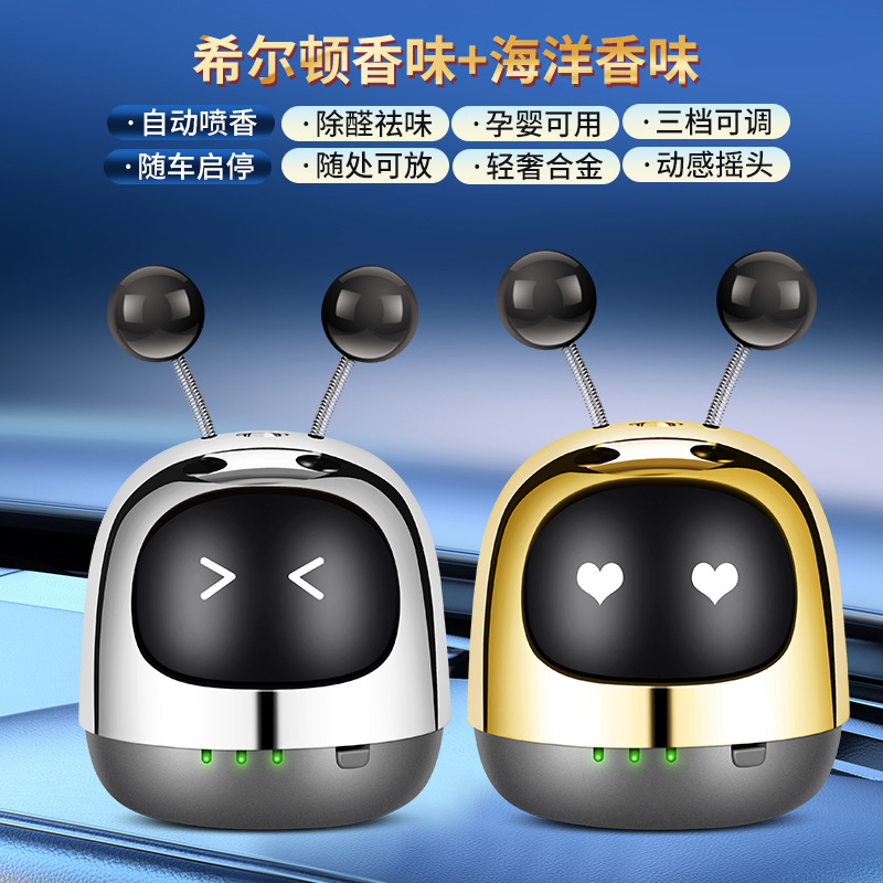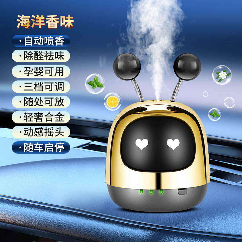 新款随车启停智能喷雾车载香薰机卡通可爱机器人车内香水车用香薰