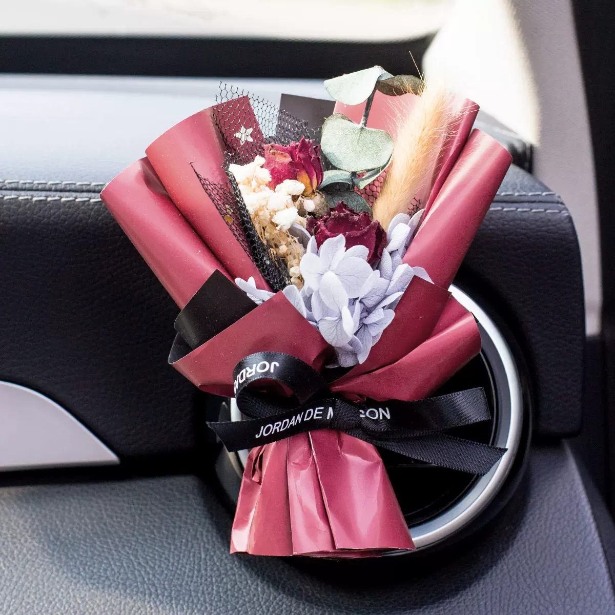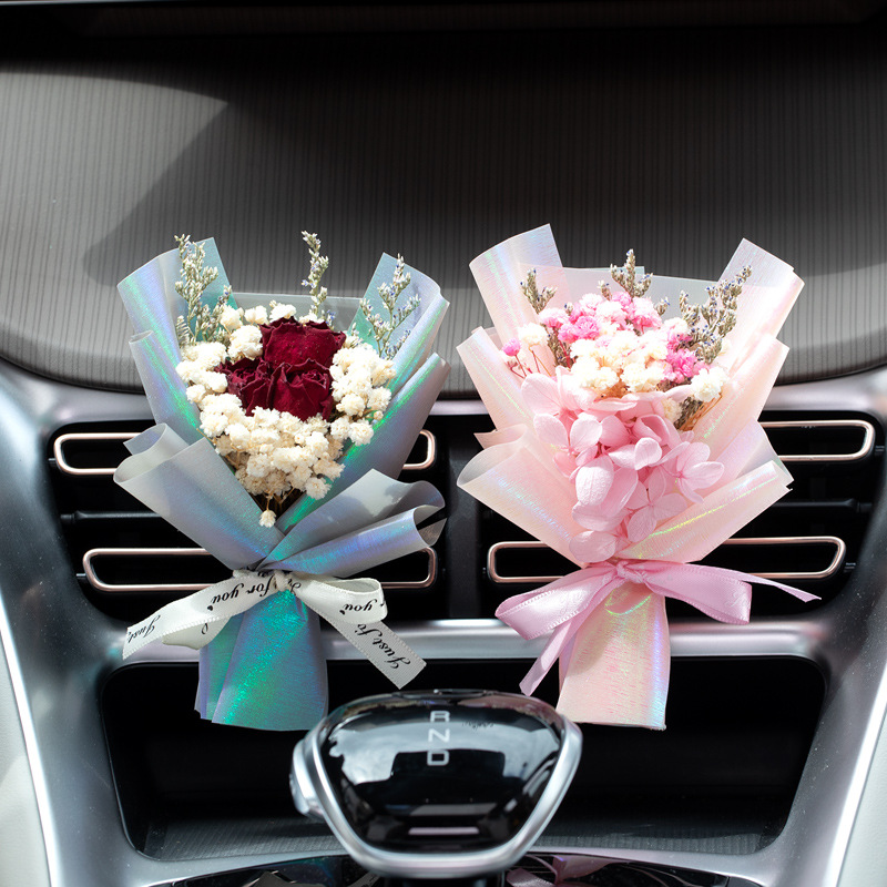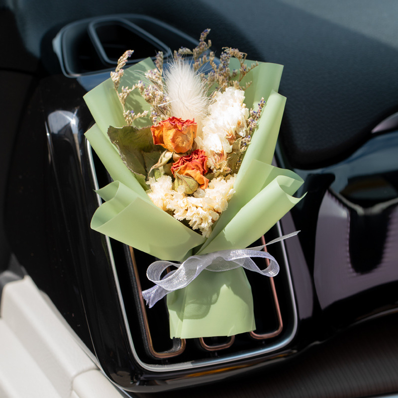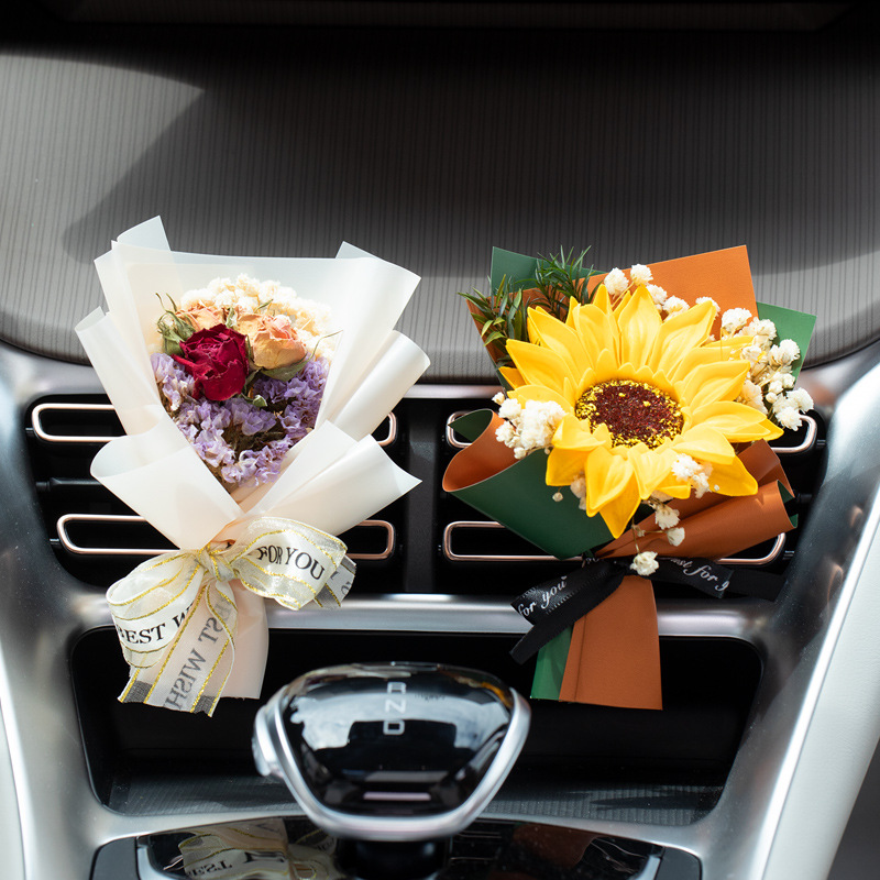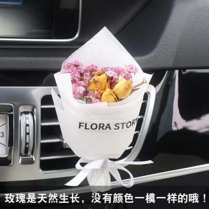 车载香薰出风口香水创意永生干花束汽车装饰摆件空调香氛夹玫瑰