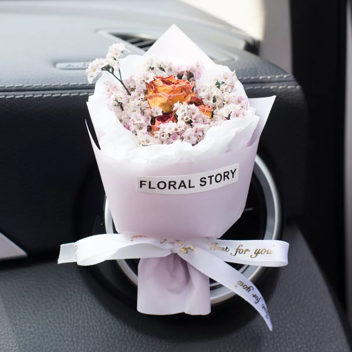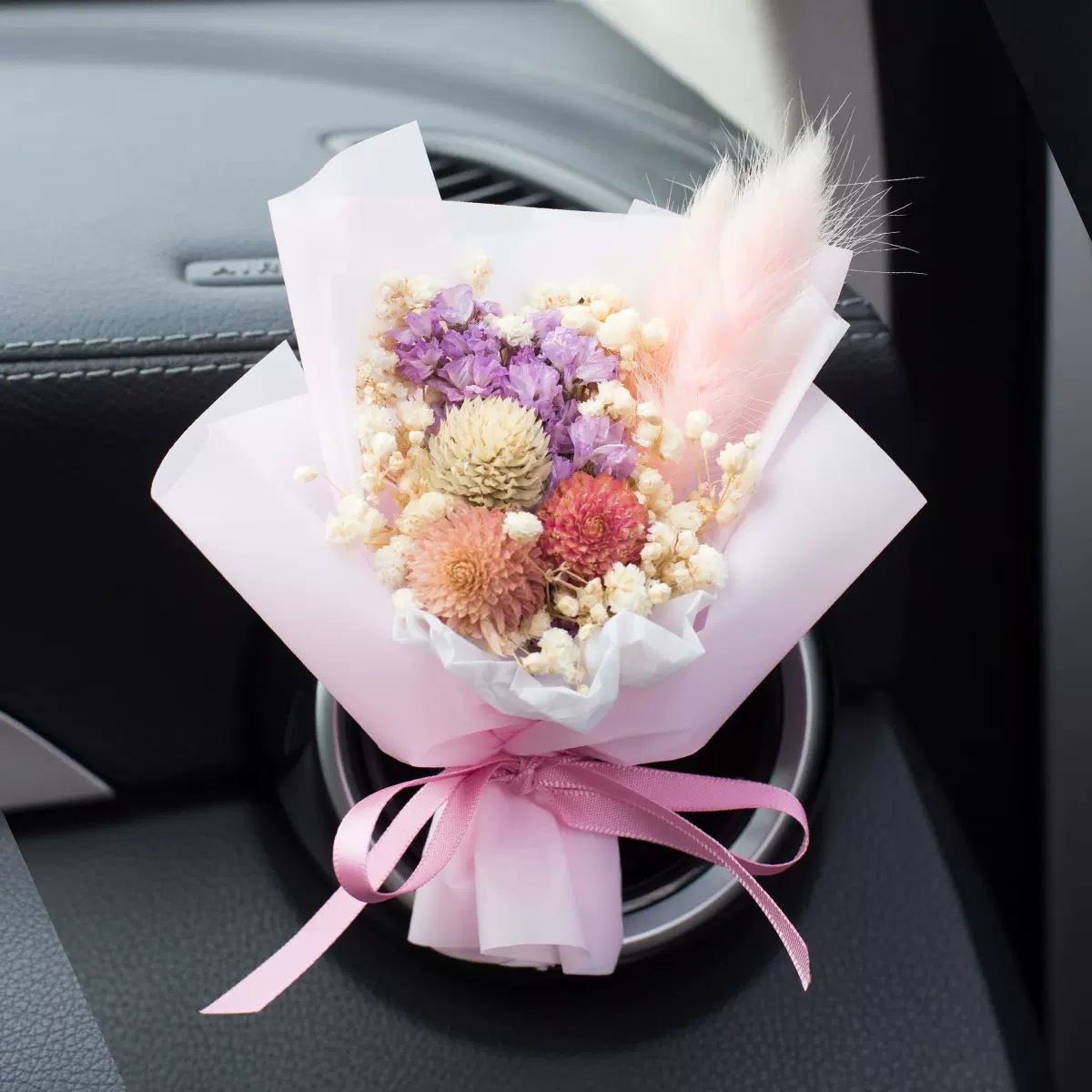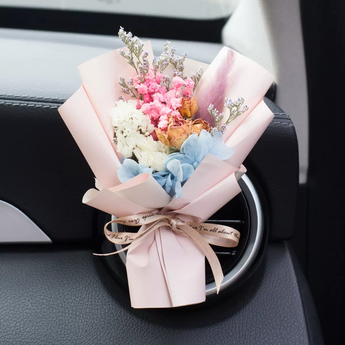 车载香薰出风口香水创意永生干花束汽车装饰摆件空调香氛夹玫瑰