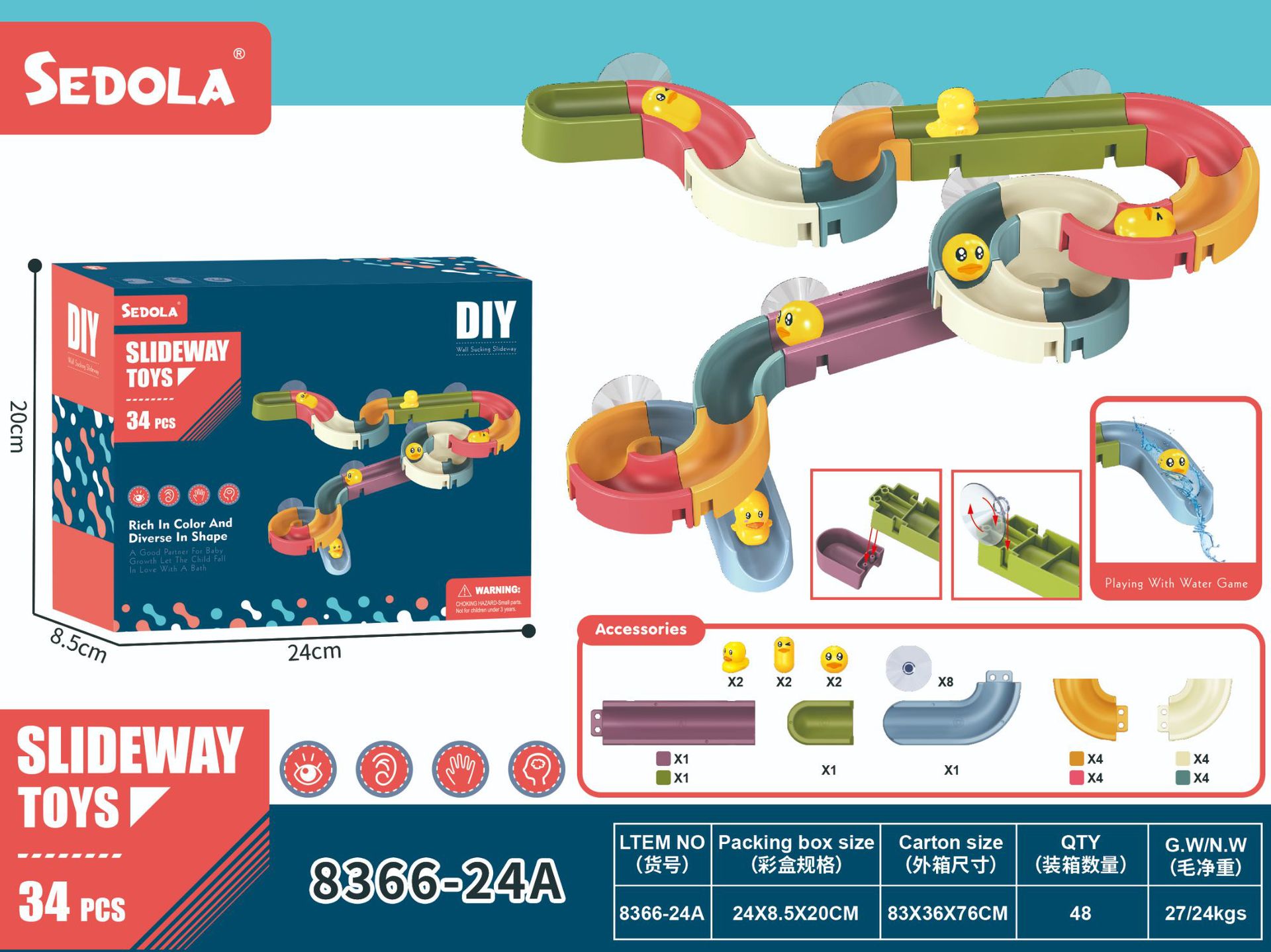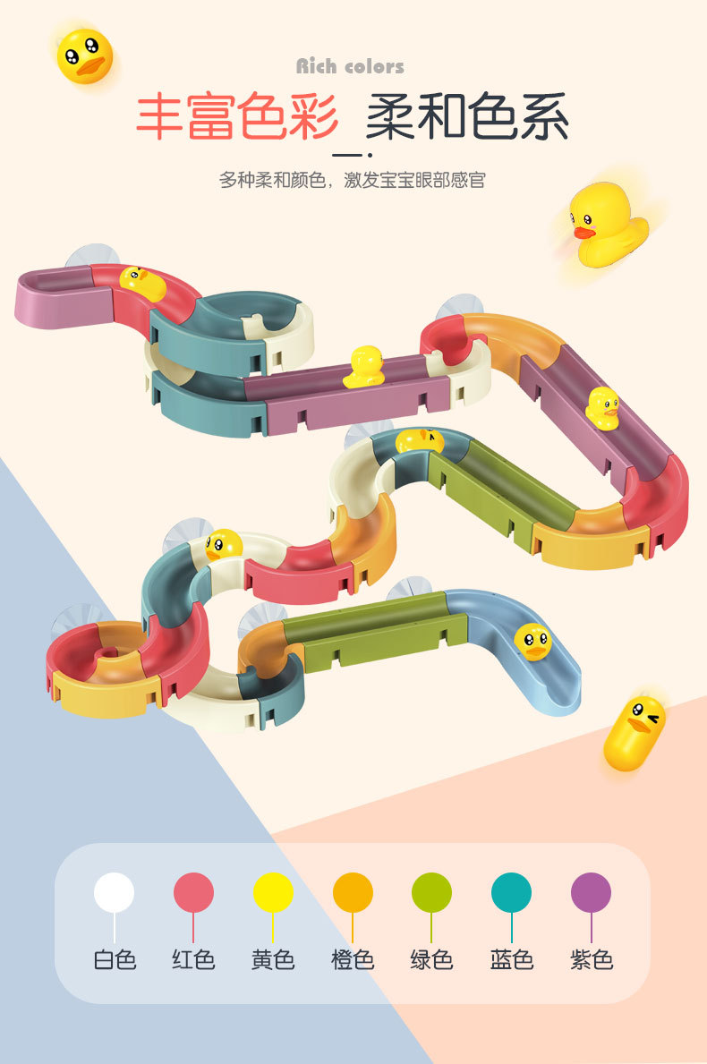 DIY洗澡玩具 拼装轨道滚珠滑滑乐小鸭转转乐儿童浴室花洒戏水玩具