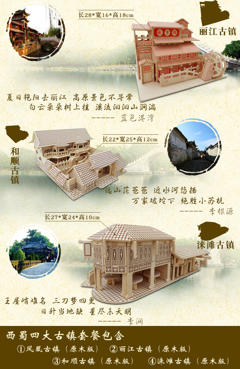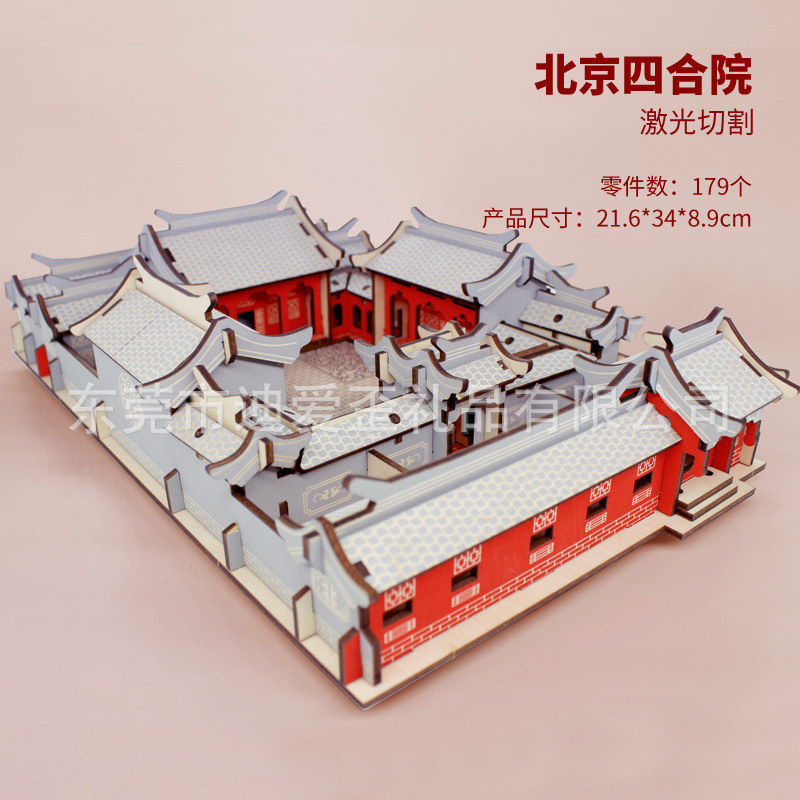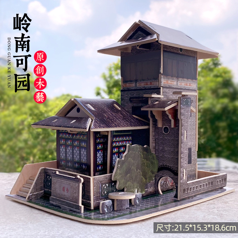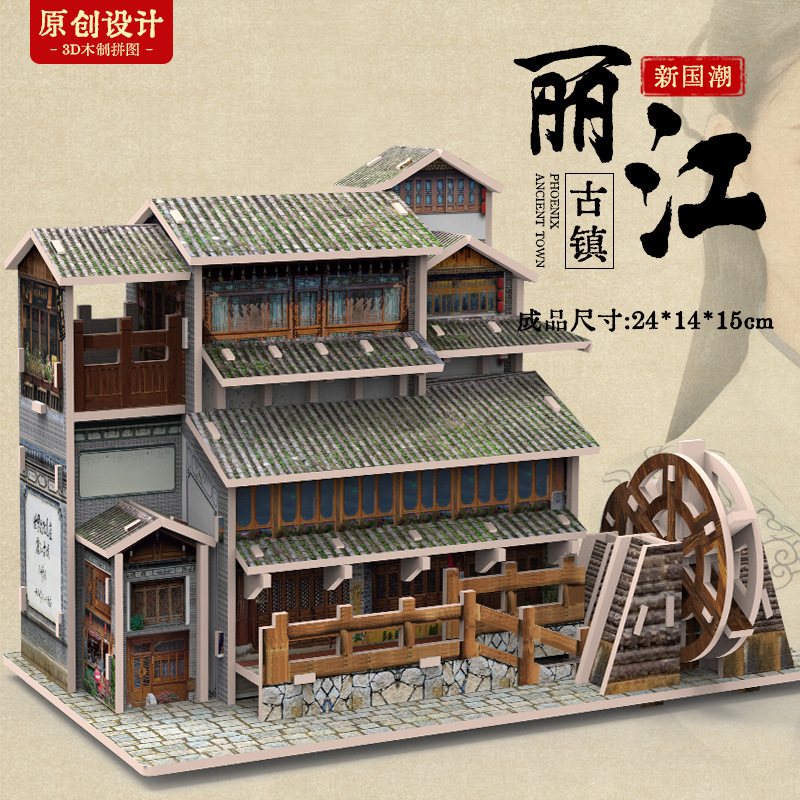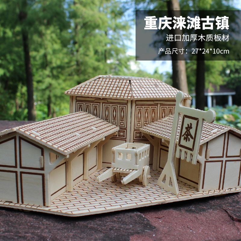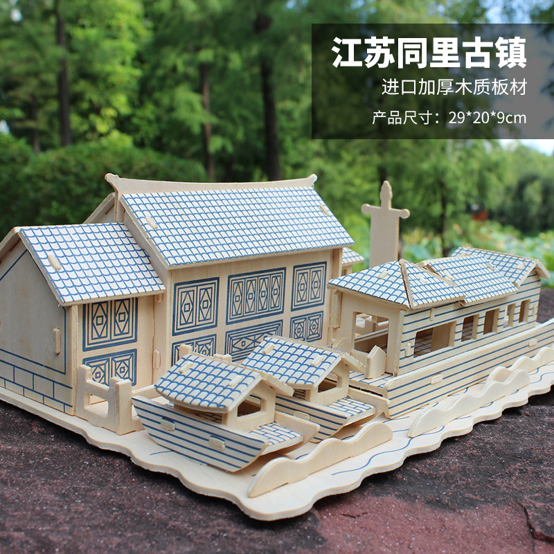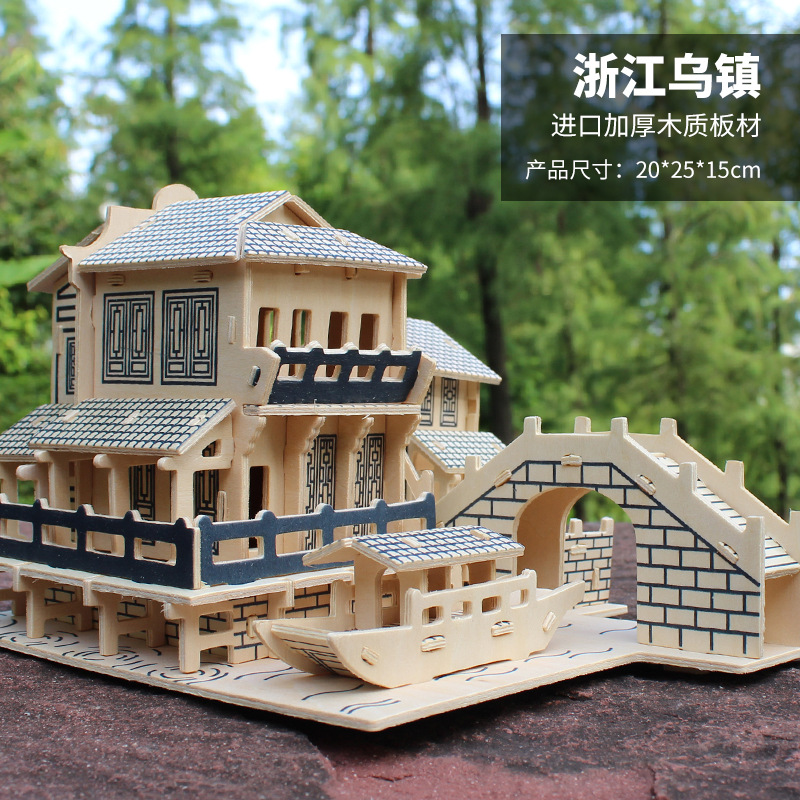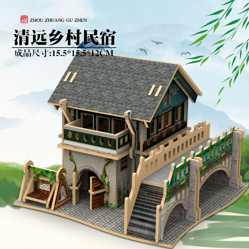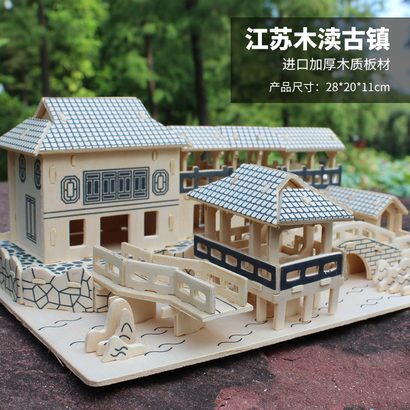 中国风古建筑3d立体拼图批发木制拼装玩具儿童手工活动模型徽居