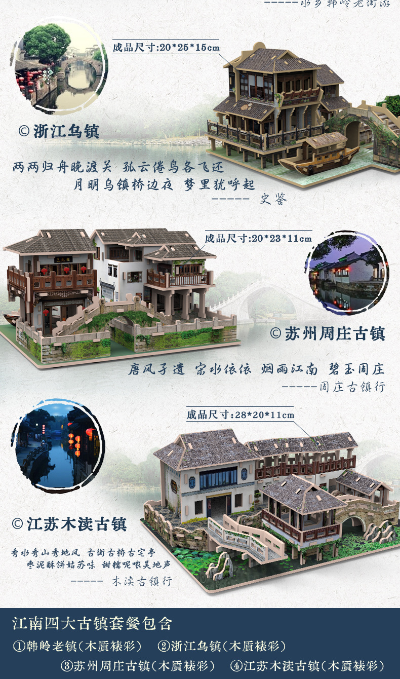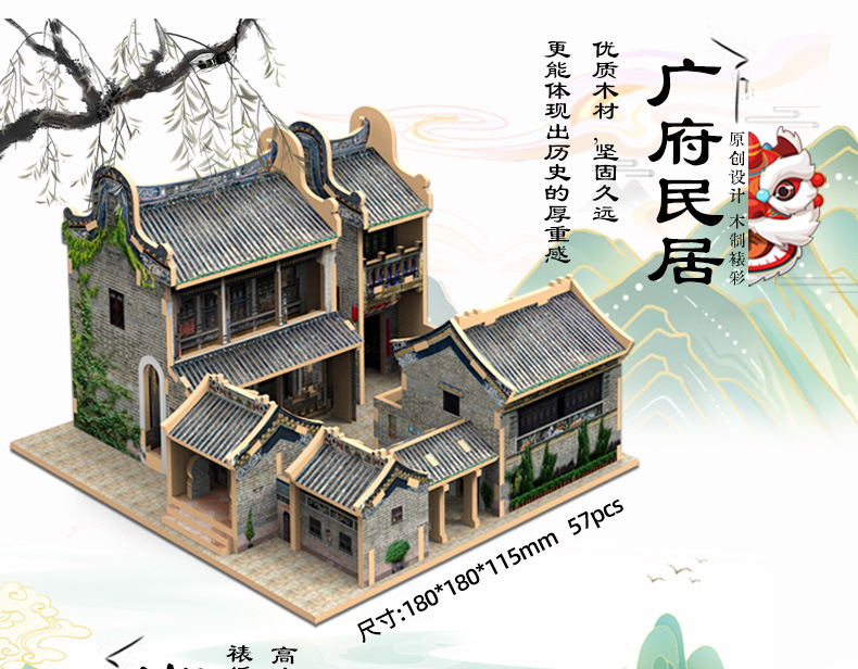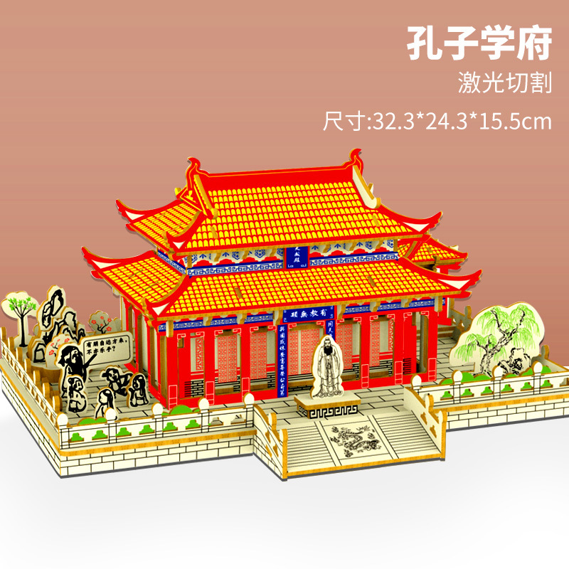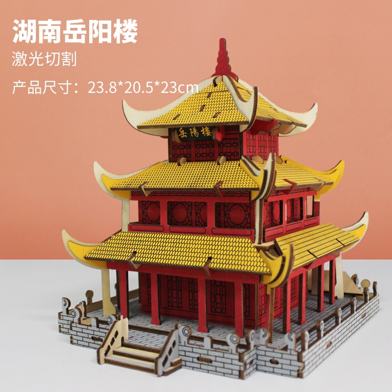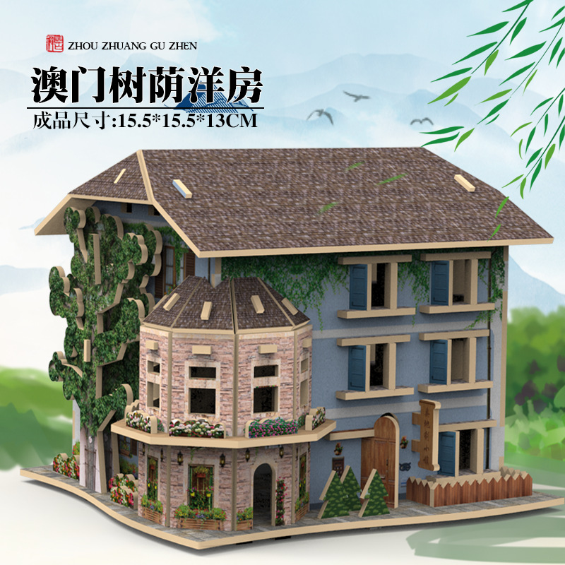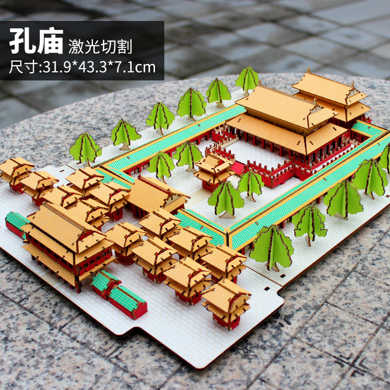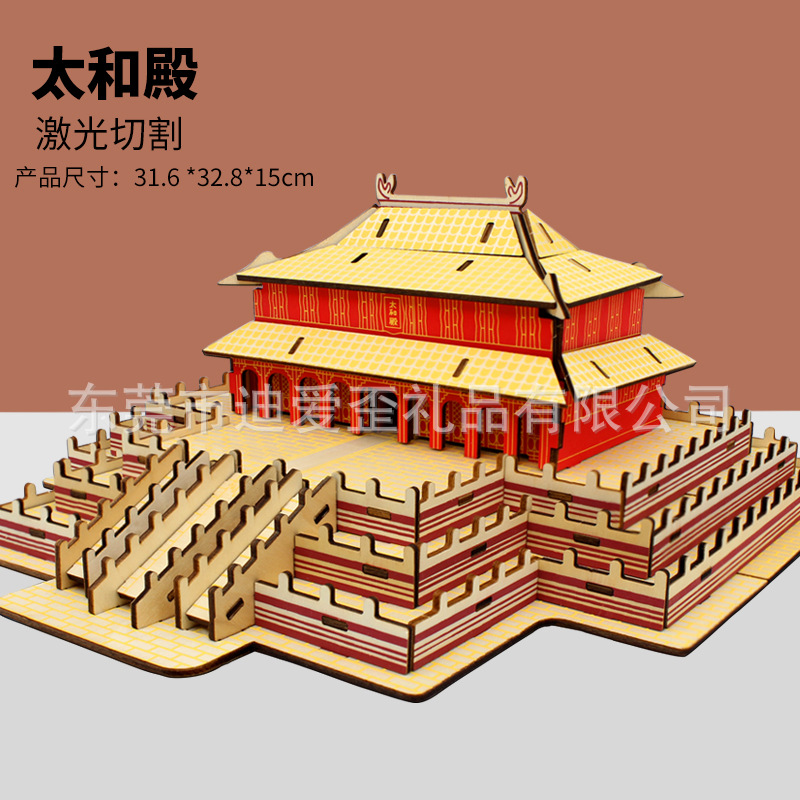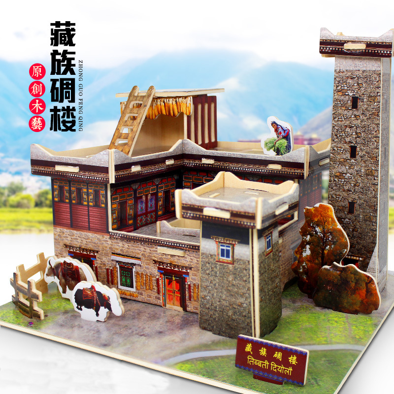 中国风古建筑3d立体拼图批发木制拼装玩具儿童手工活动模型徽居