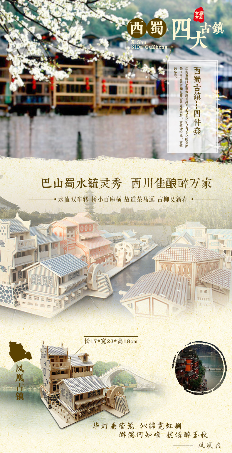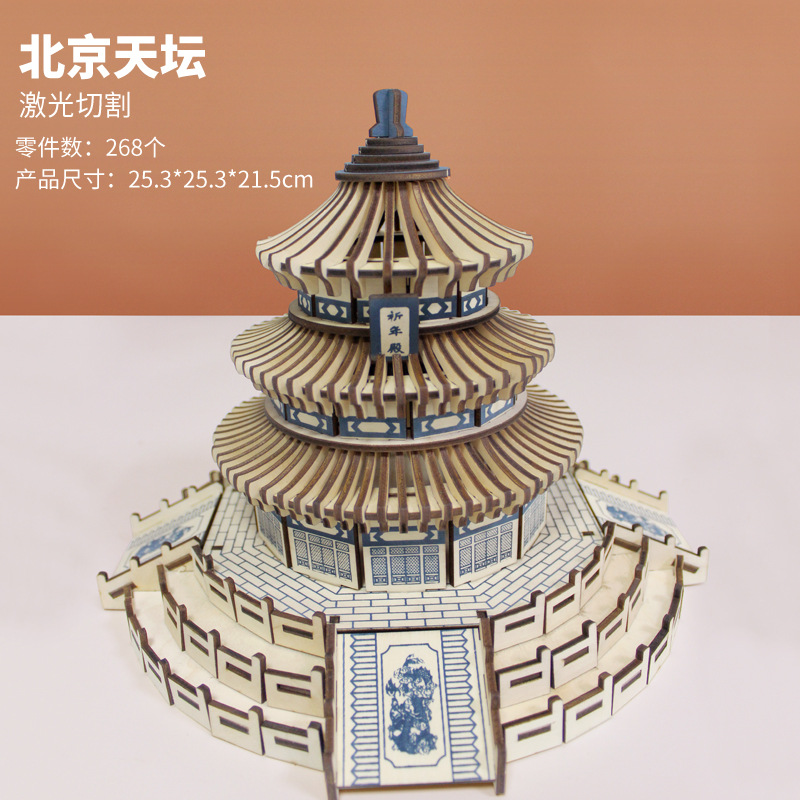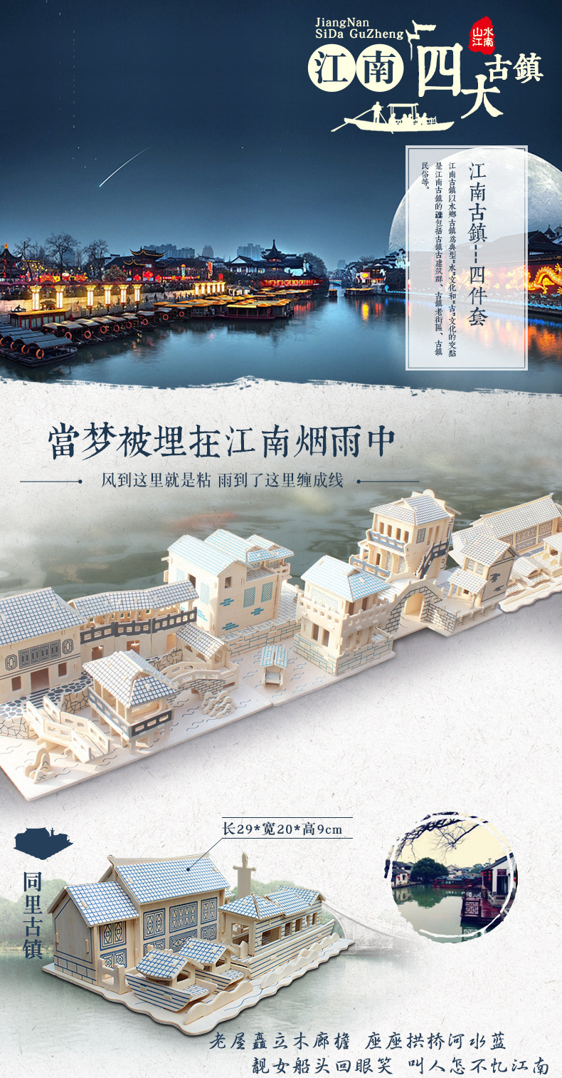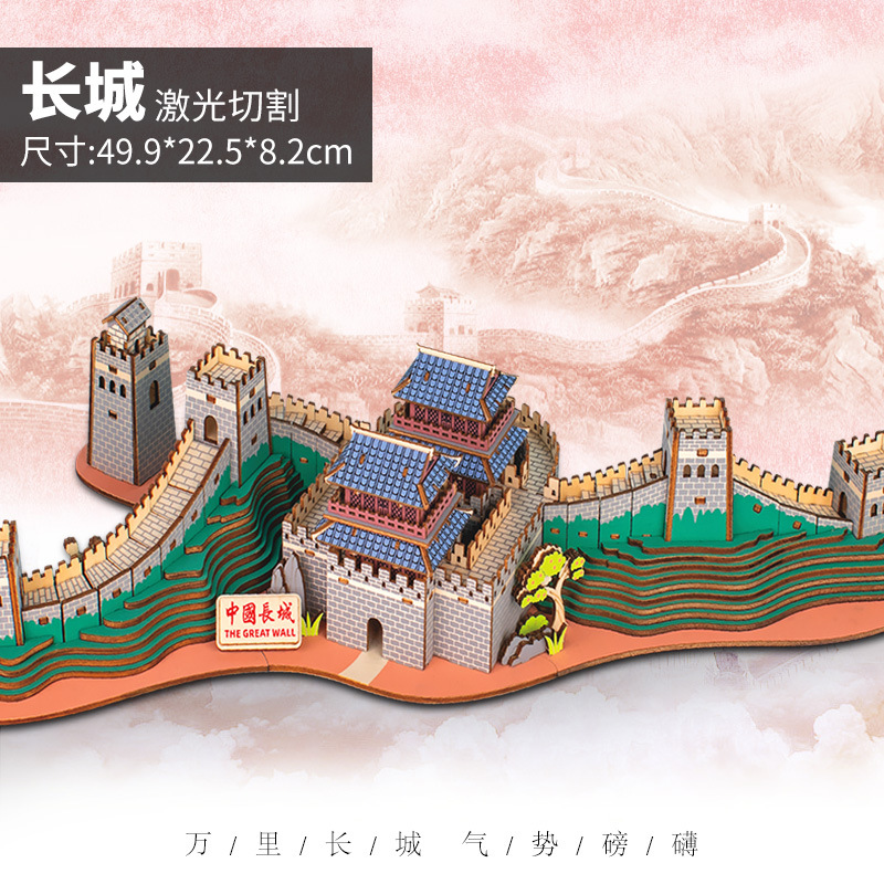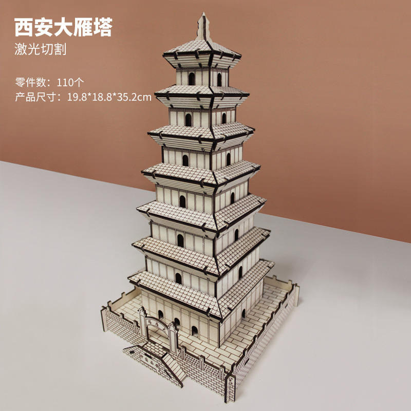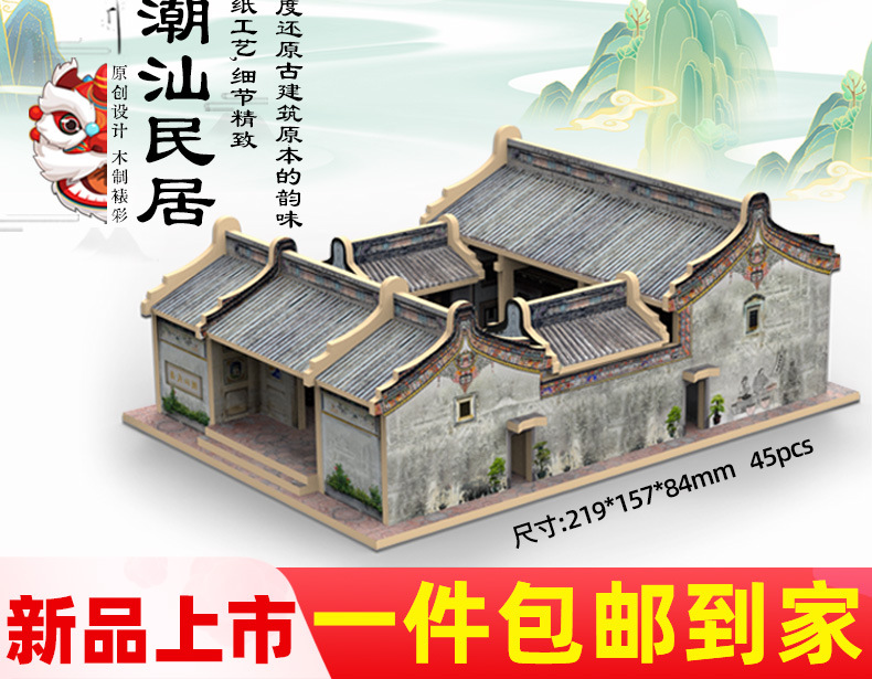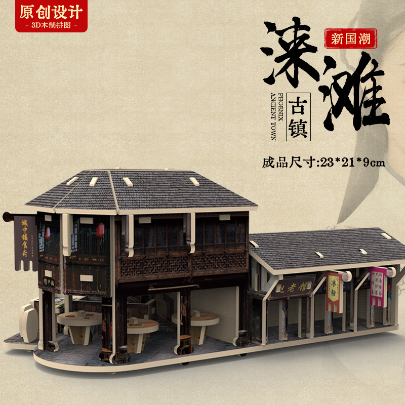 中国风古建筑3d立体拼图批发木制拼装玩具儿童手工活动模型徽居