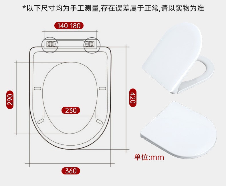 家用塑料大UD短马桶盖挂墙式坐便器盖板快拆通用小户型马桶盖批发
