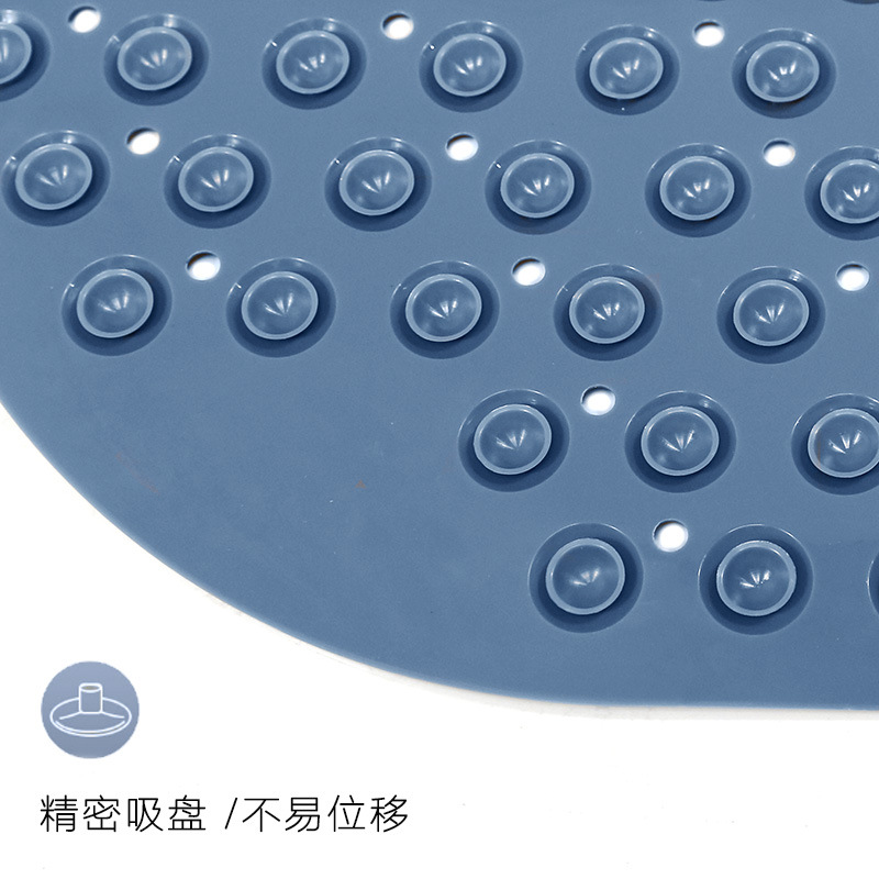 使用说明:先将浴垫平铺于湿滑地面或浴缸里面,再按压垫子表面排出吸盘内空气使吸盘牢牢粘住地面。确定地垫不再移动了就可以站上去使用咯。用完后需将防滑垫拿起来悬挂收纳,或贴墙收纳,避免滋生细菌。