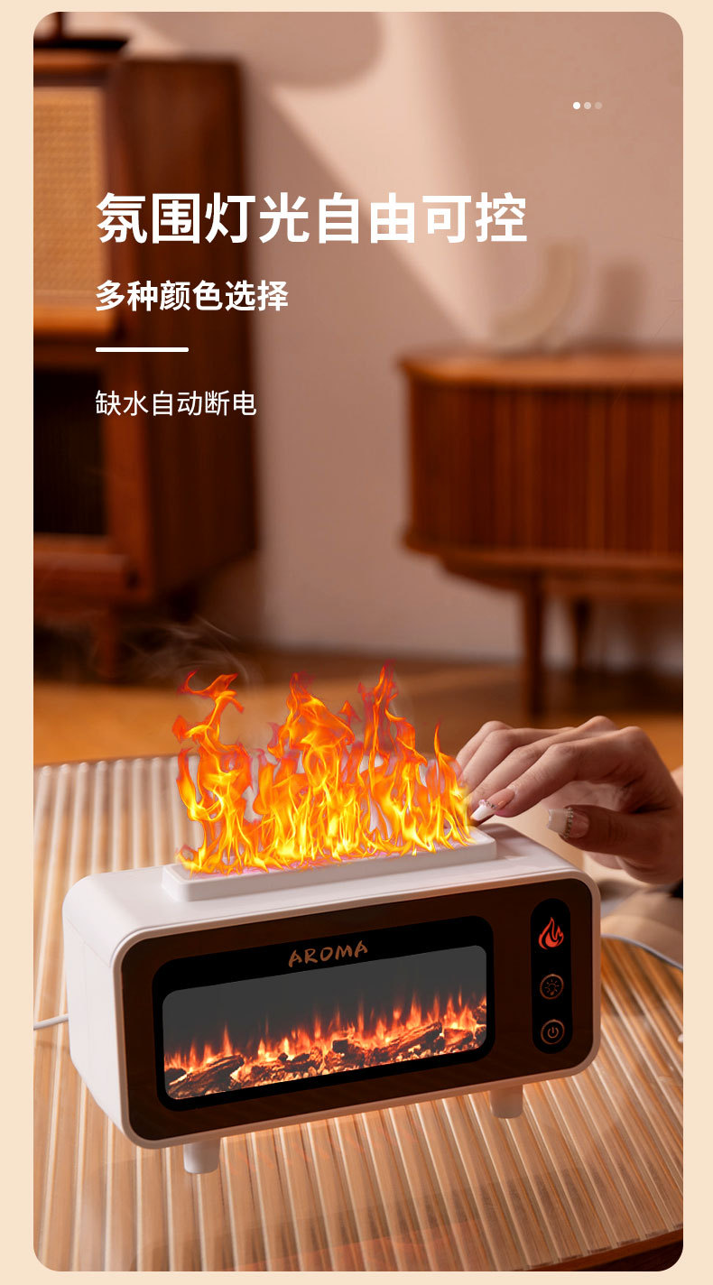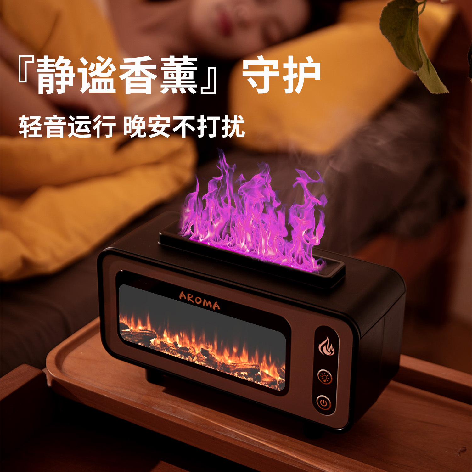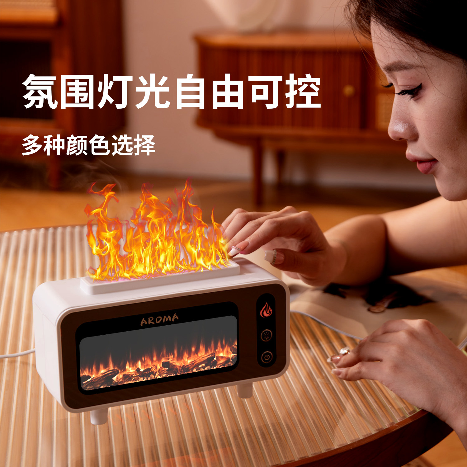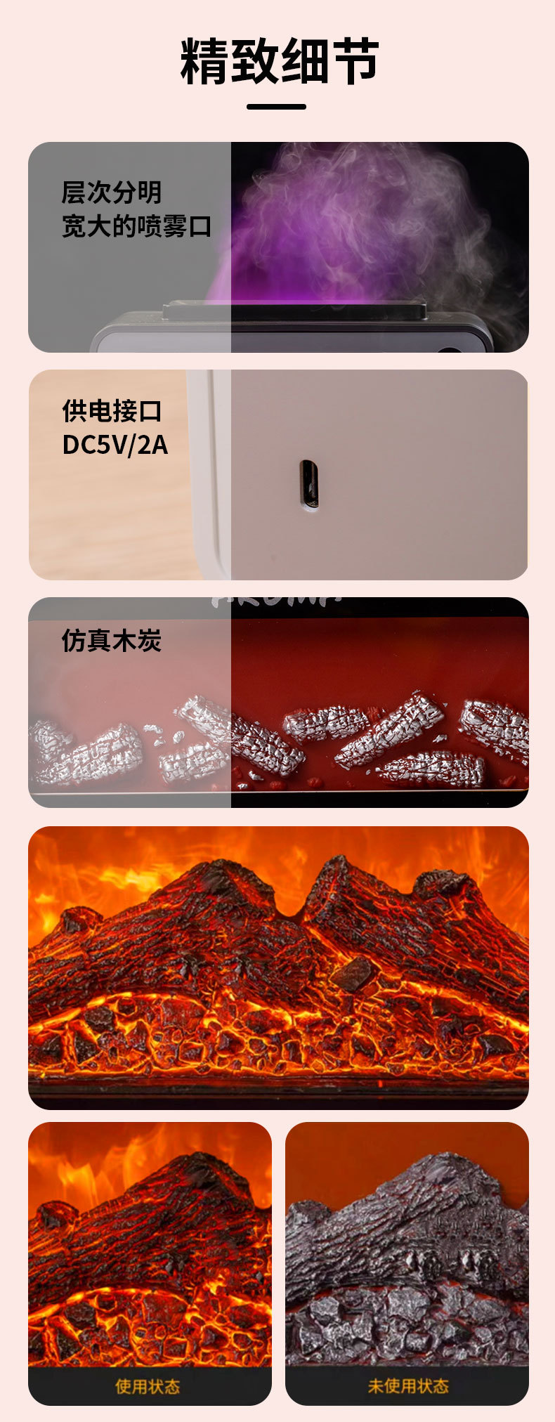 跨境壁炉火焰加湿香薰机USB超声波桌面扩香机家用七彩火焰加湿器