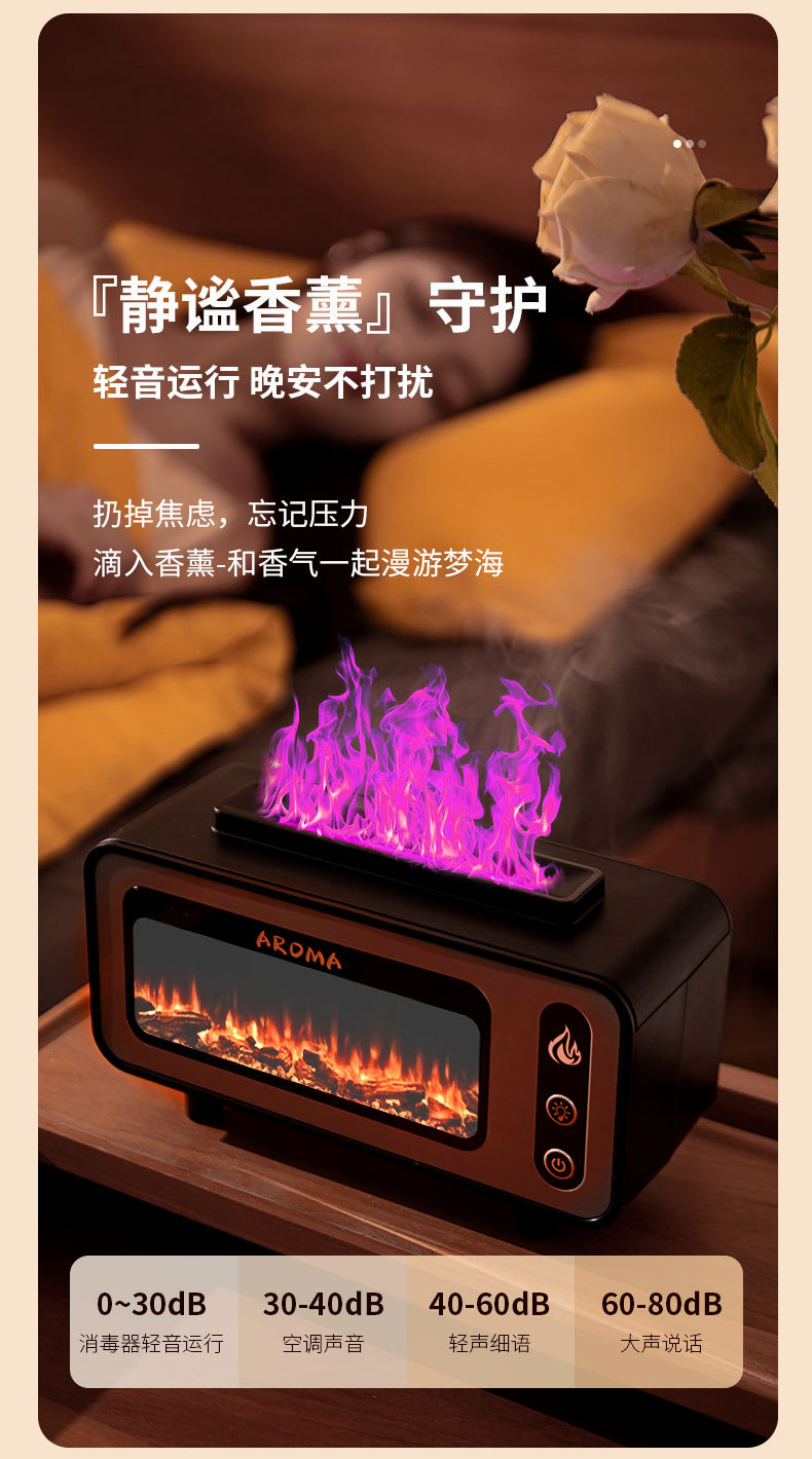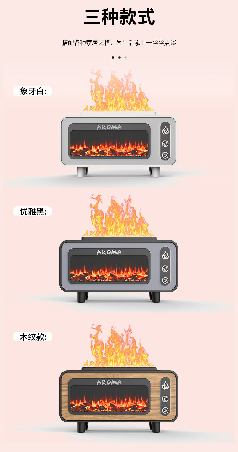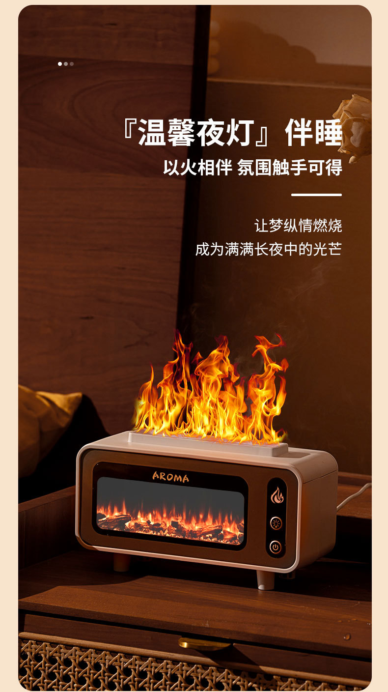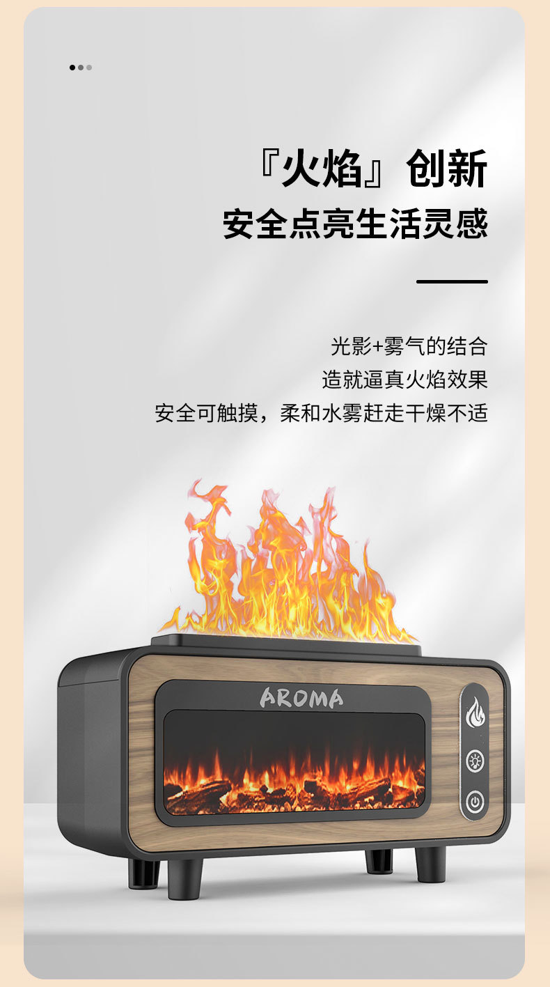 跨境壁炉火焰加湿香薰机USB超声波桌面扩香机家用七彩火焰加湿器