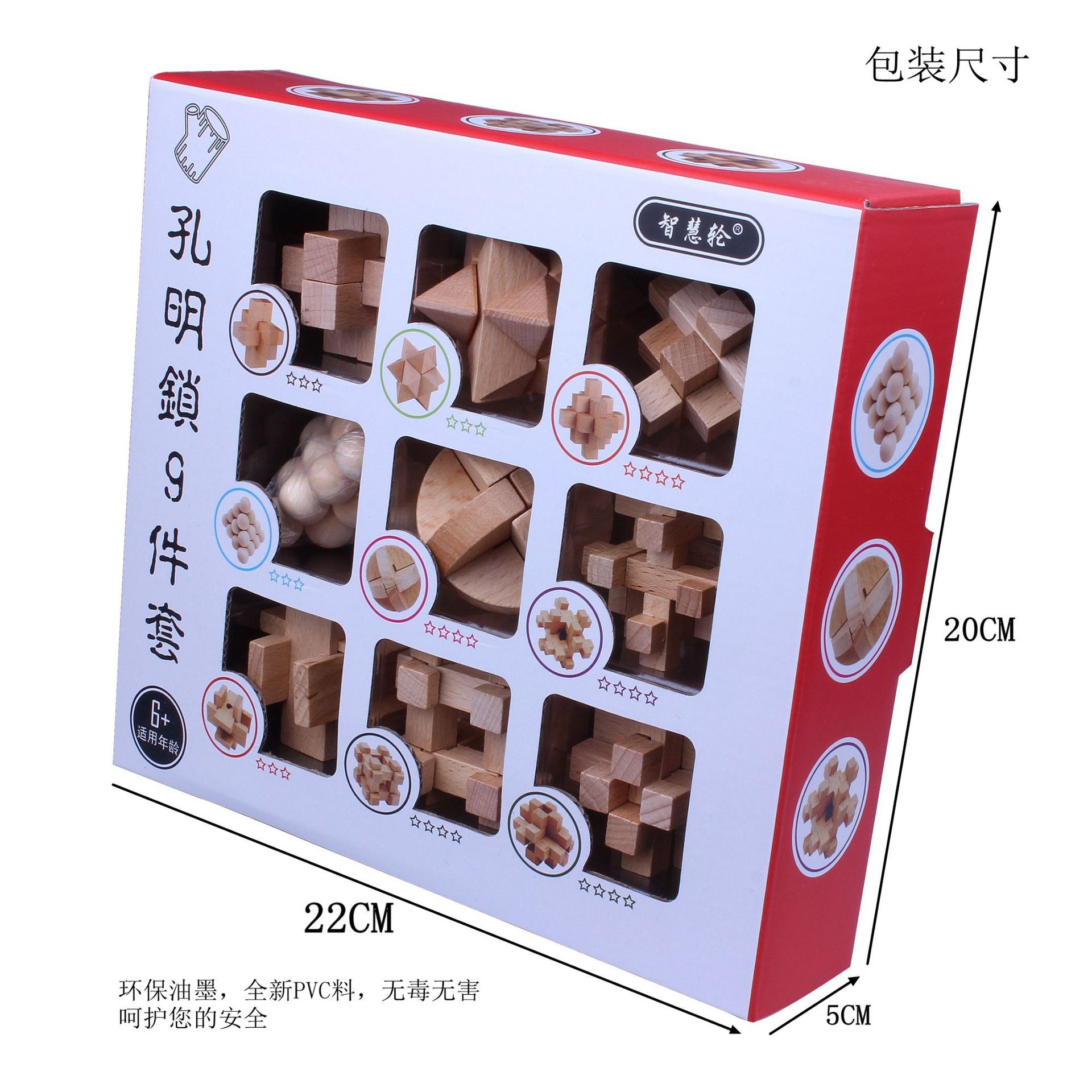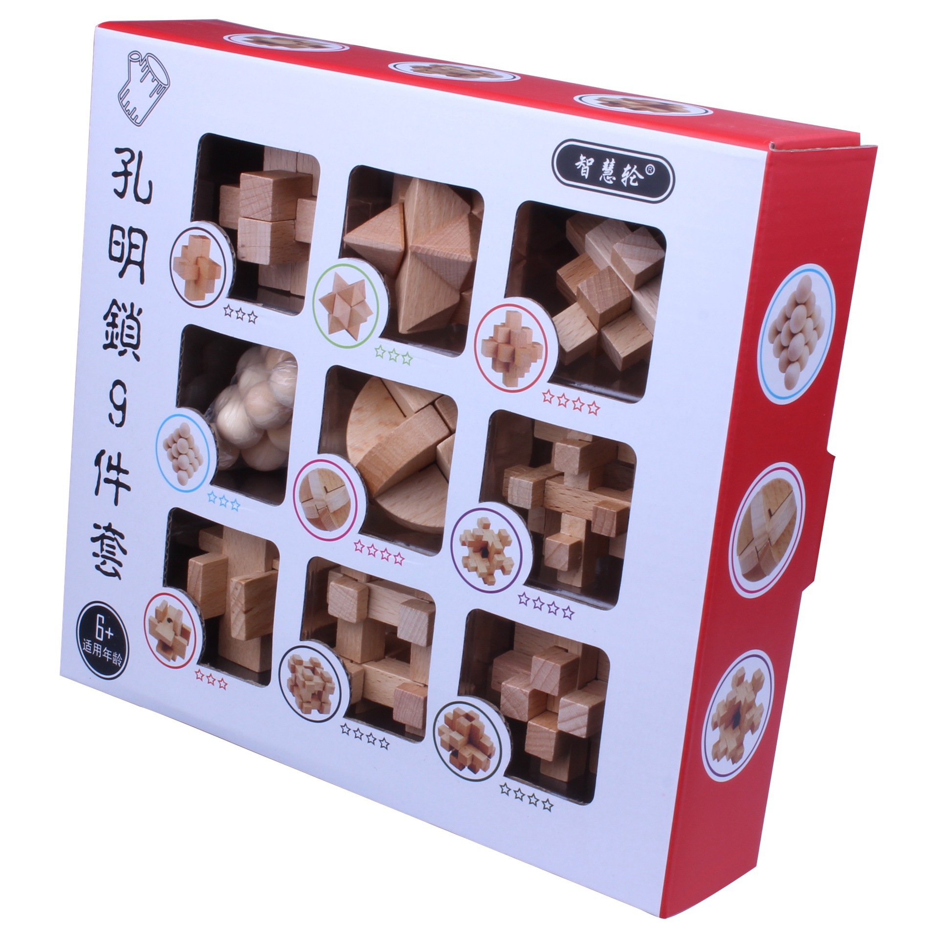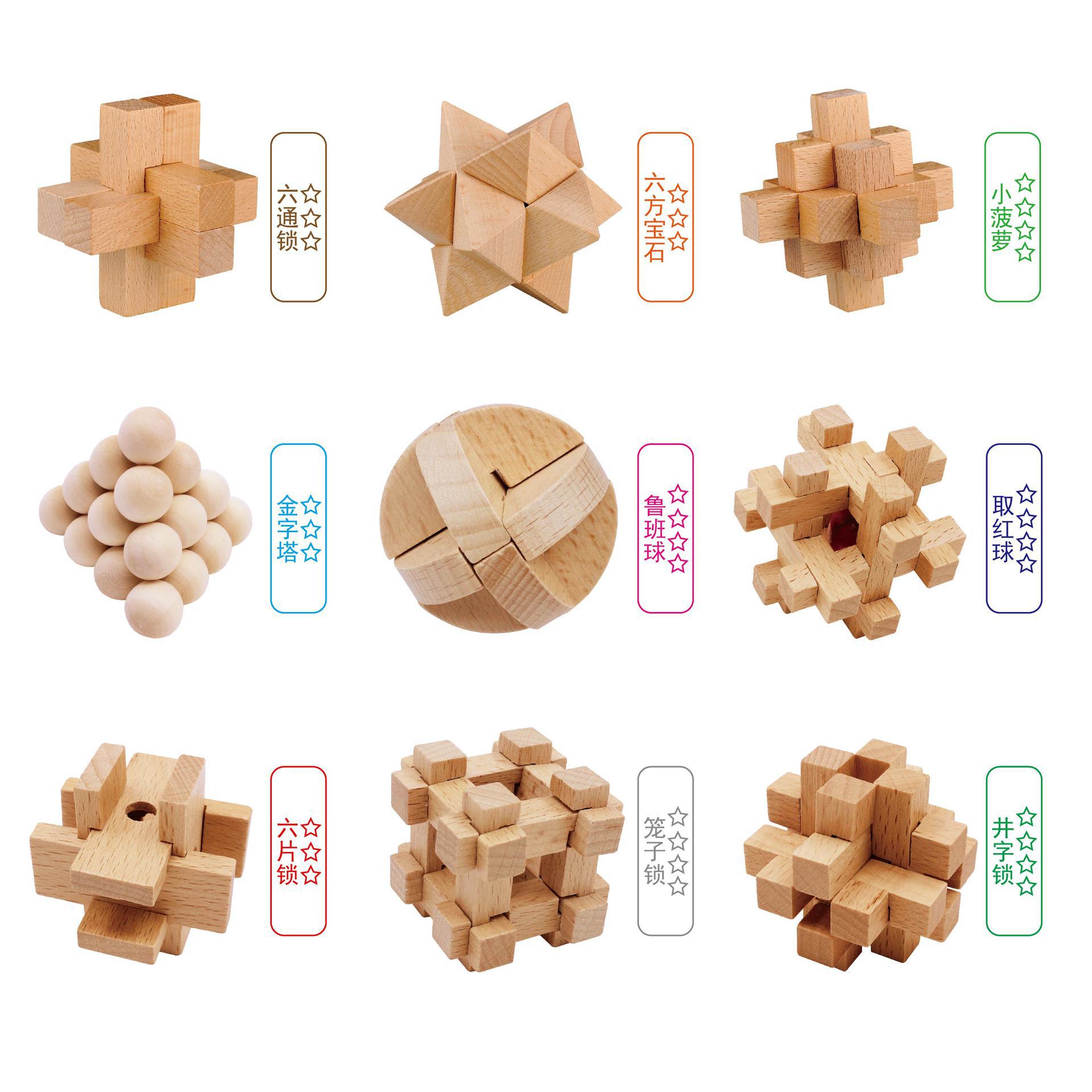 厂价直销木质孔明锁9件套装 儿童学生教学教具鲁班锁益智学生玩具