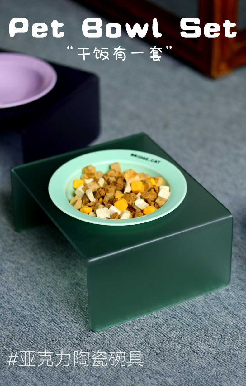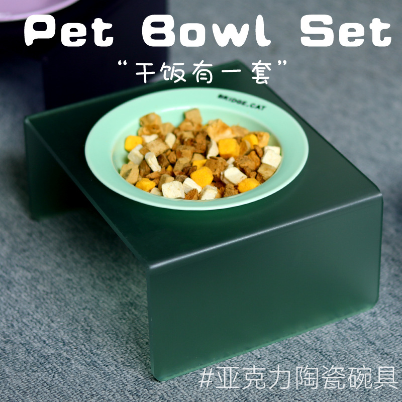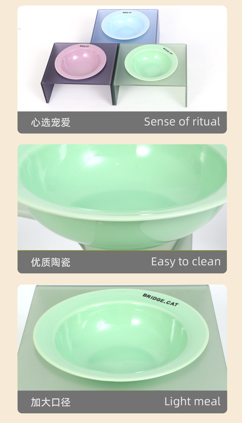 宠物碗陶瓷猫水碗狗食盆批发饭碗亚克力架加高餐桌宠物食具可分离