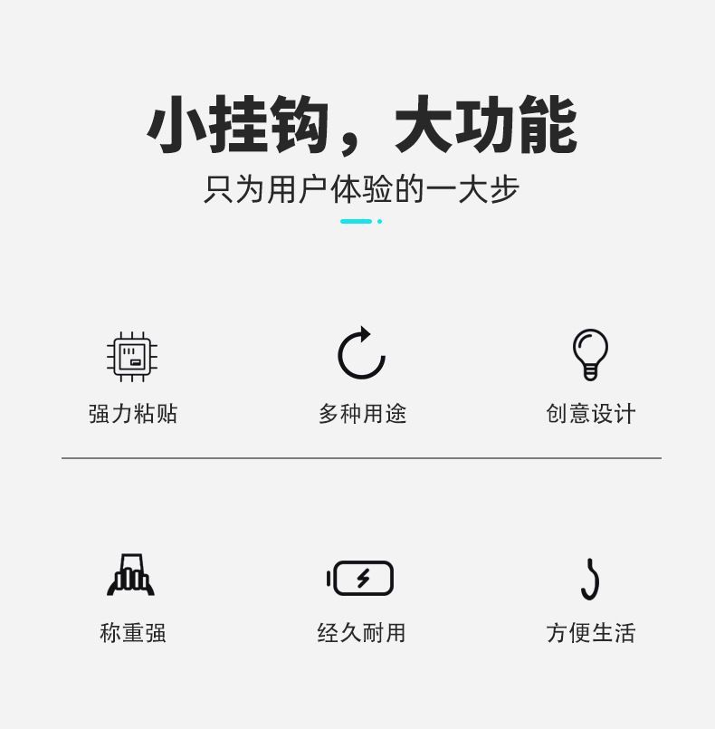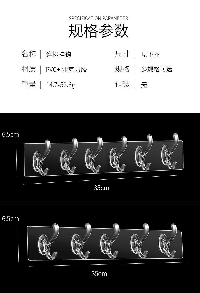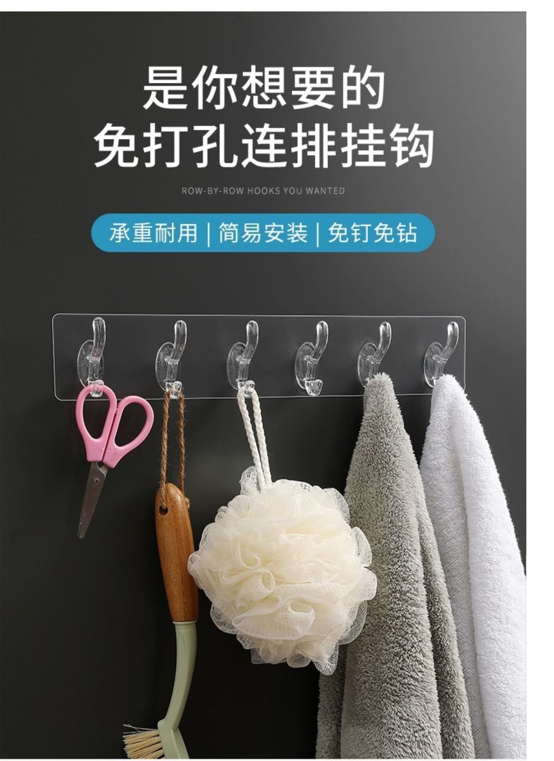 家居日用免打孔钉6六连排厨房浴室强力壁挂无痕挂钩三五连衣帽钩