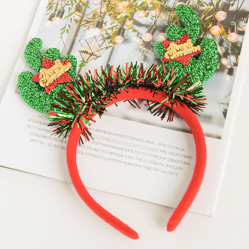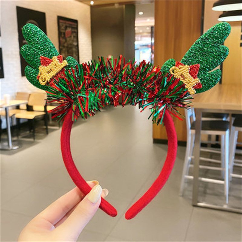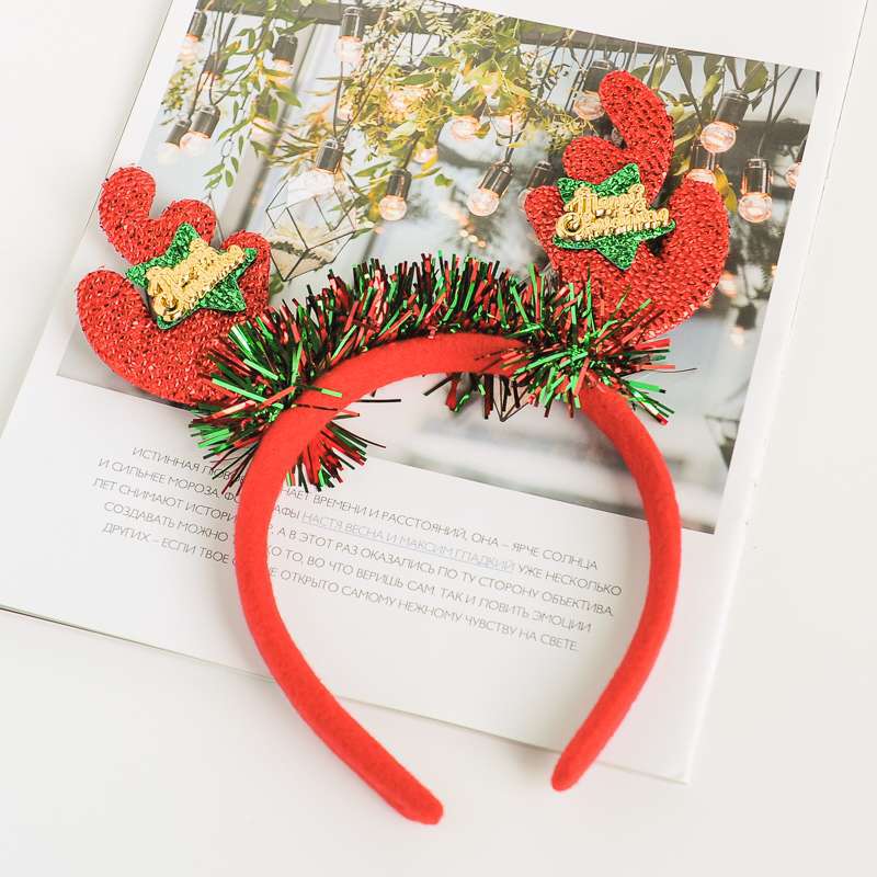 新款彩色亮片圣诞发箍创意可爱少女时尚鹿角头箍红色节日头饰发饰