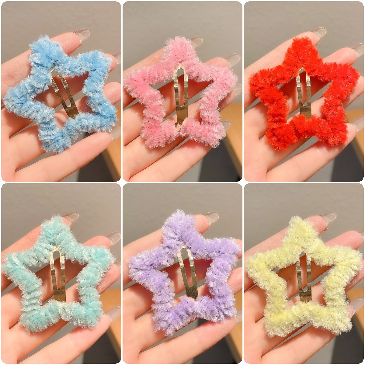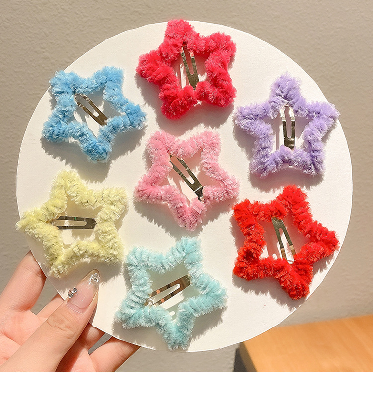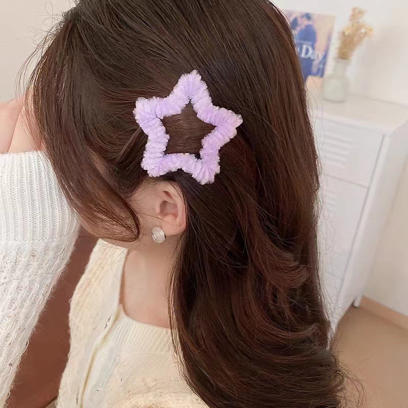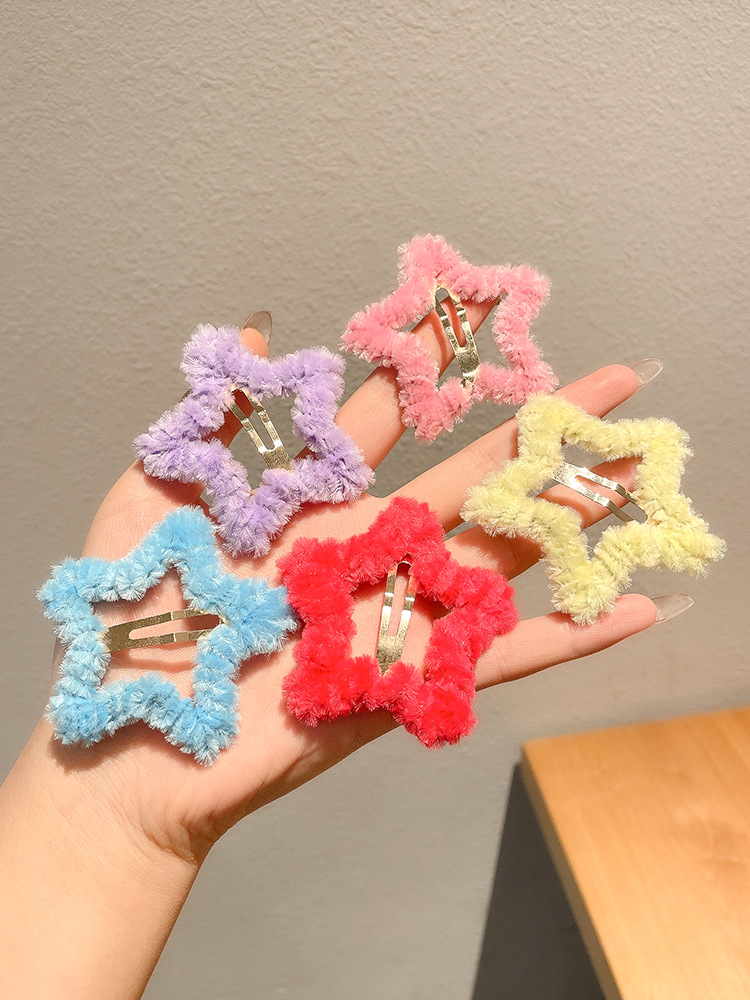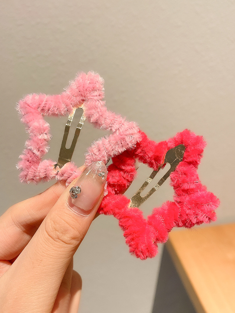 秋冬毛绒星星发夹边夹侧边刘海夹子头饰女碎发bb夹五角星毛毛发卡