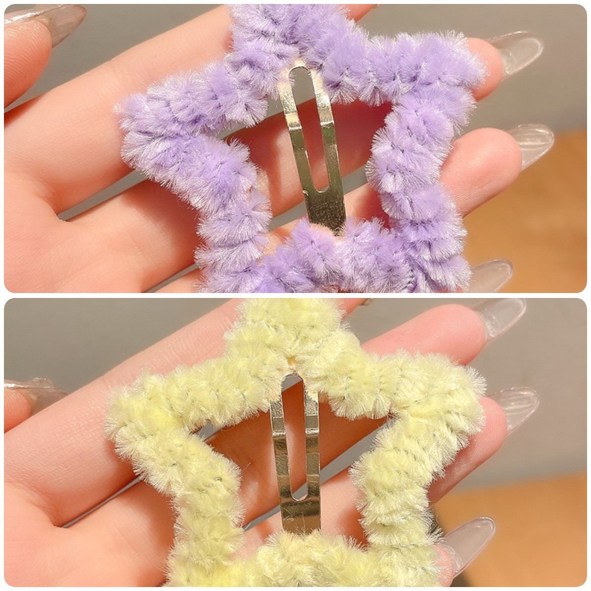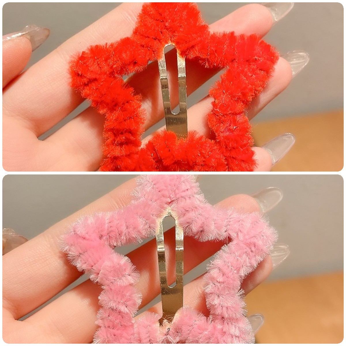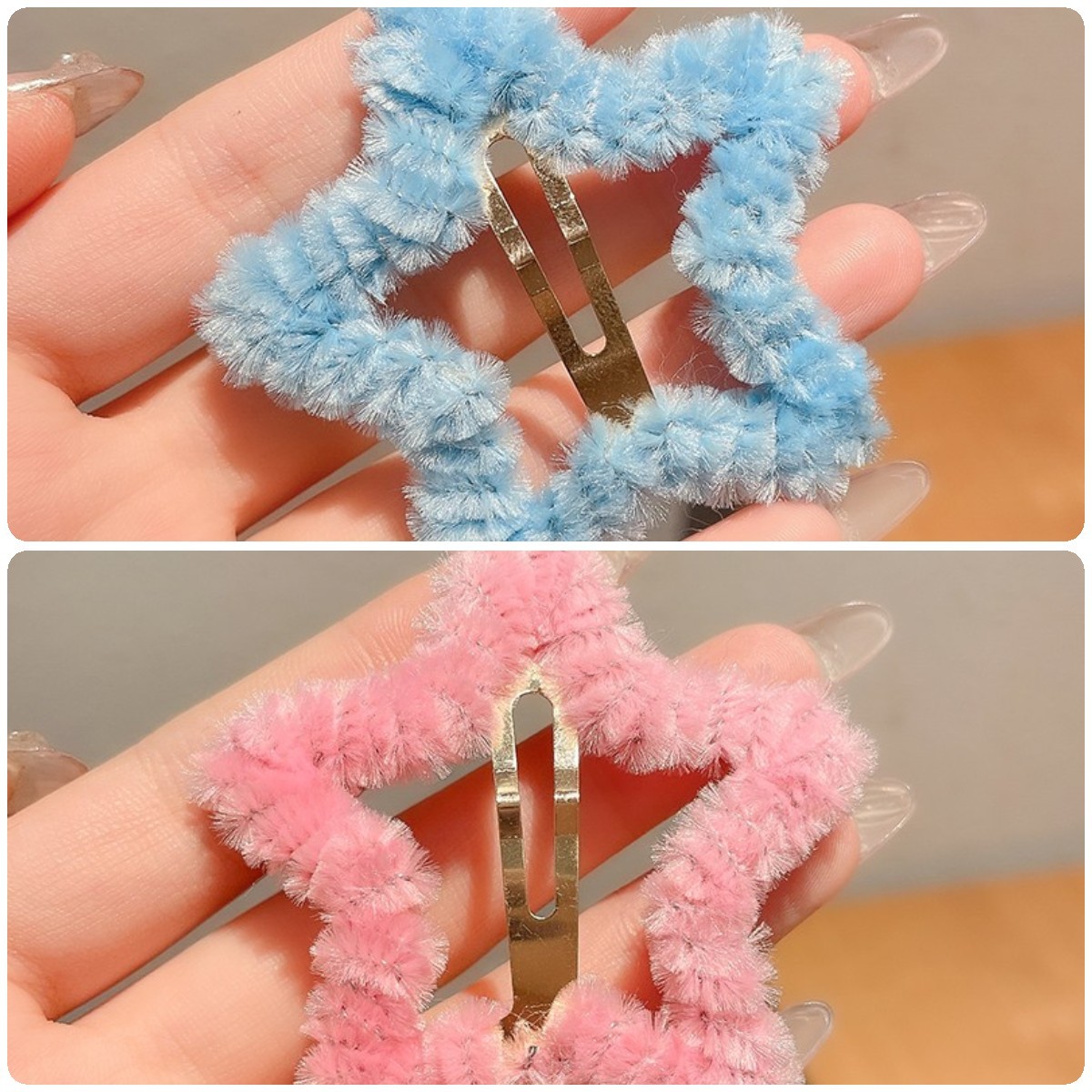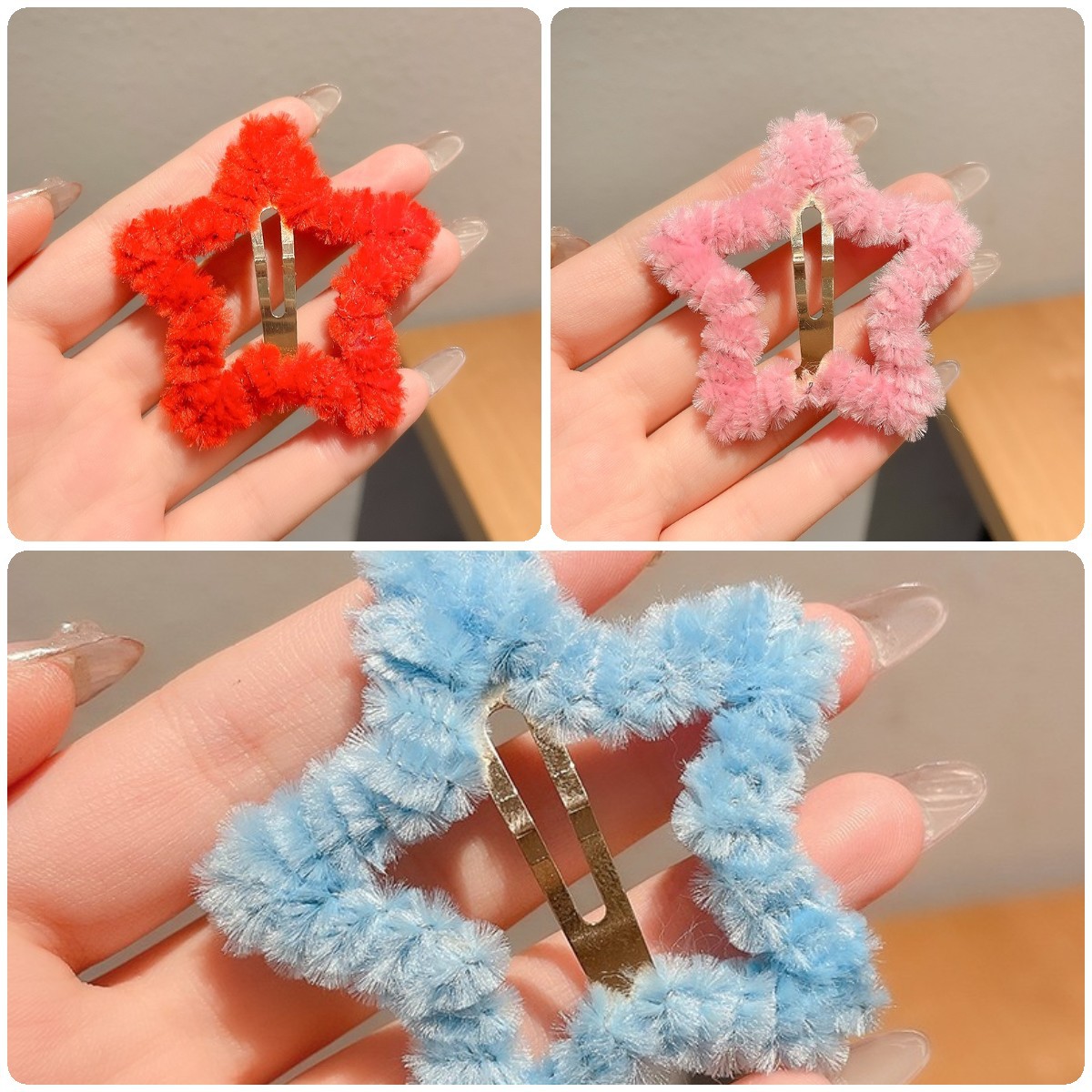 秋冬毛绒星星发夹边夹侧边刘海夹子头饰女碎发bb夹五角星毛毛发卡