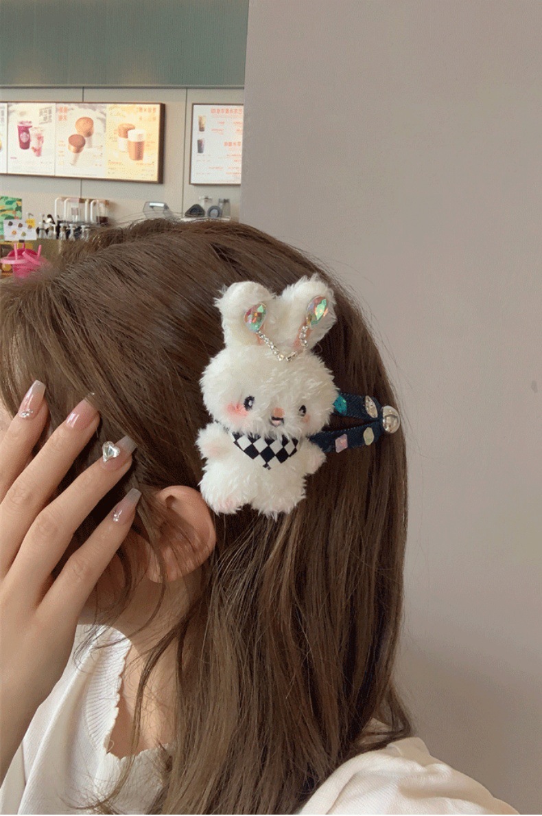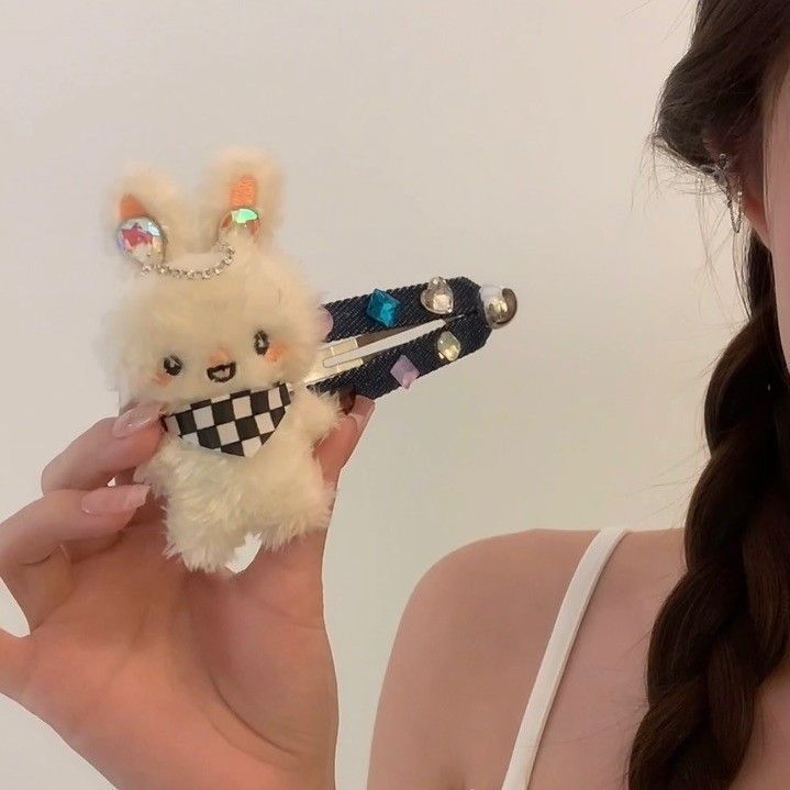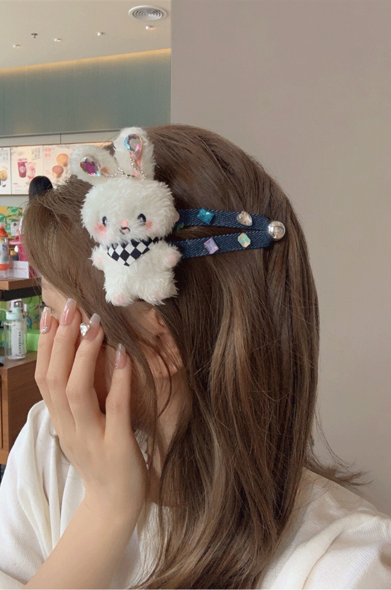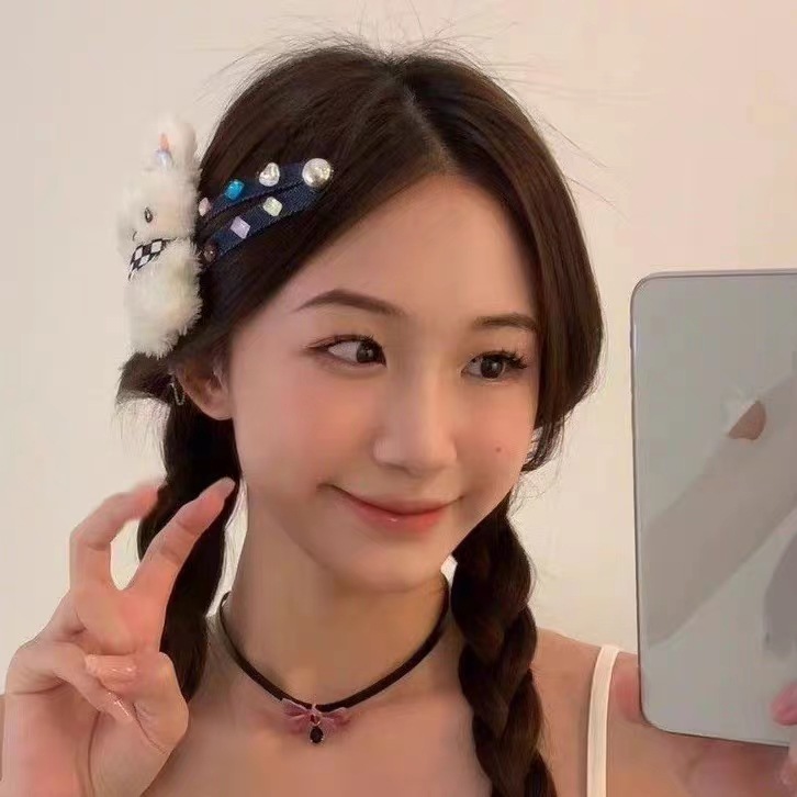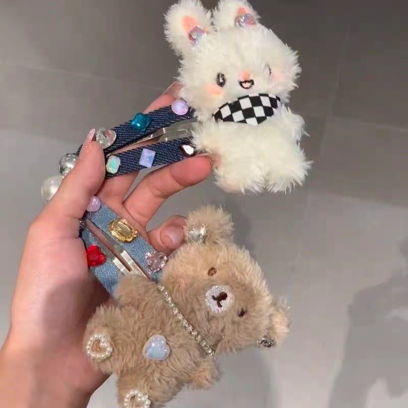 卡通日系毛绒公仔发夹新款秋冬设计感BB夹牛仔少女侧边夹发卡头饰