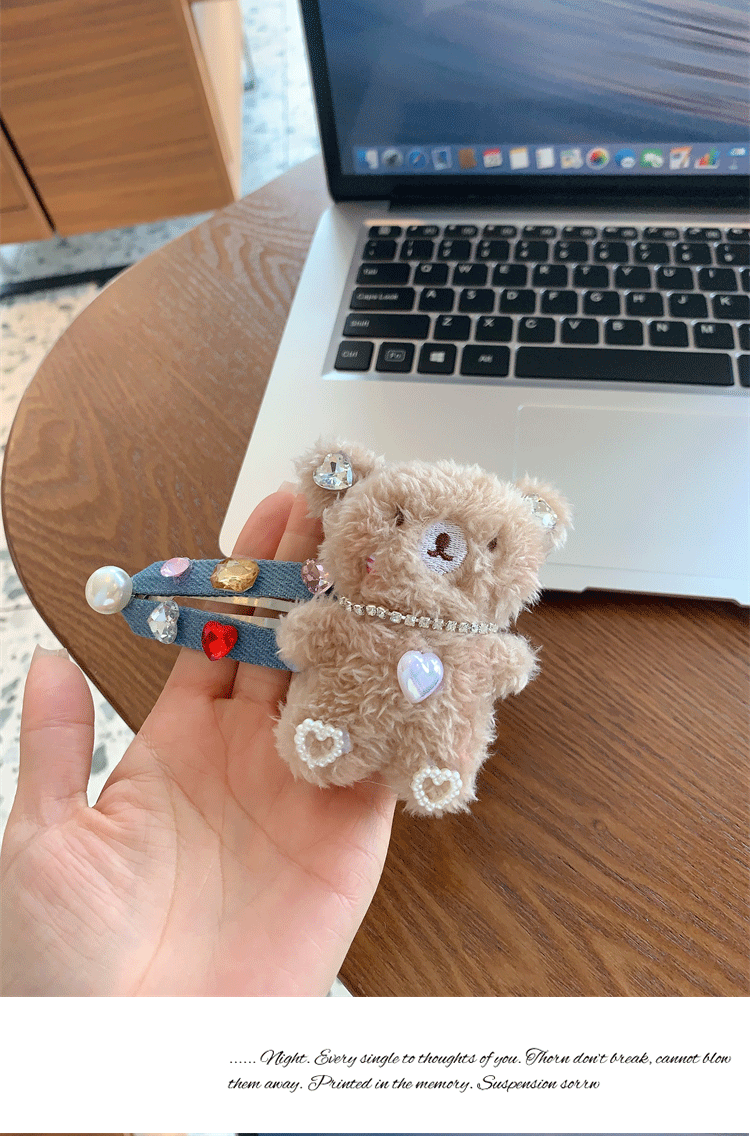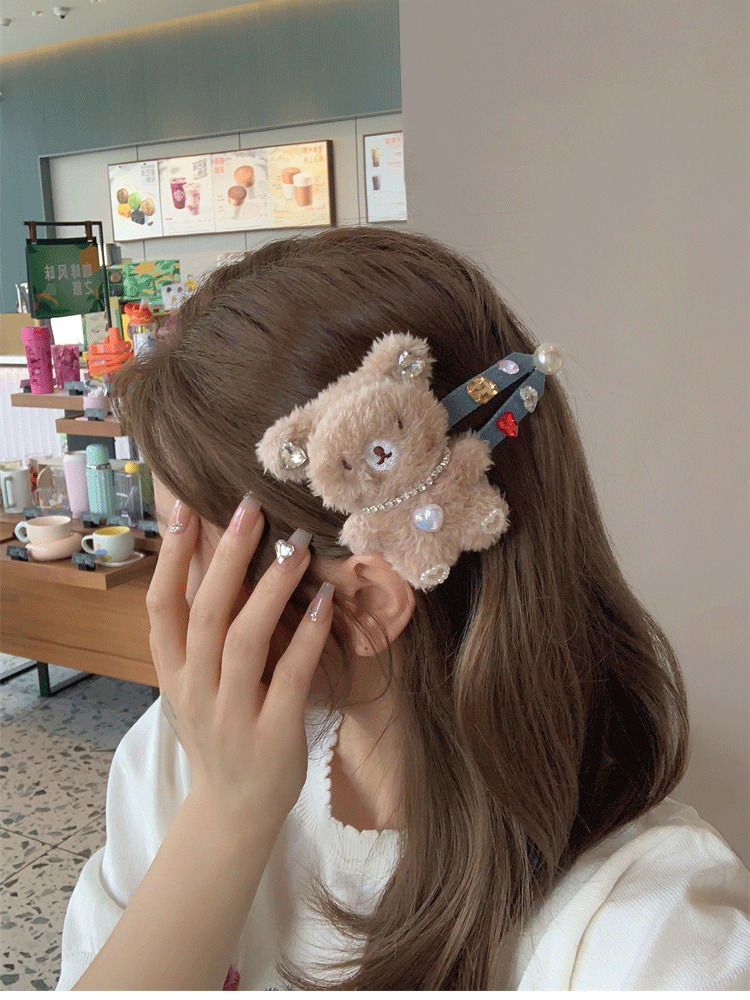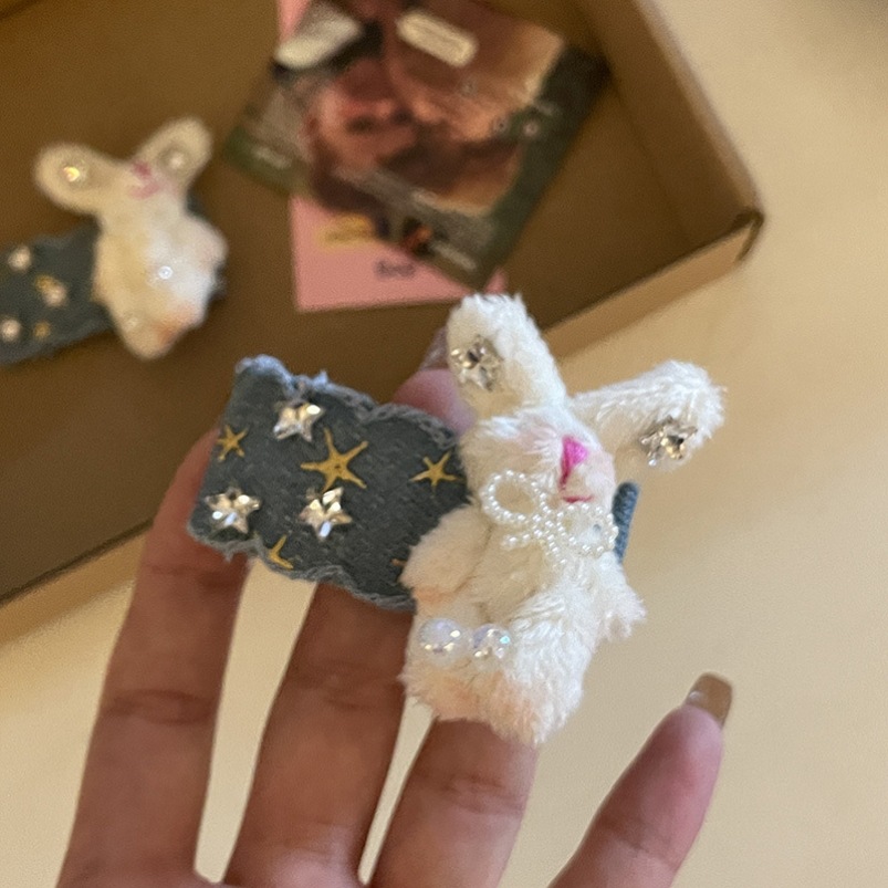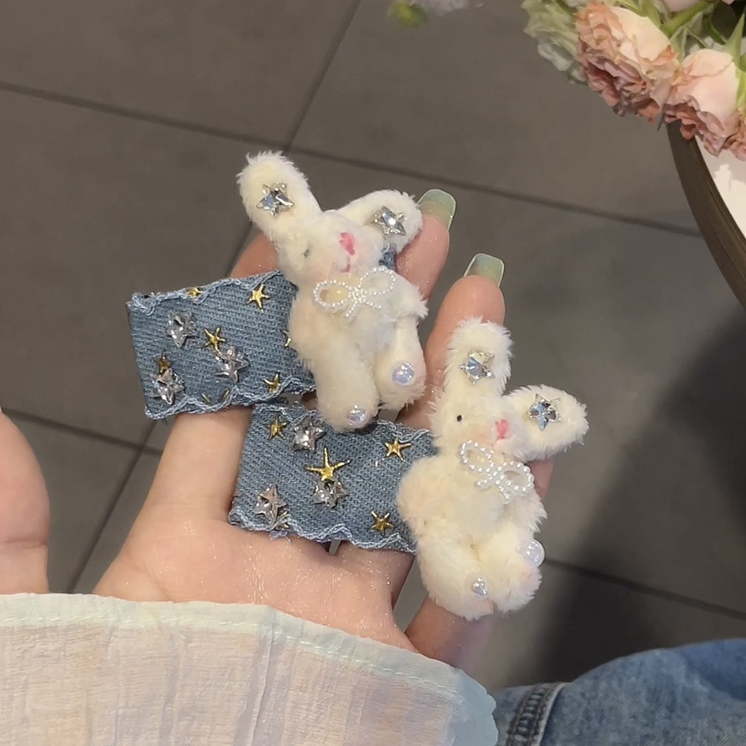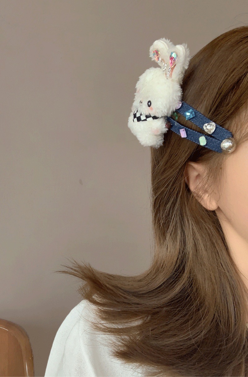 卡通日系毛绒公仔发夹新款秋冬设计感BB夹牛仔少女侧边夹发卡头饰