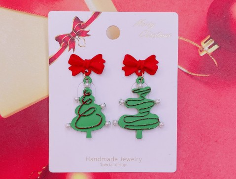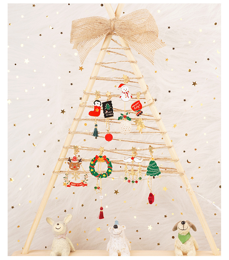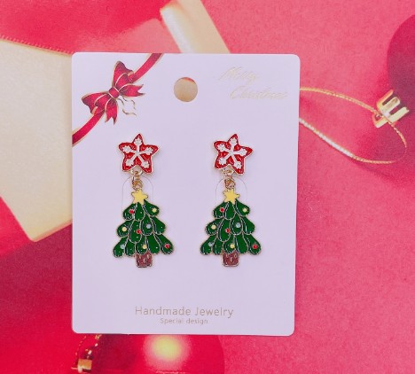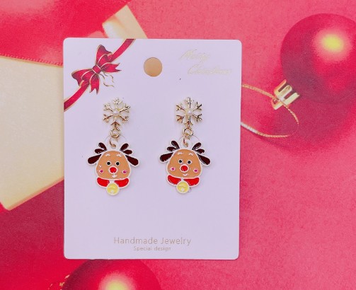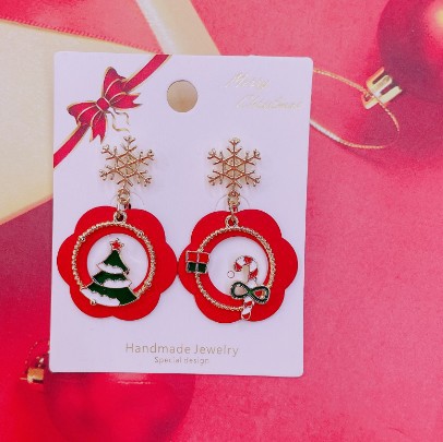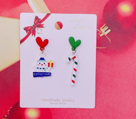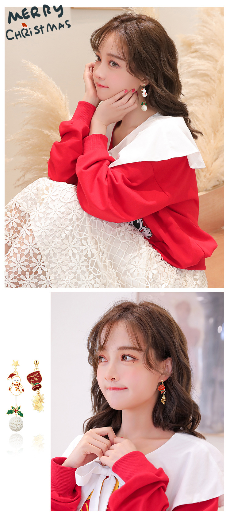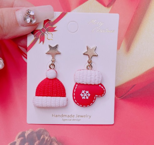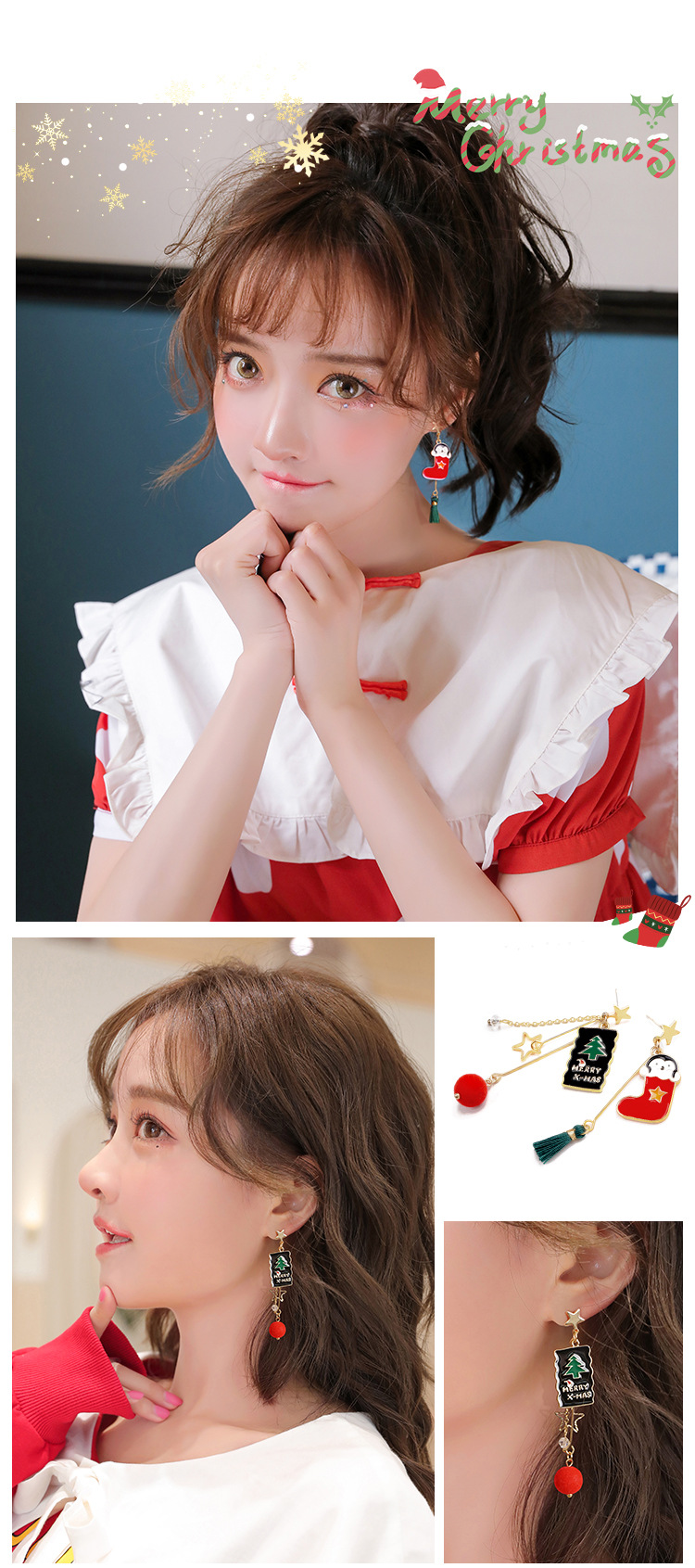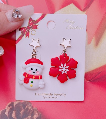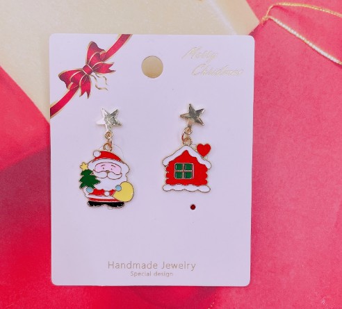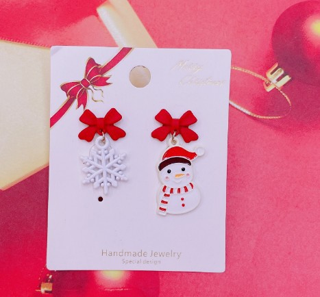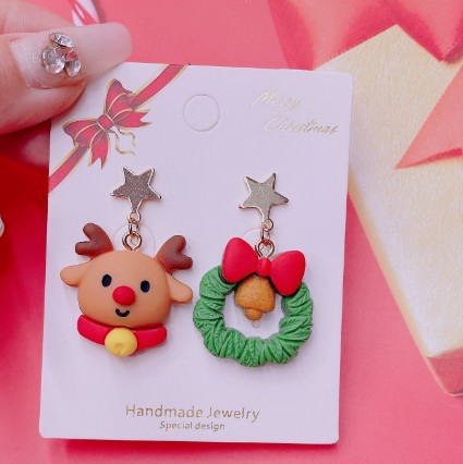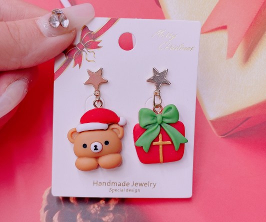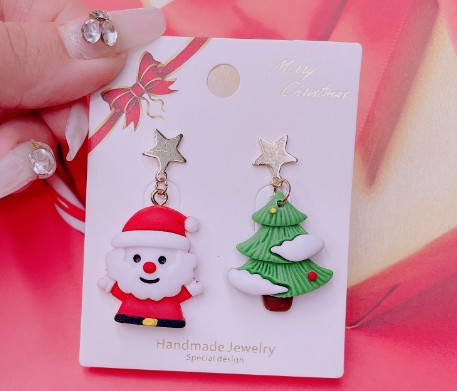 新款圣诞耳饰耳环不对称圣诞树老人系列可爱少女卡通小熊耳饰耳钉