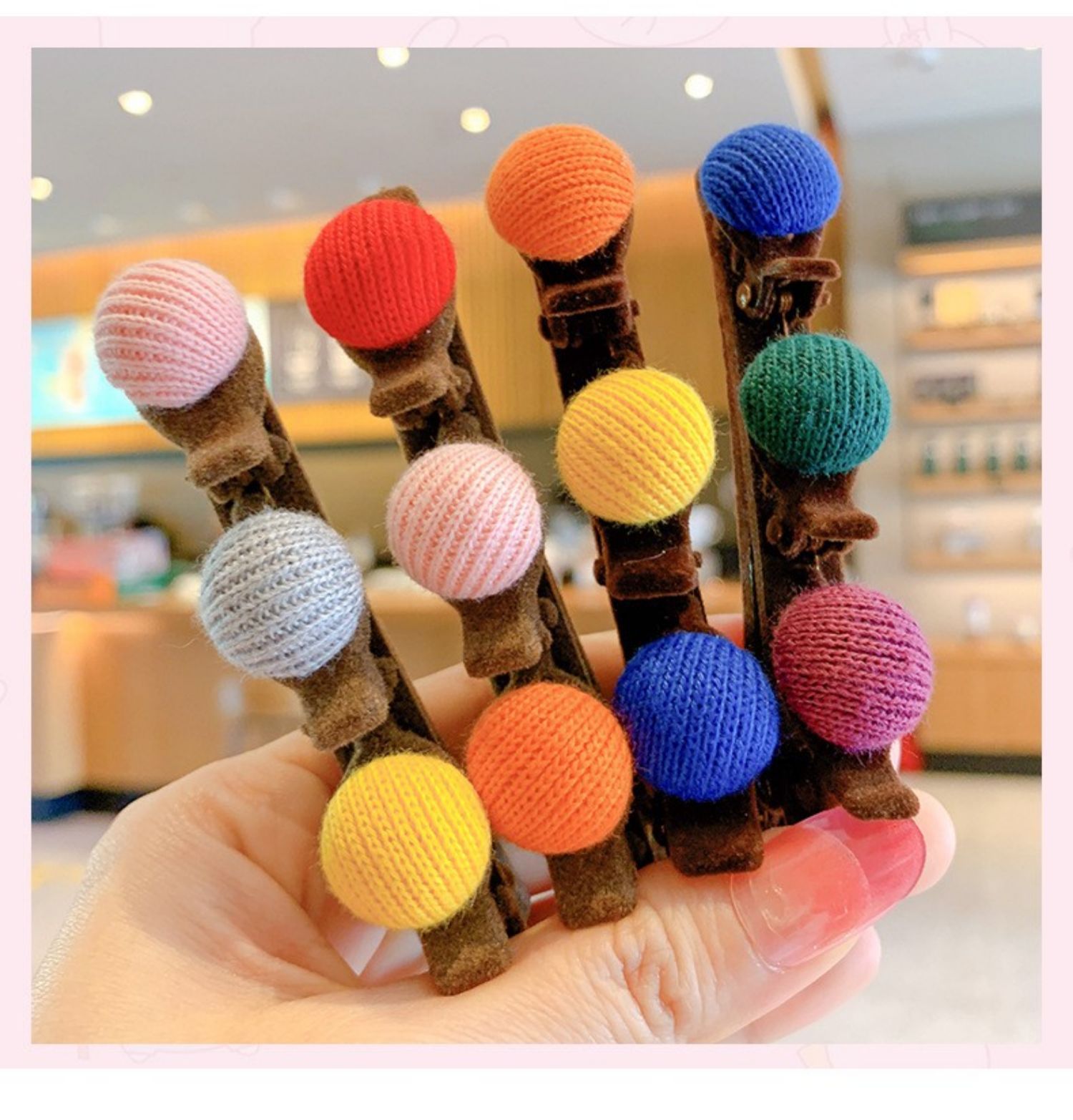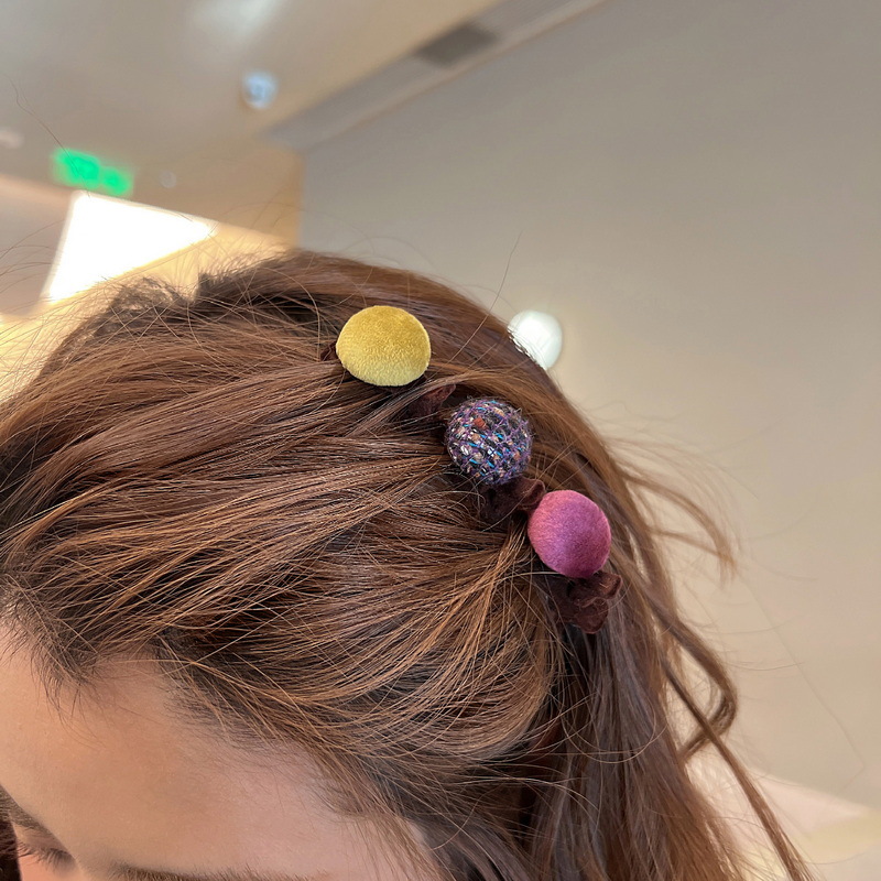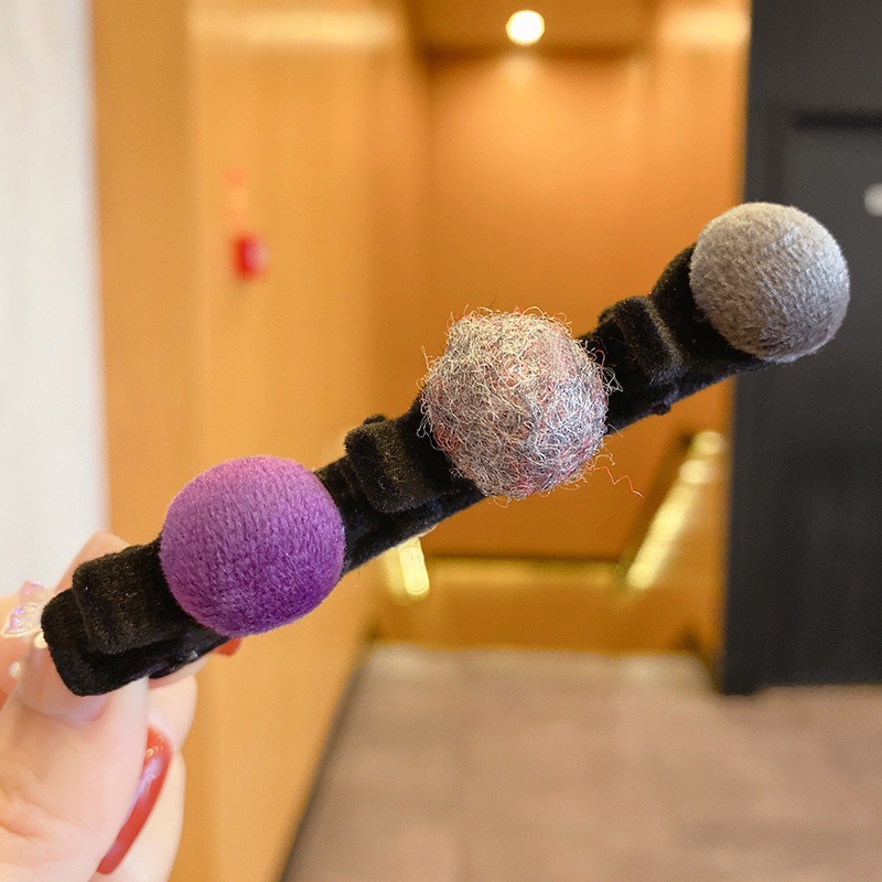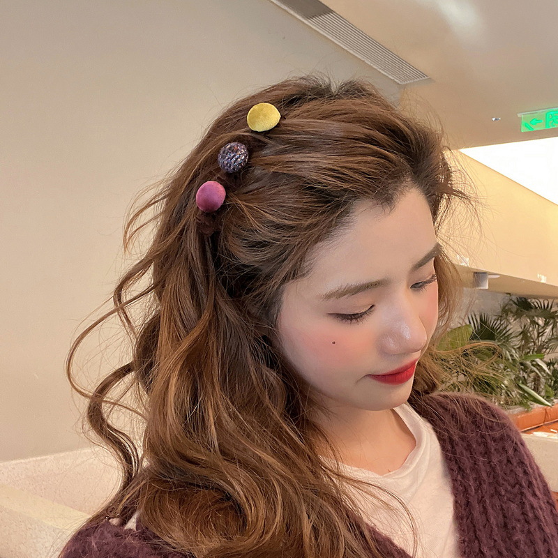 新款韩国网红边夹侧边前额刘海鸭嘴夹植绒圆球发夹头饰少女发饰