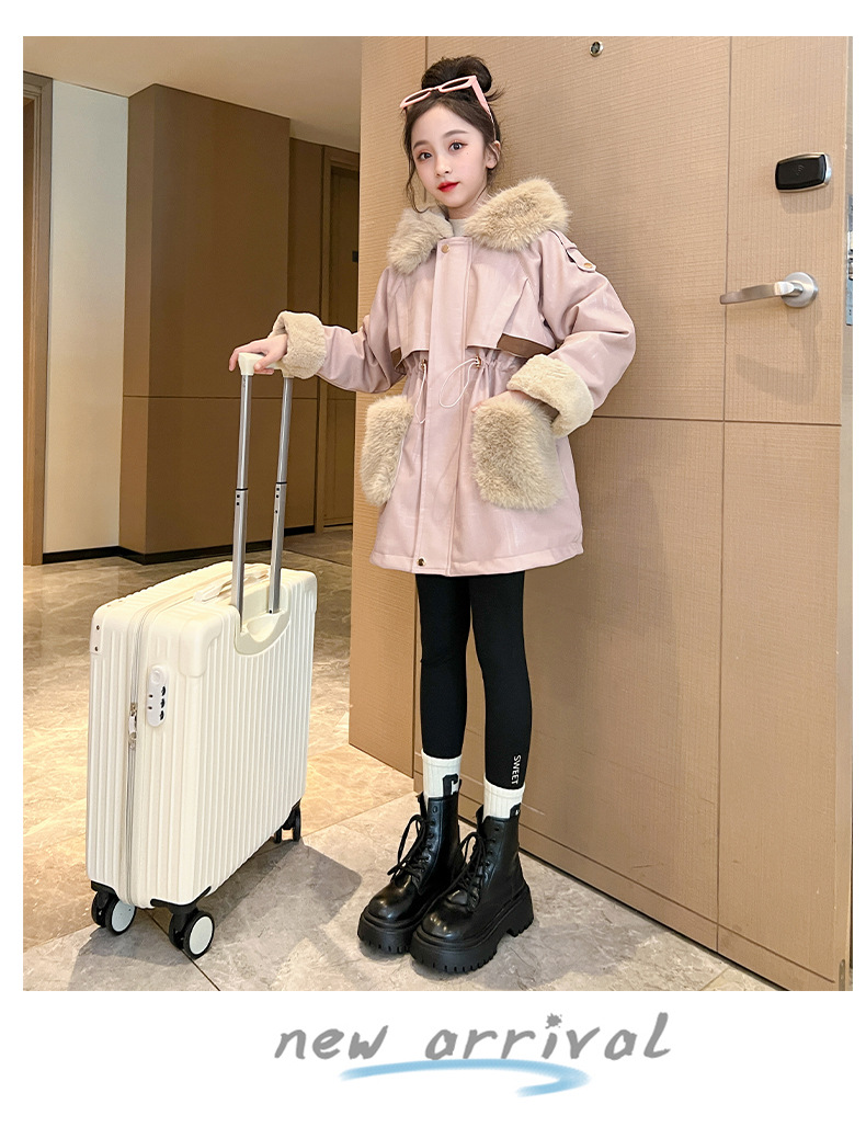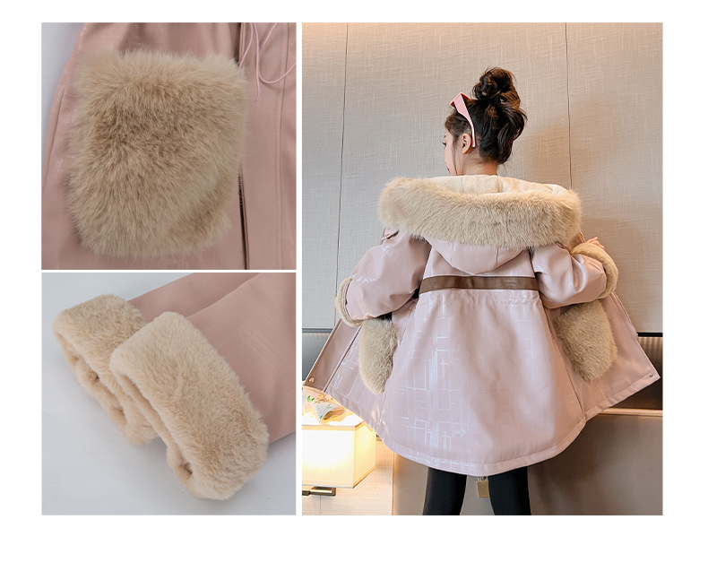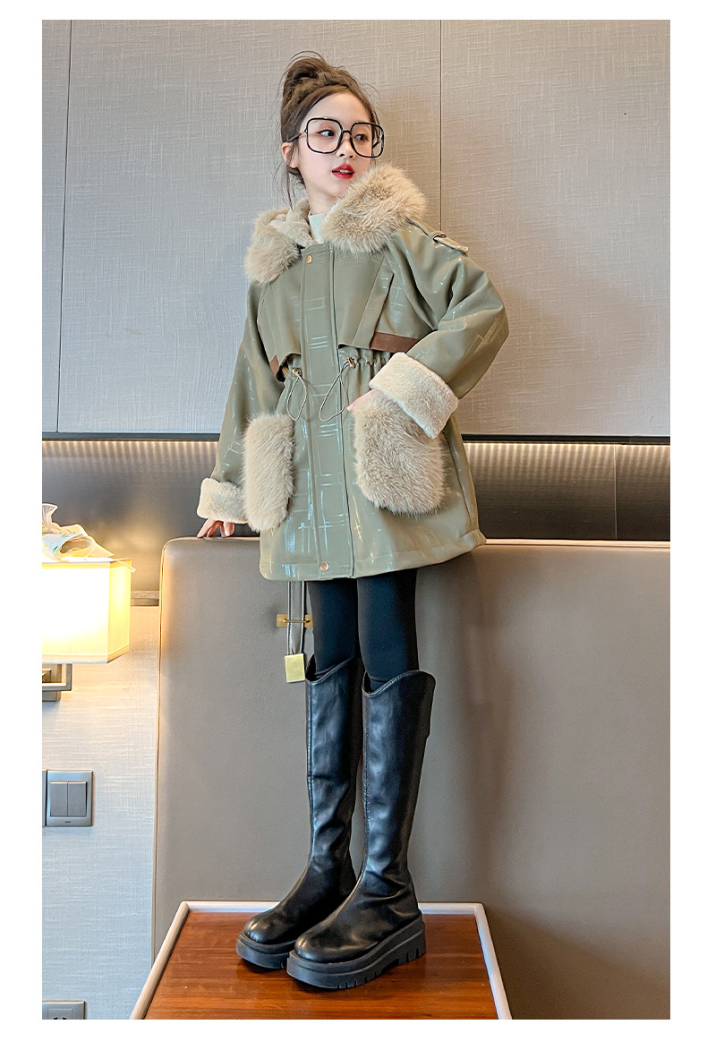 女童新款皮衣中长款加厚加密中兔毛派克服风衣外套中大童童装上衣