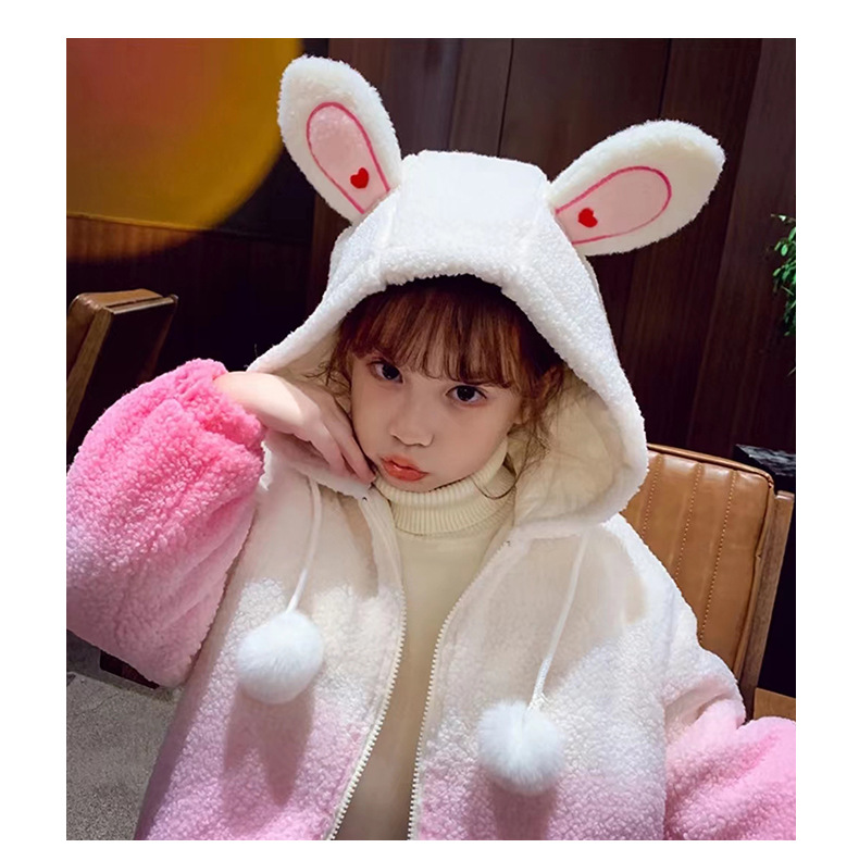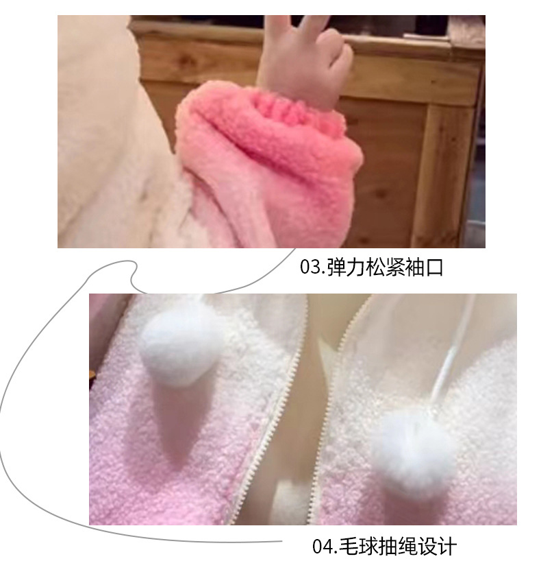 女童外套夹棉冬装2023新款洋气儿童网红渐变色羊羔绒连帽毛毛大衣