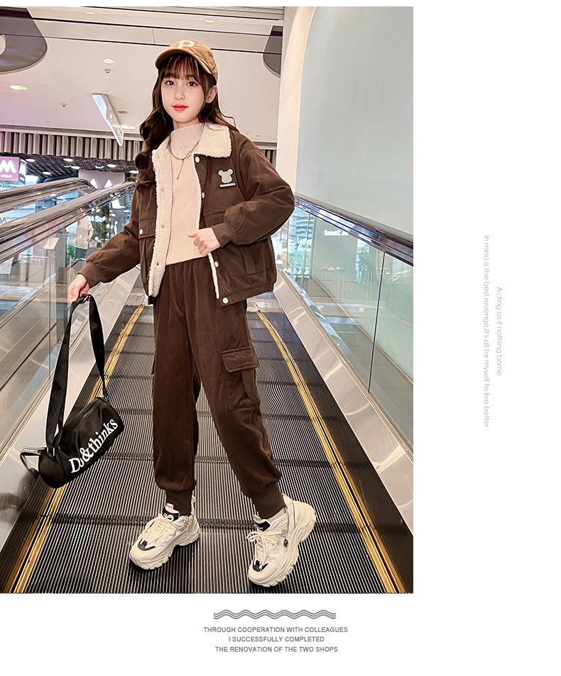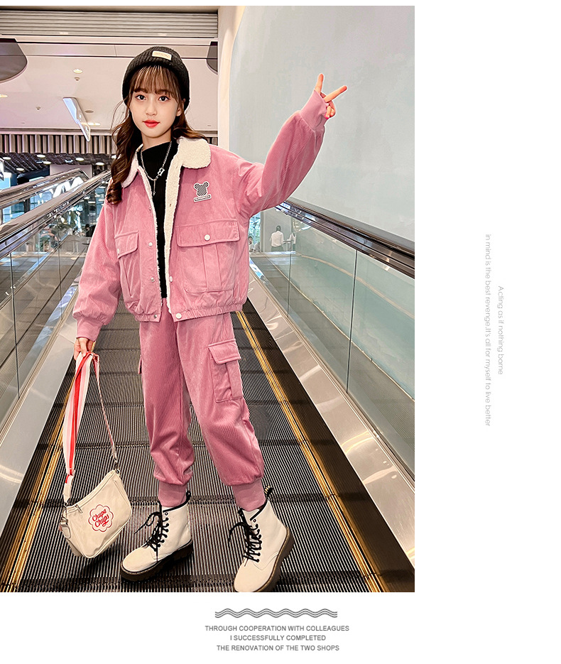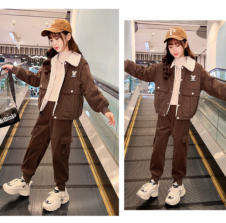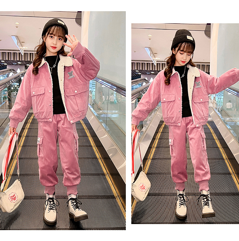 女童装时髦套装洋气2023新款儿童中大童冬季加绒加厚灯芯绒两件套