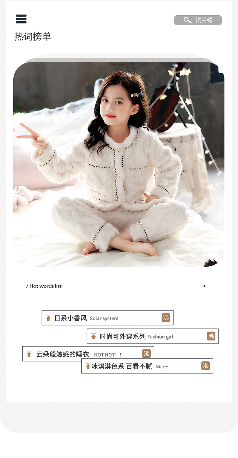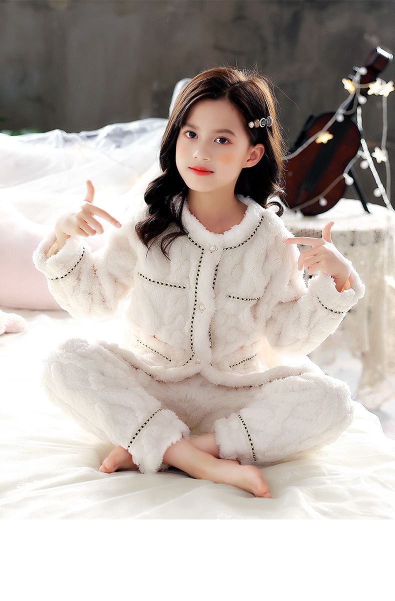 女童睡衣冬季法兰套装小女孩加厚洋气小香风珊瑚绒儿童公主家居服