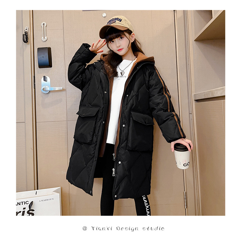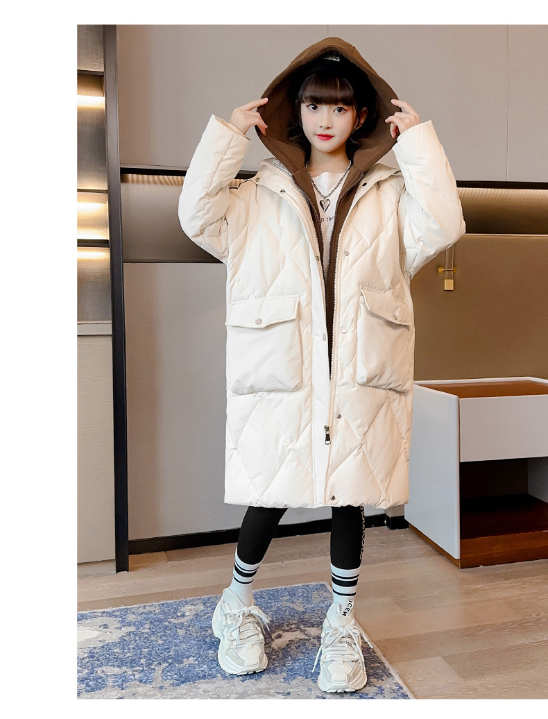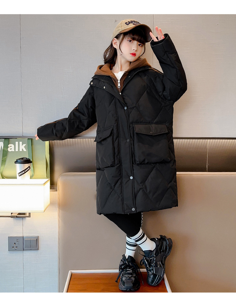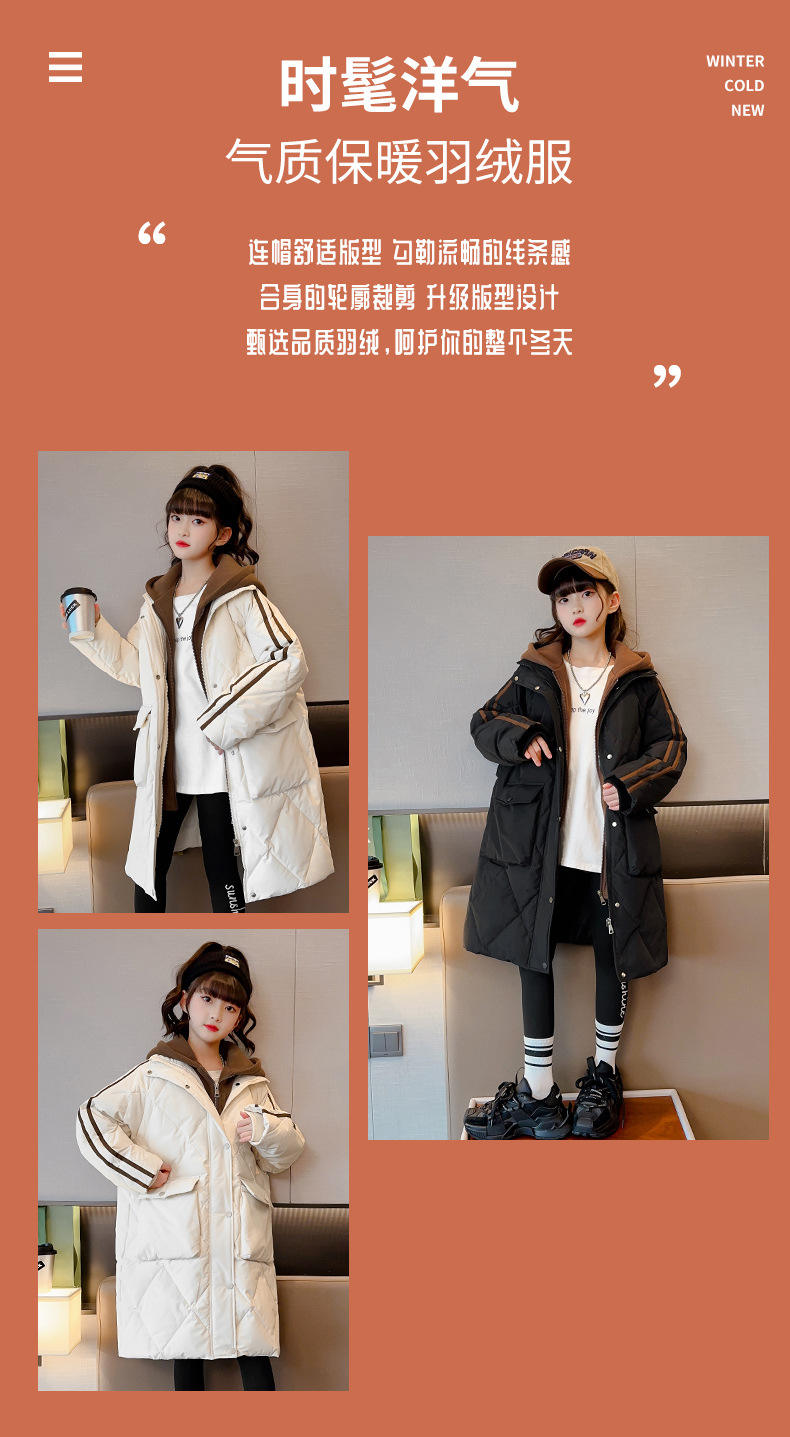 女童羽绒服2023冬季新款假两件小女孩中长款外套中大儿童装加厚潮