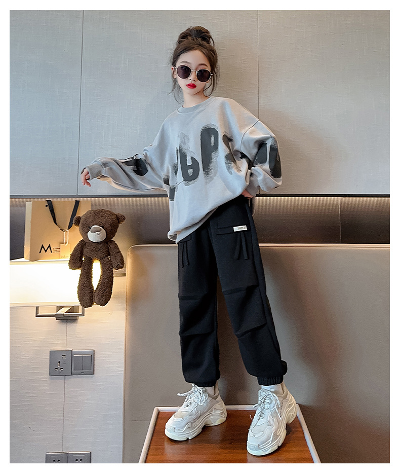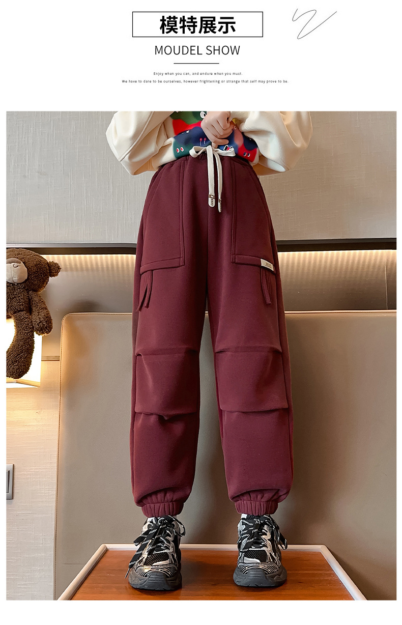 女童卫裤秋冬季2023新款洋气时髦宽松加绒裤子中大童冬装工装裤潮
