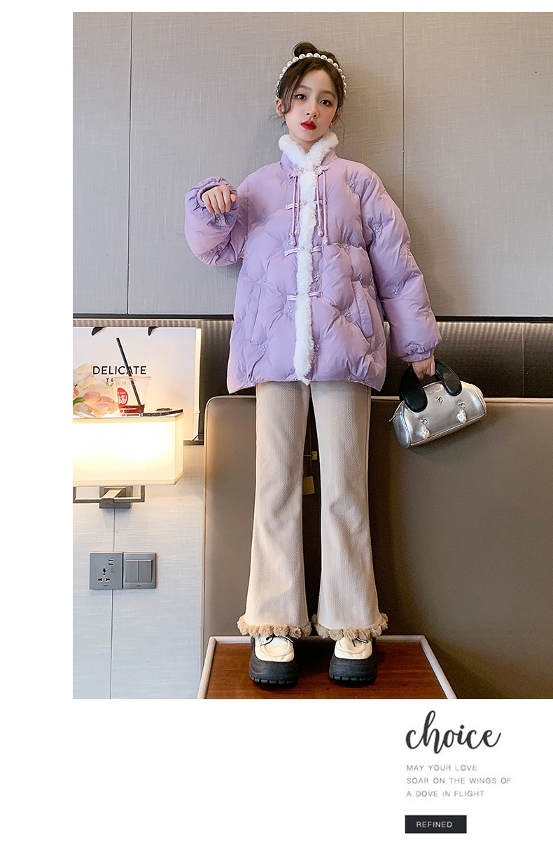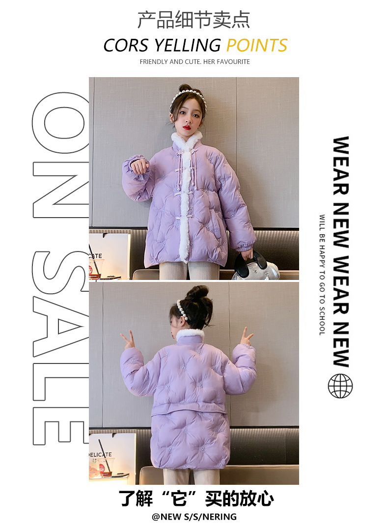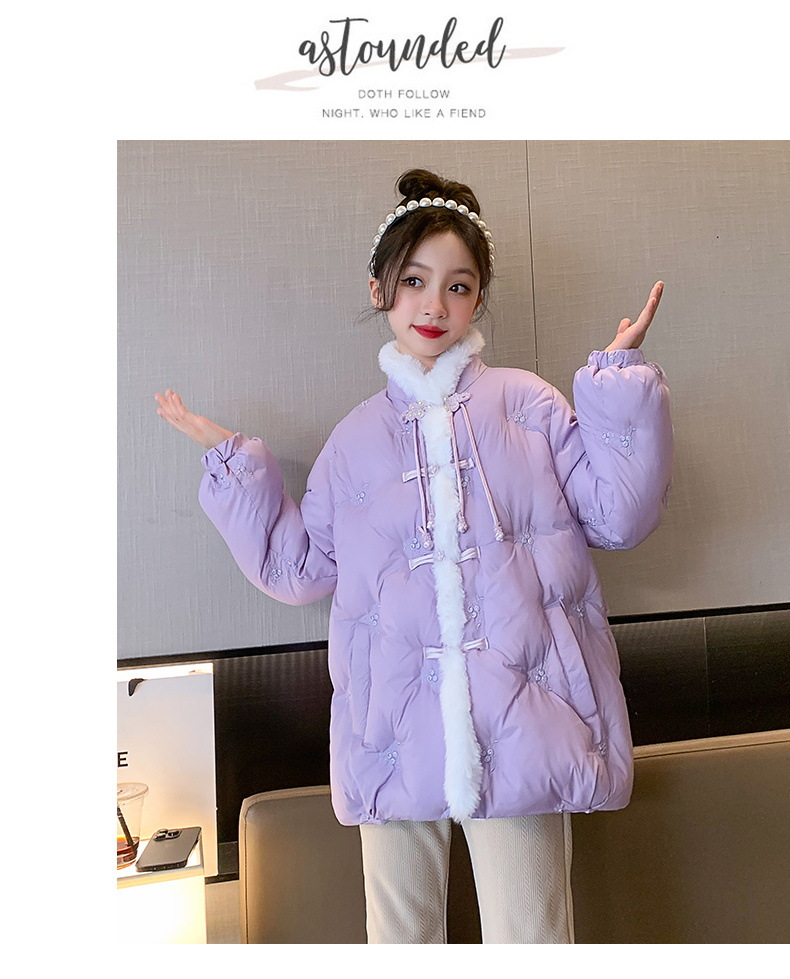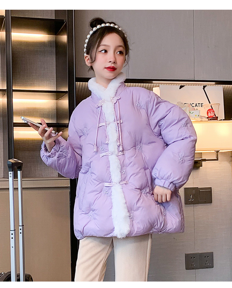 女童羽绒服中国风盘扣冬装2023新款刺绣洋气时髦儿童外套羽绒衣潮