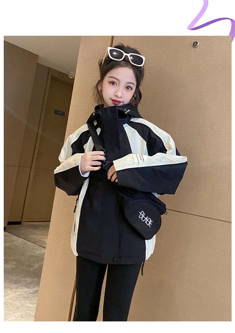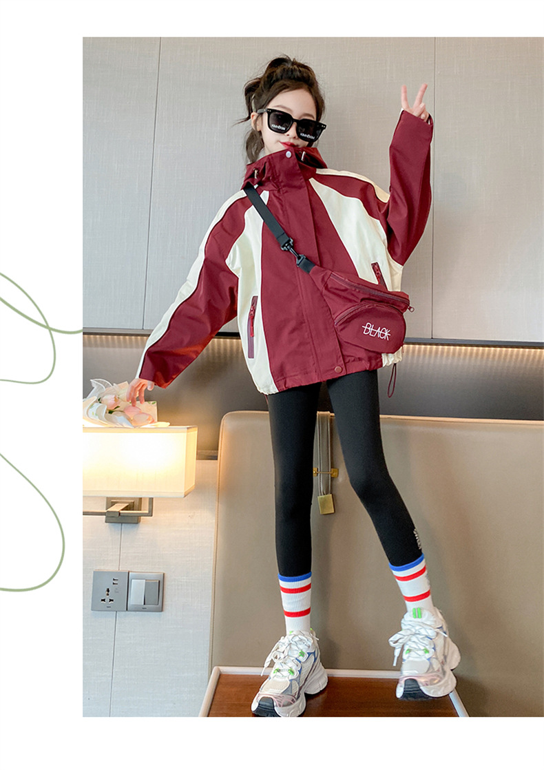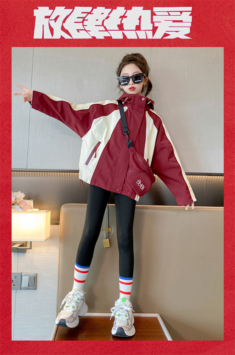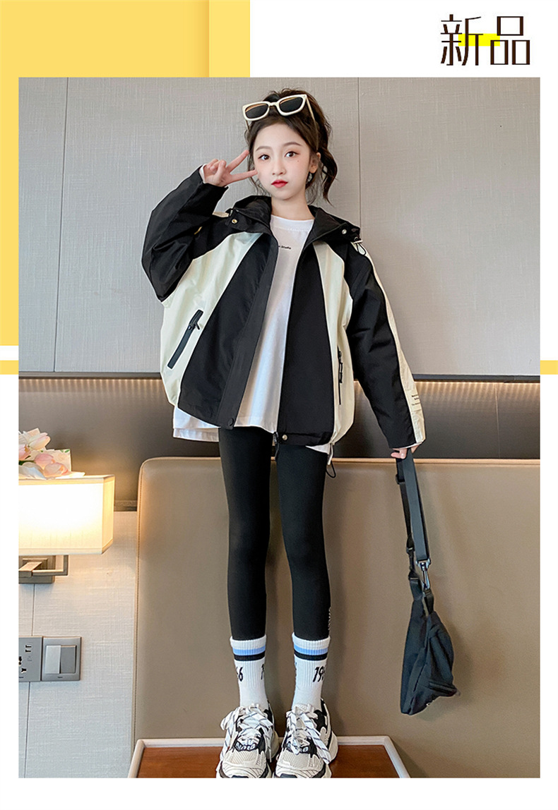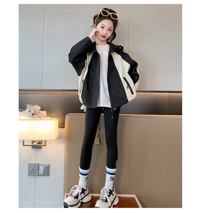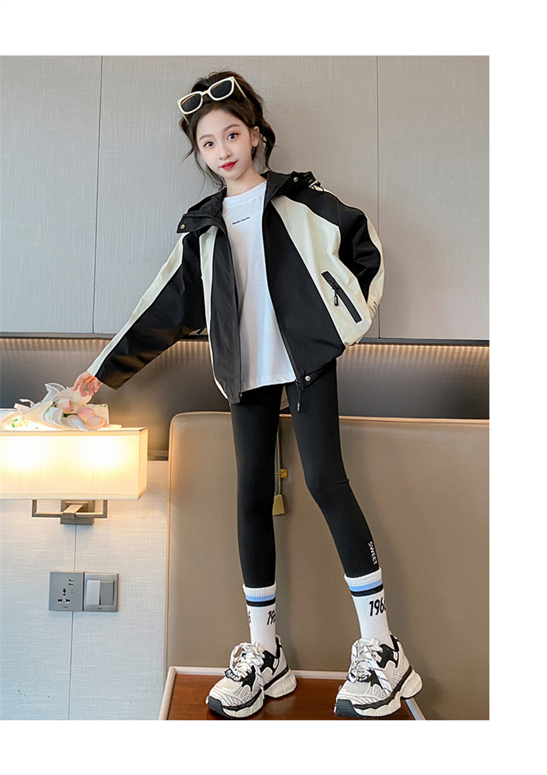 女童外套秋装2023新款洋气儿童连帽冲锋衣春秋款小女孩秋季上衣潮