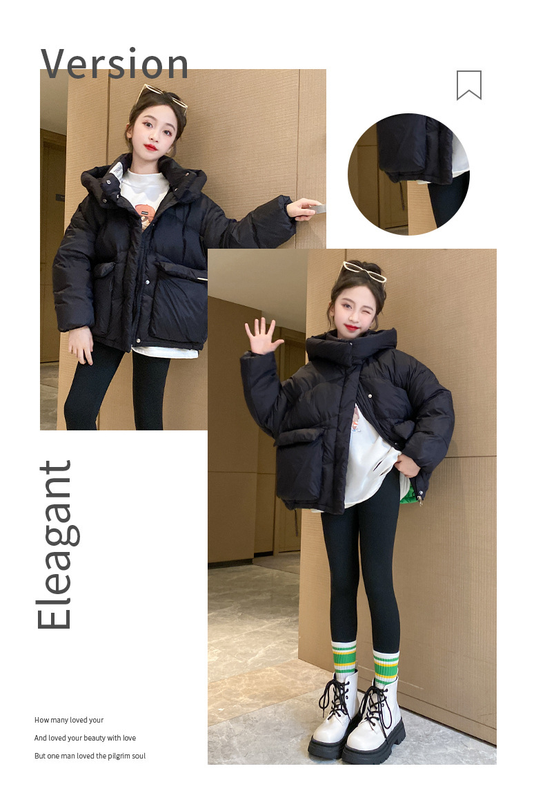 女童羽绒服冬季2023新款洋气儿童短款面包服童装大童冬装加厚外套