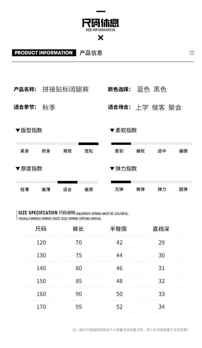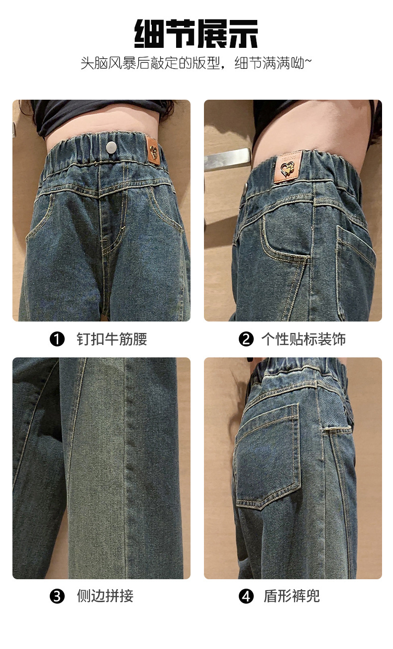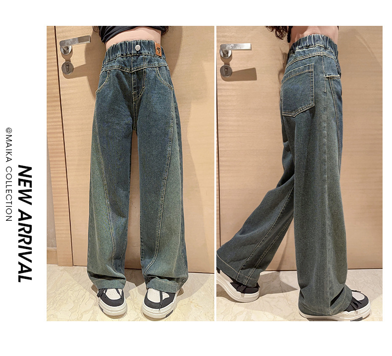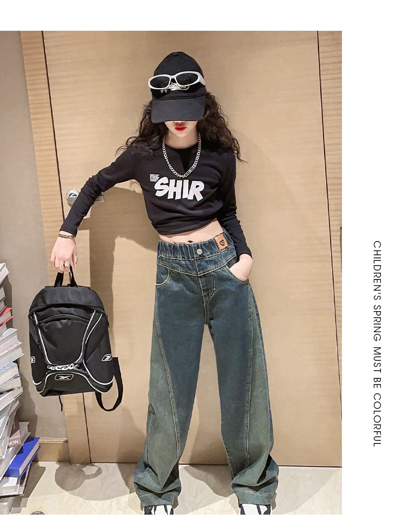 女童黑色牛仔裤春秋款2023新款儿童直筒长裤女大童秋装阔腿裤宽松