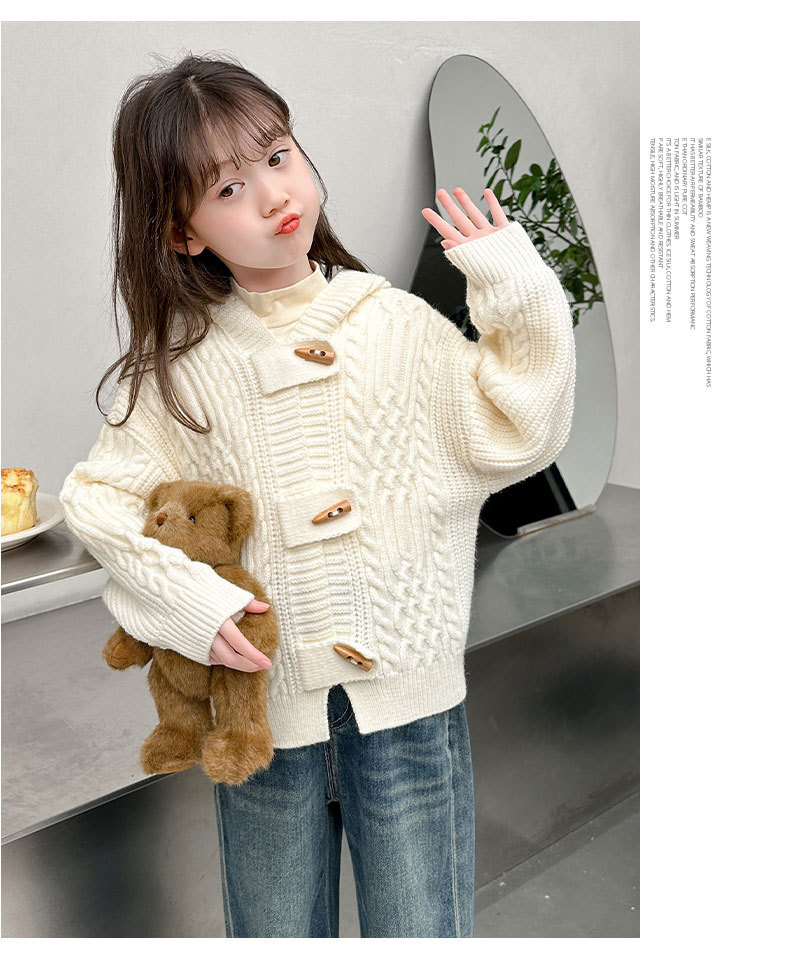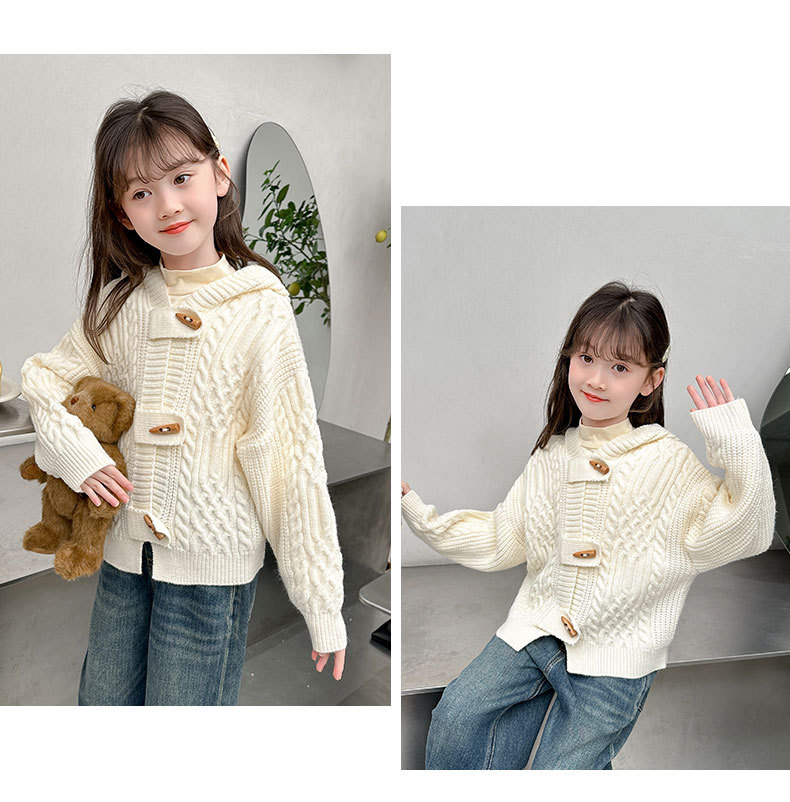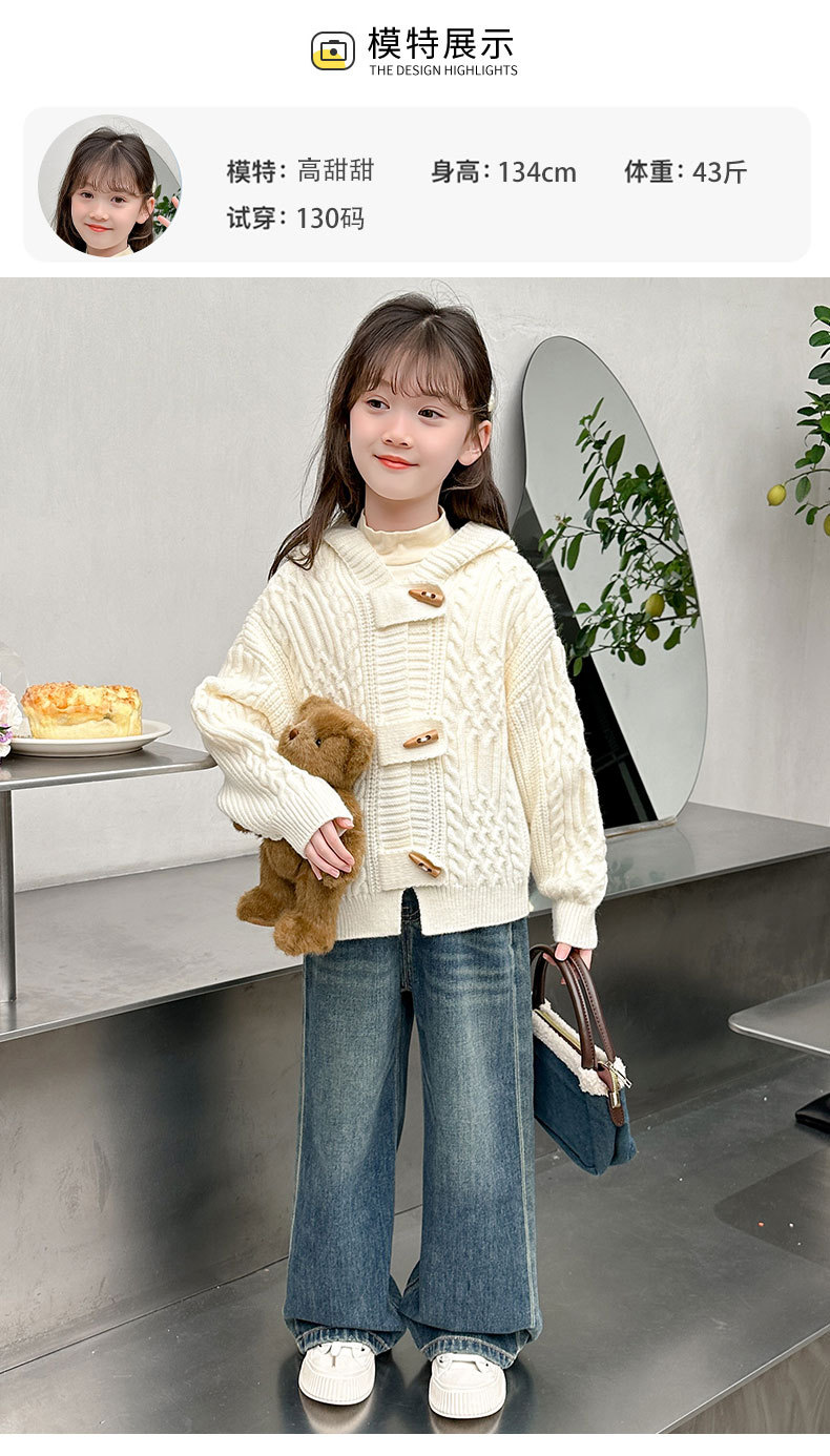 女童针织衫外套春秋款2023新款时髦儿童加厚毛衣女大童秋冬打底衫