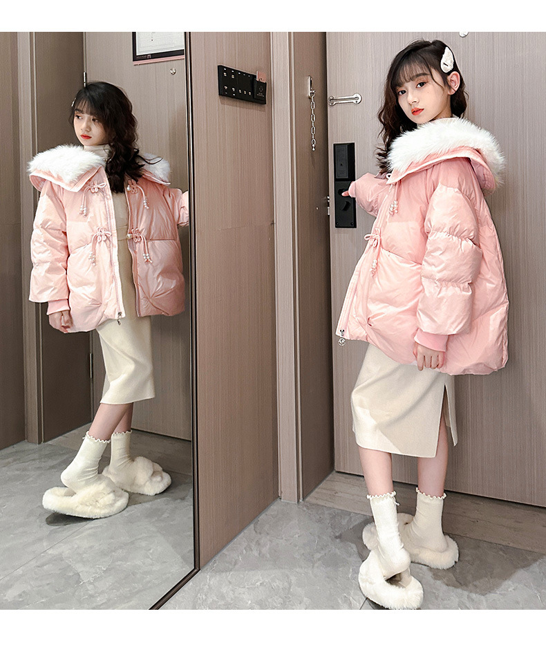 女童棉服冬季中长款大毛领2023新款儿童冬装洋气加厚甜美保暖外套