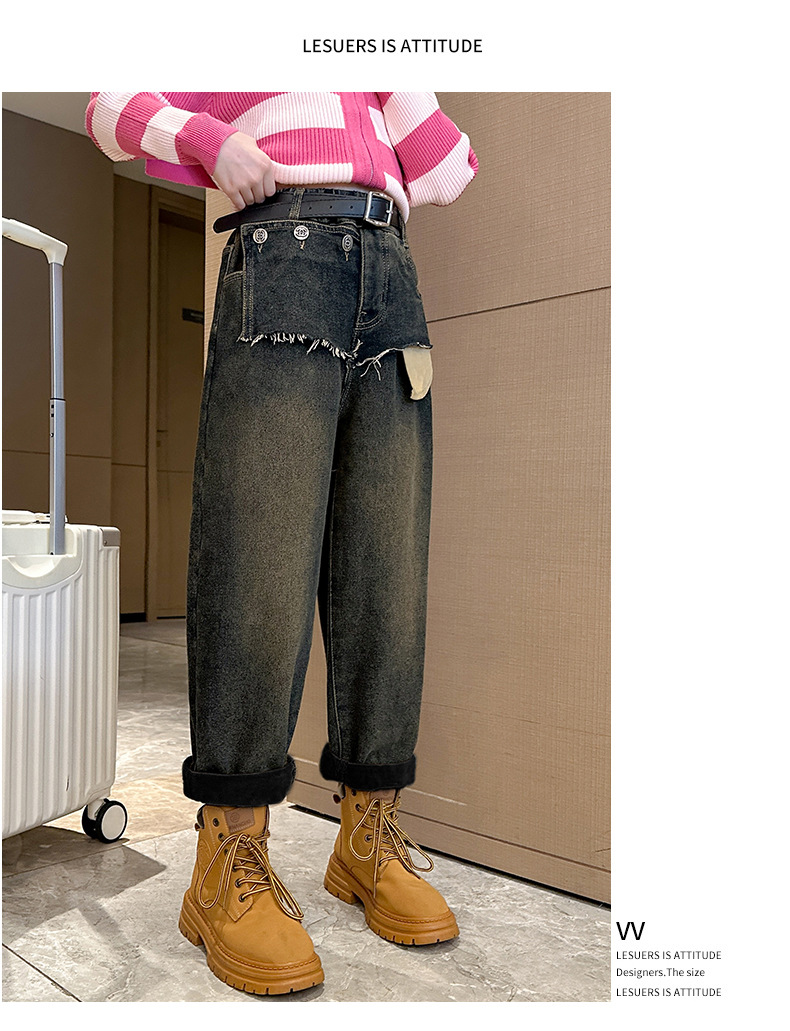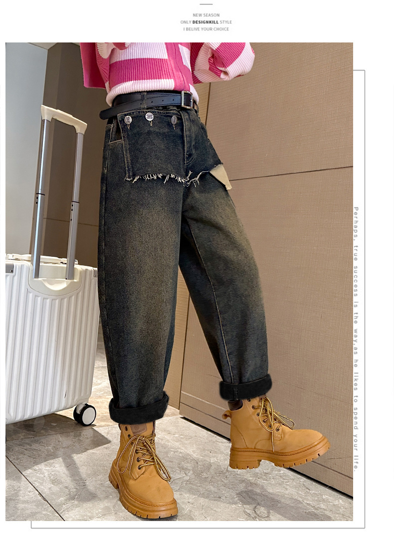 女童加绒裤子秋冬款2023新款儿童冬装牛仔裤中大童冬季加厚休闲裤