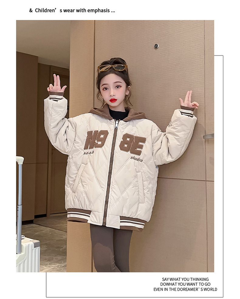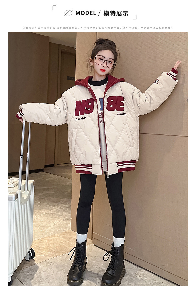 女童秋冬款夹棉两面穿外套2023新款中大童冬季加厚二棉初中生冬装