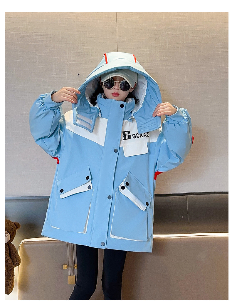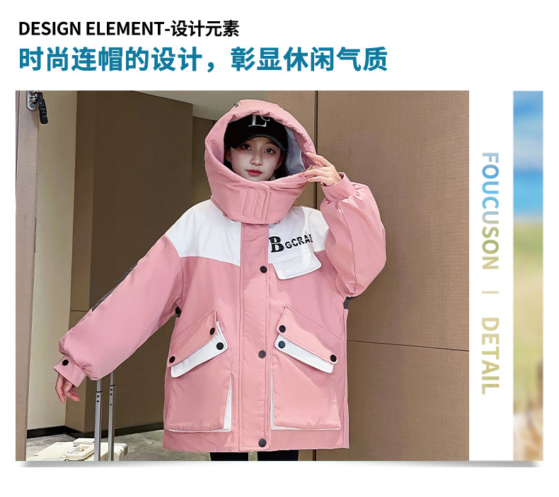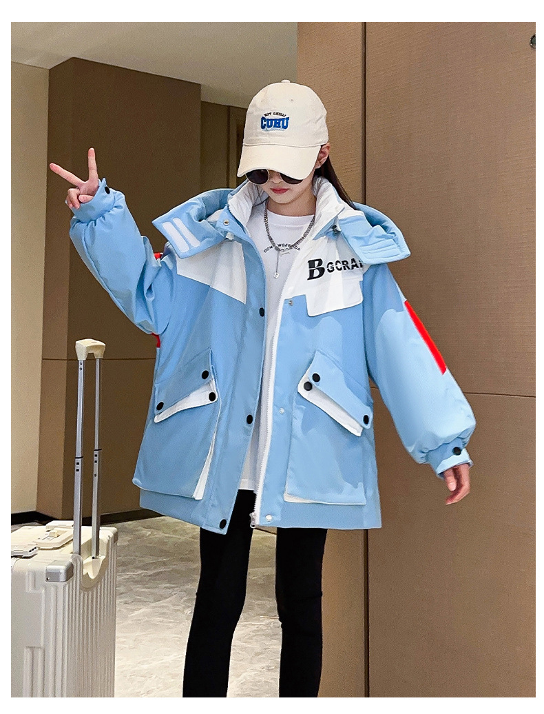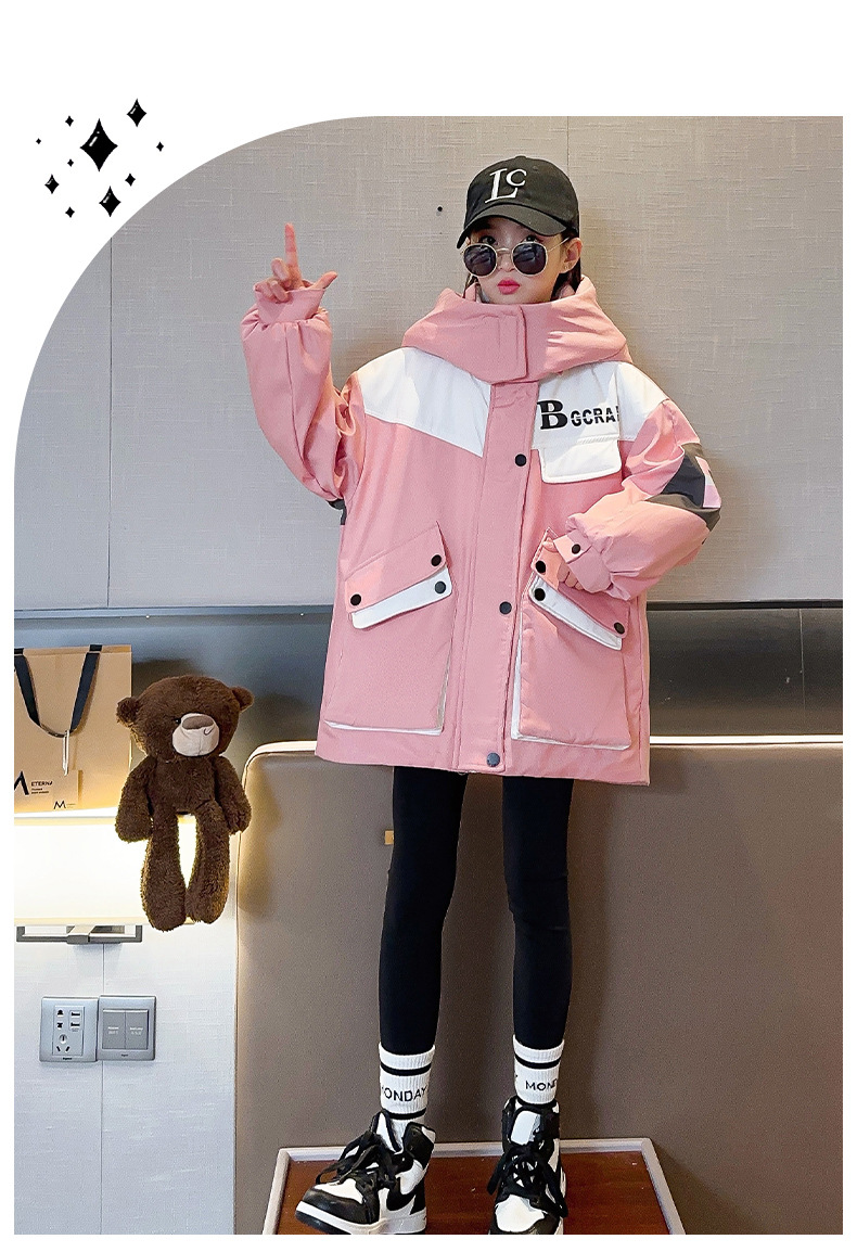 女童加绒加厚派克服外套秋冬2023新款韩版时尚休闲撞色中大童棉衣