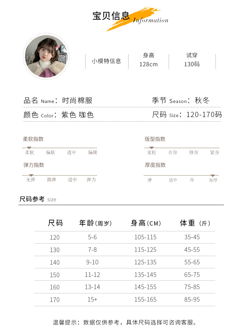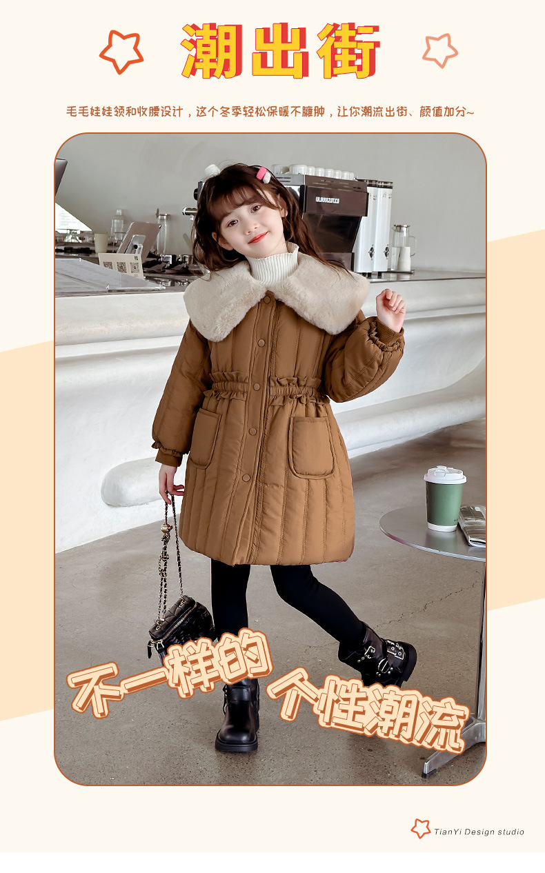 女童棉衣冬季2023新款洋气儿童女孩加厚收腰棉袄冬款保暖棉服外套
